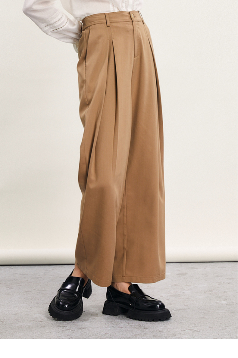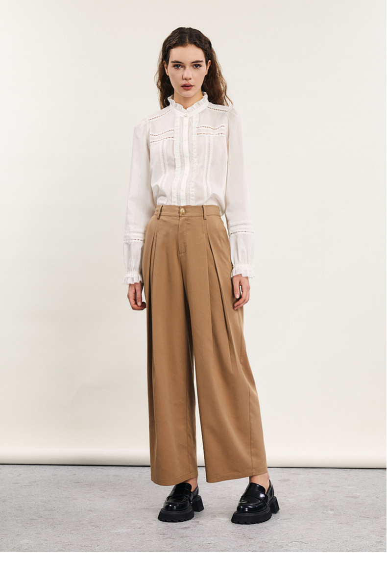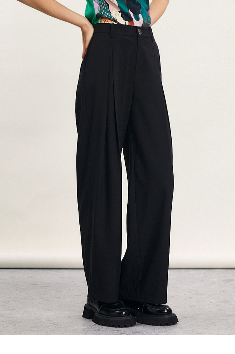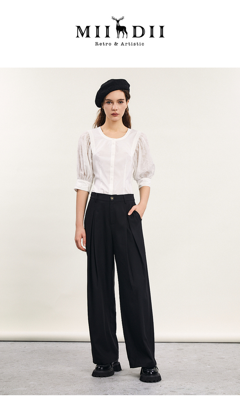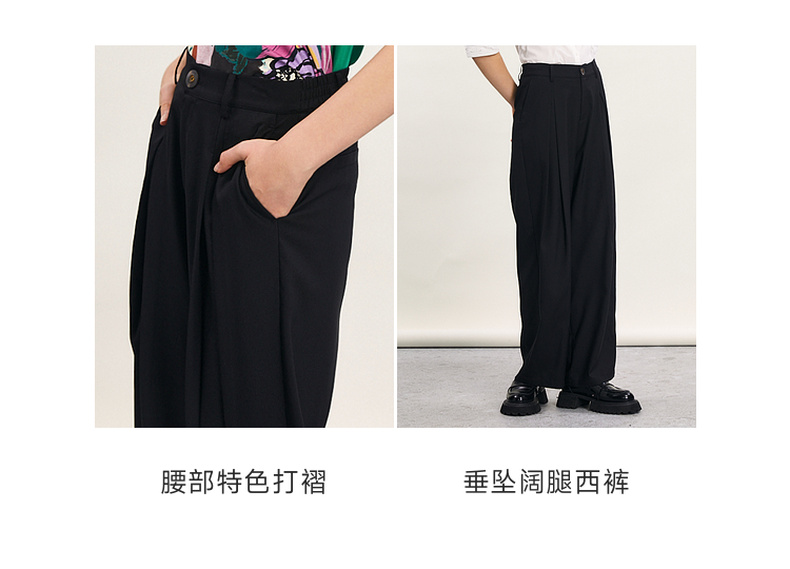 谜底阔腿裤女2024春季新款通勤风时尚高腰纯色宽松长裤241MK0141