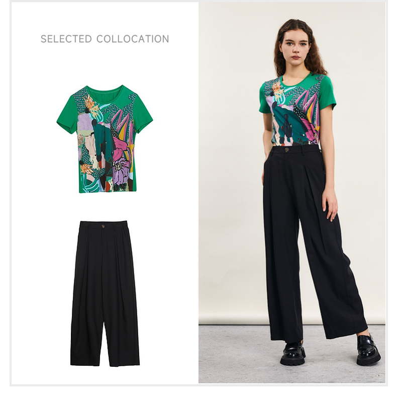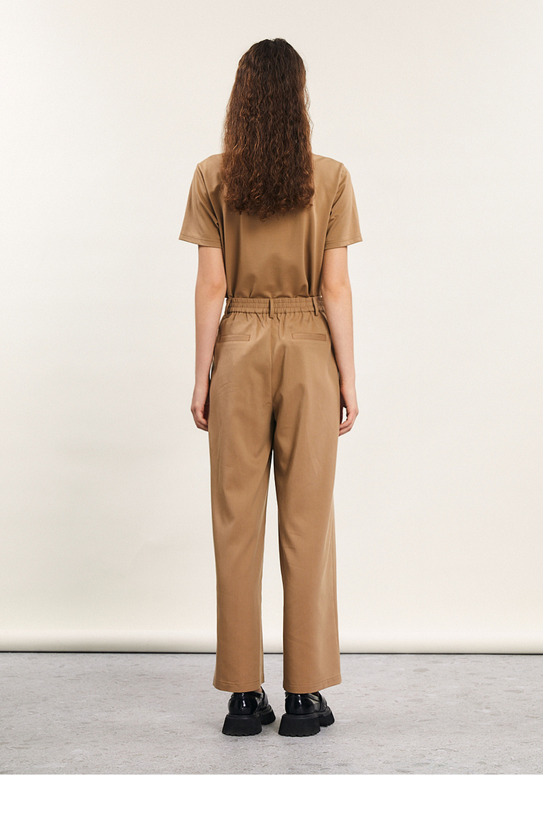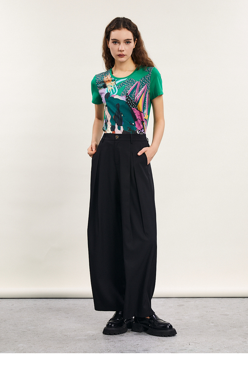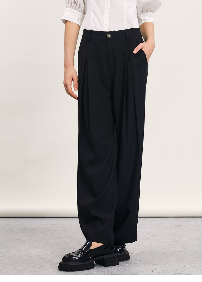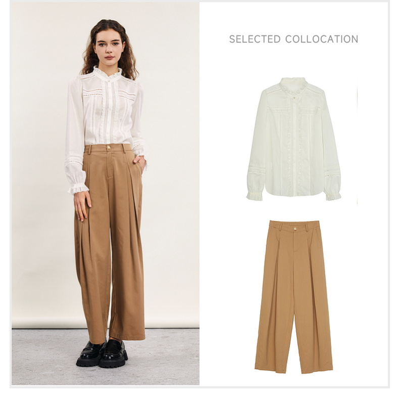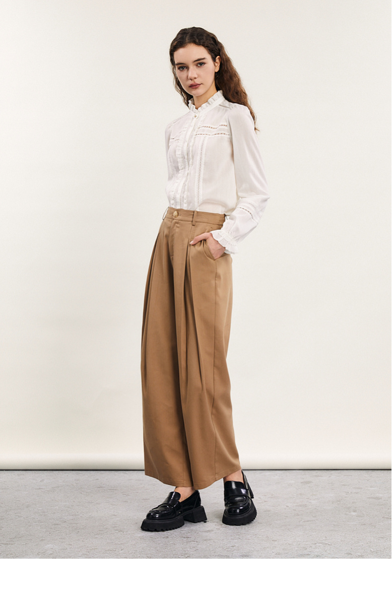 谜底阔腿裤女2024春季新款通勤风时尚高腰纯色宽松长裤241MK0141