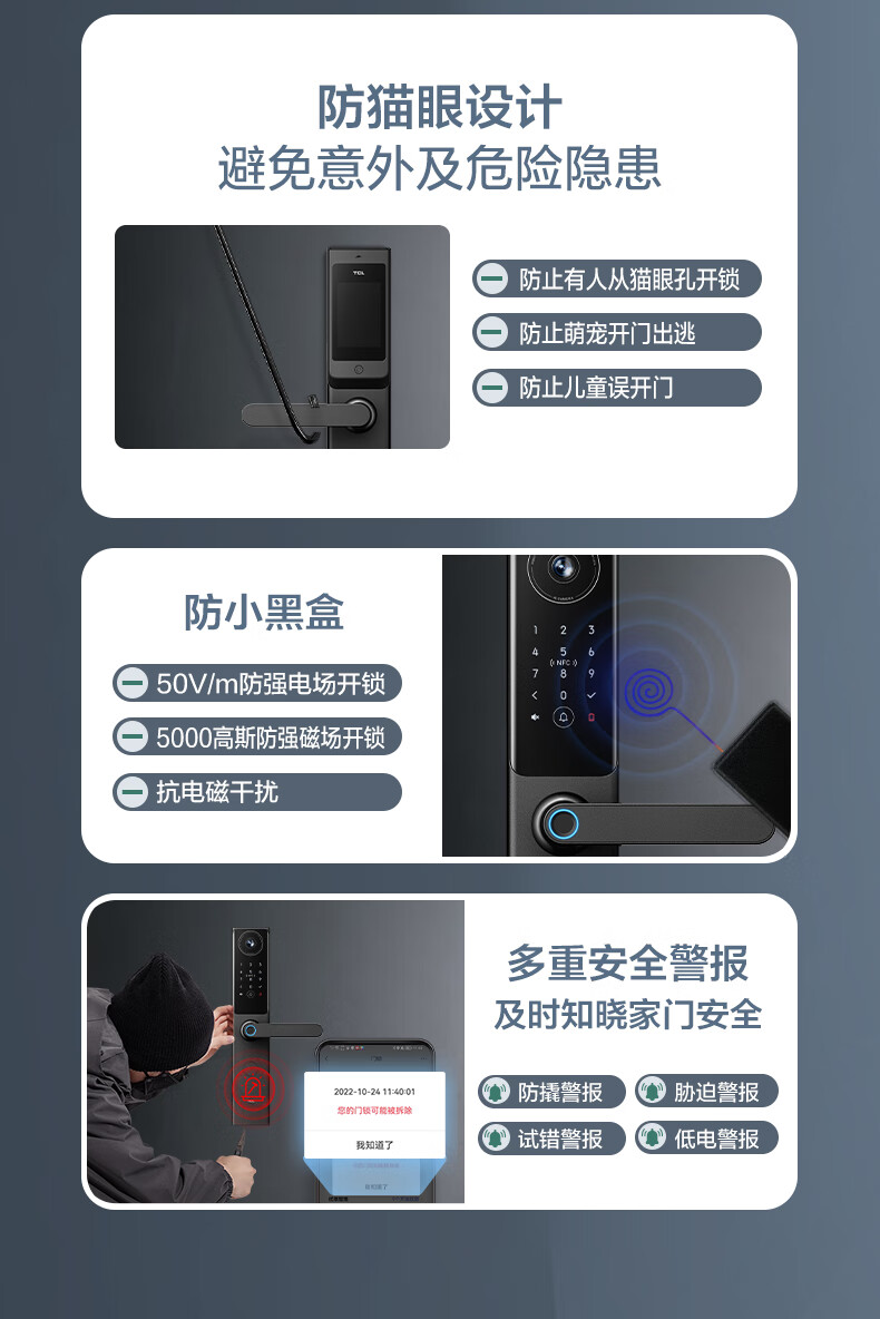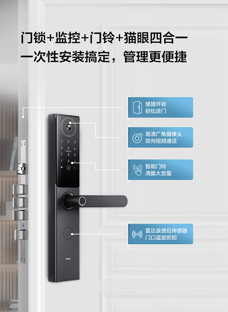【门店同款】TCL视频通话大屏猫眼AI变声防猫眼智能锁S10P 曜石黑S10P