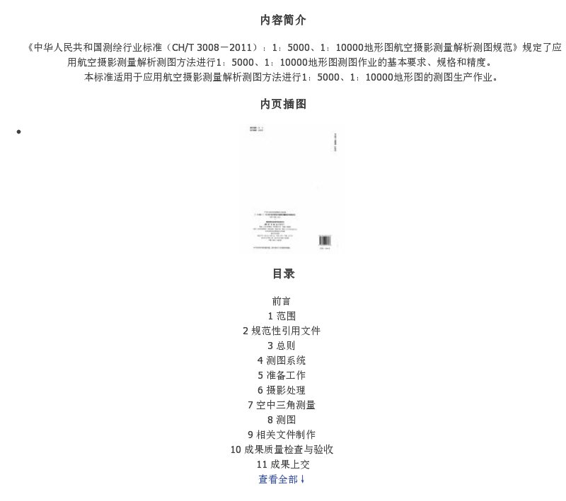 《中华人民共和国测绘行业标准(CH/T 3008-2011):1:5000、1:10000地形图航空摄影测量解析测图规范》