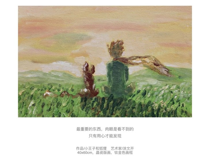 涂文开版画《小王子和小狐狸》尺寸:40*60cm材质:晶瓷版画装裱:钛金色画框