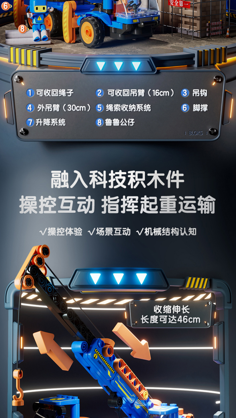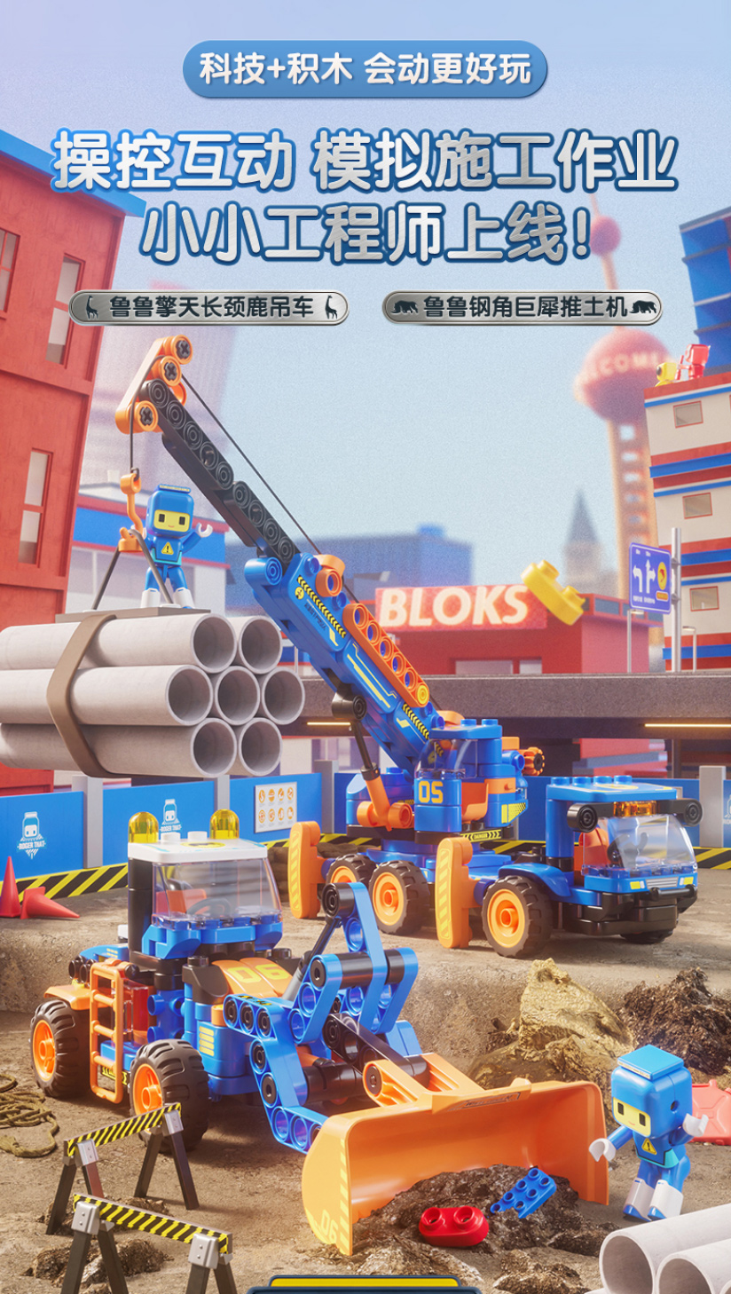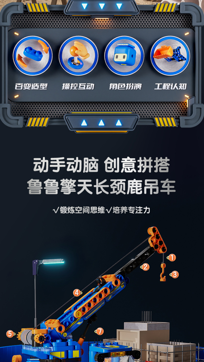 布鲁可积木61134鲁鲁擎天长颈鹿吊车