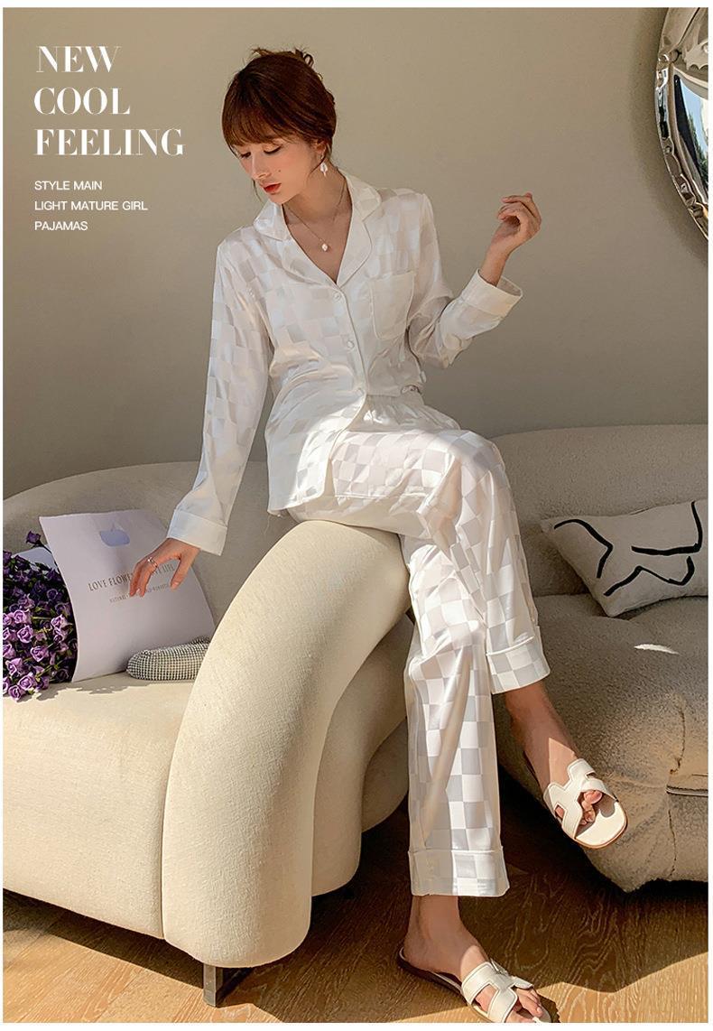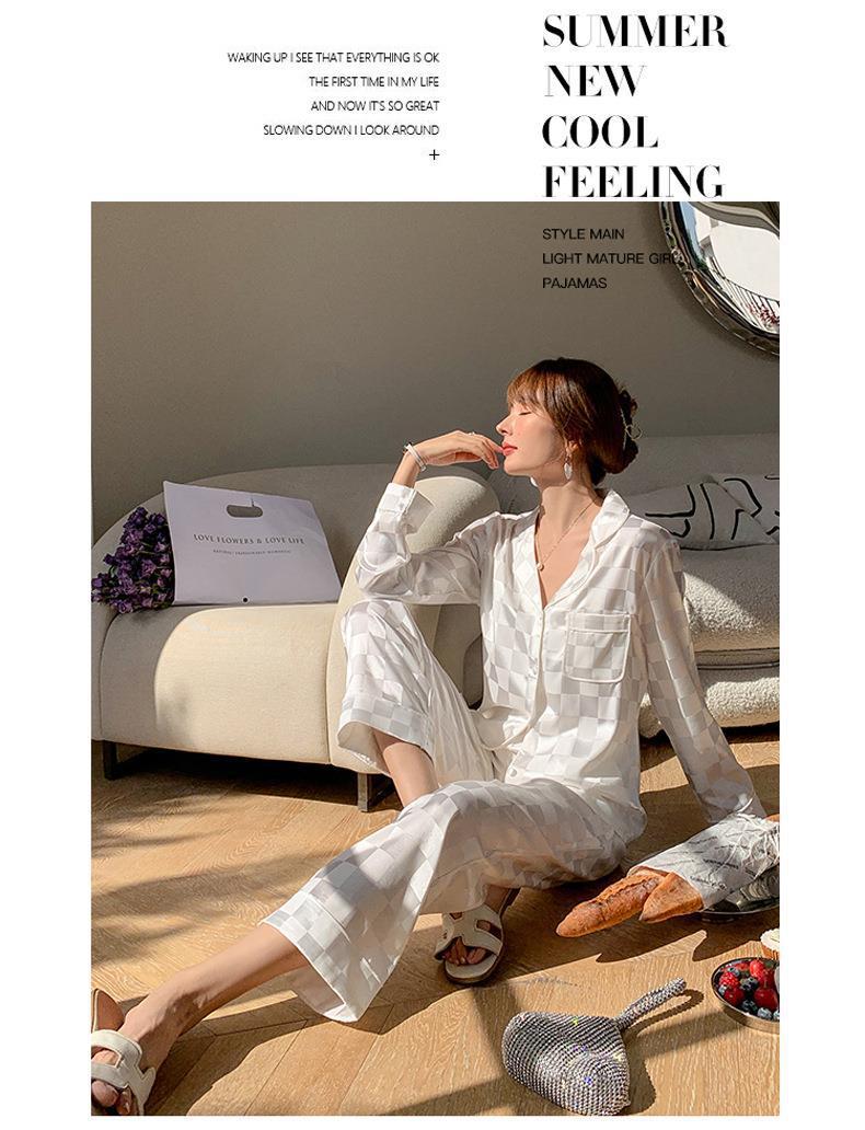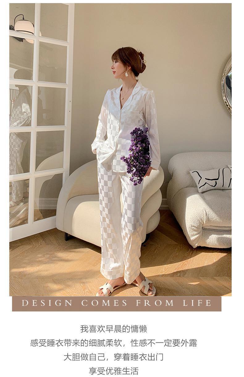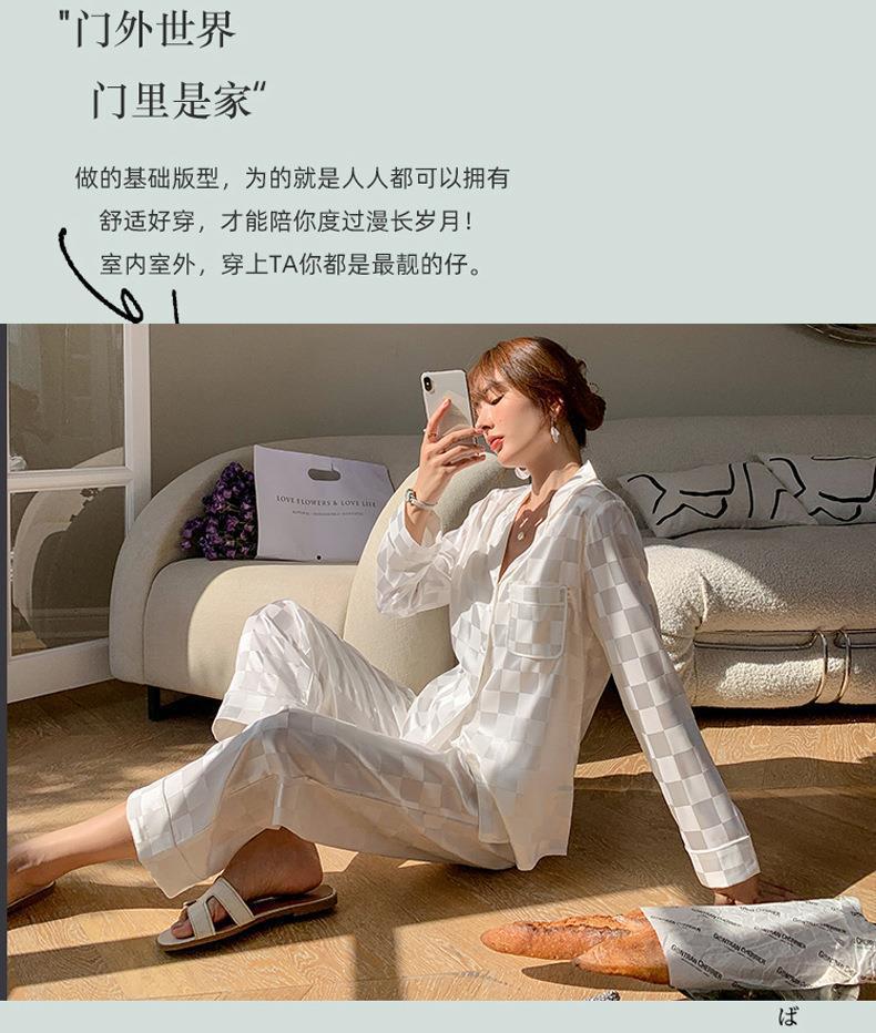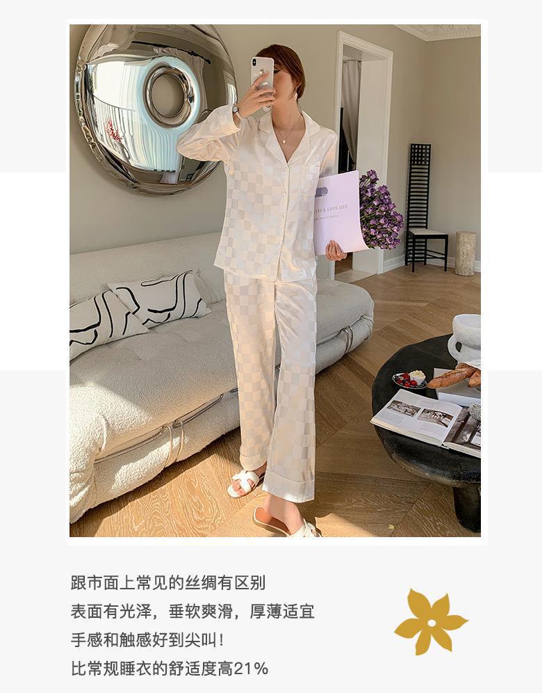 秋季新款仿真丝冰丝睡衣女春秋长袖薄款甜美夏季女士仿真丝绸大码宽松家居服套装