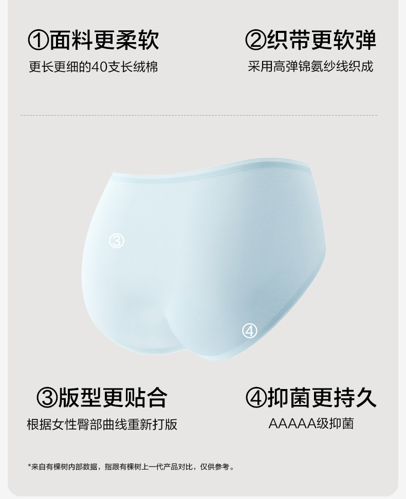 有棵树2024新款纯棉中腰女士内裤3条装-U3072