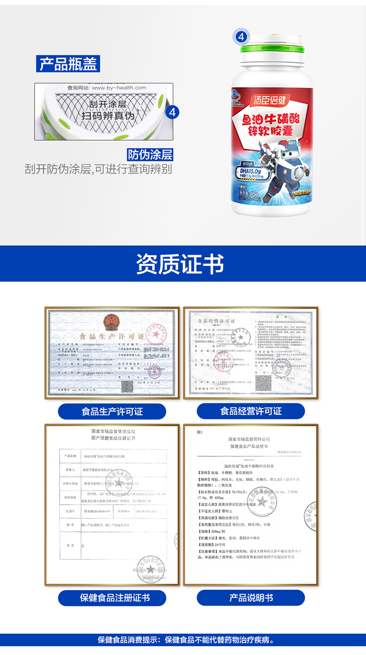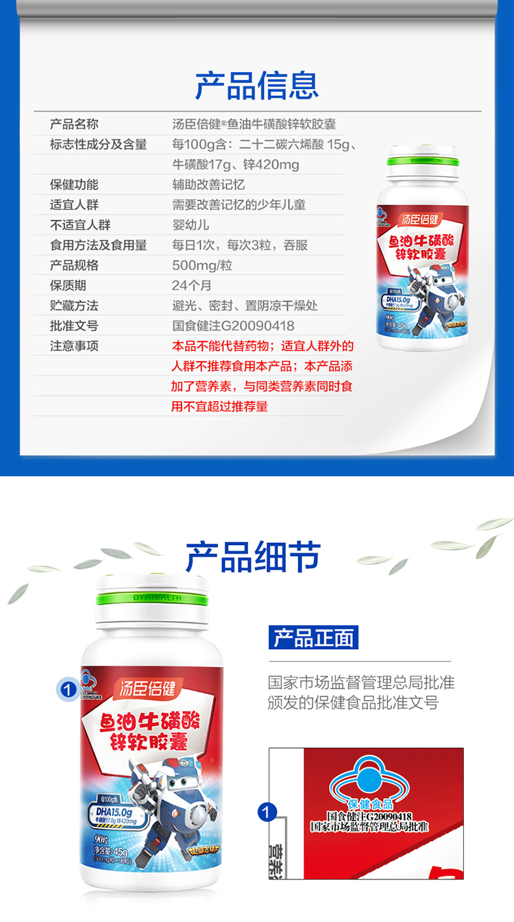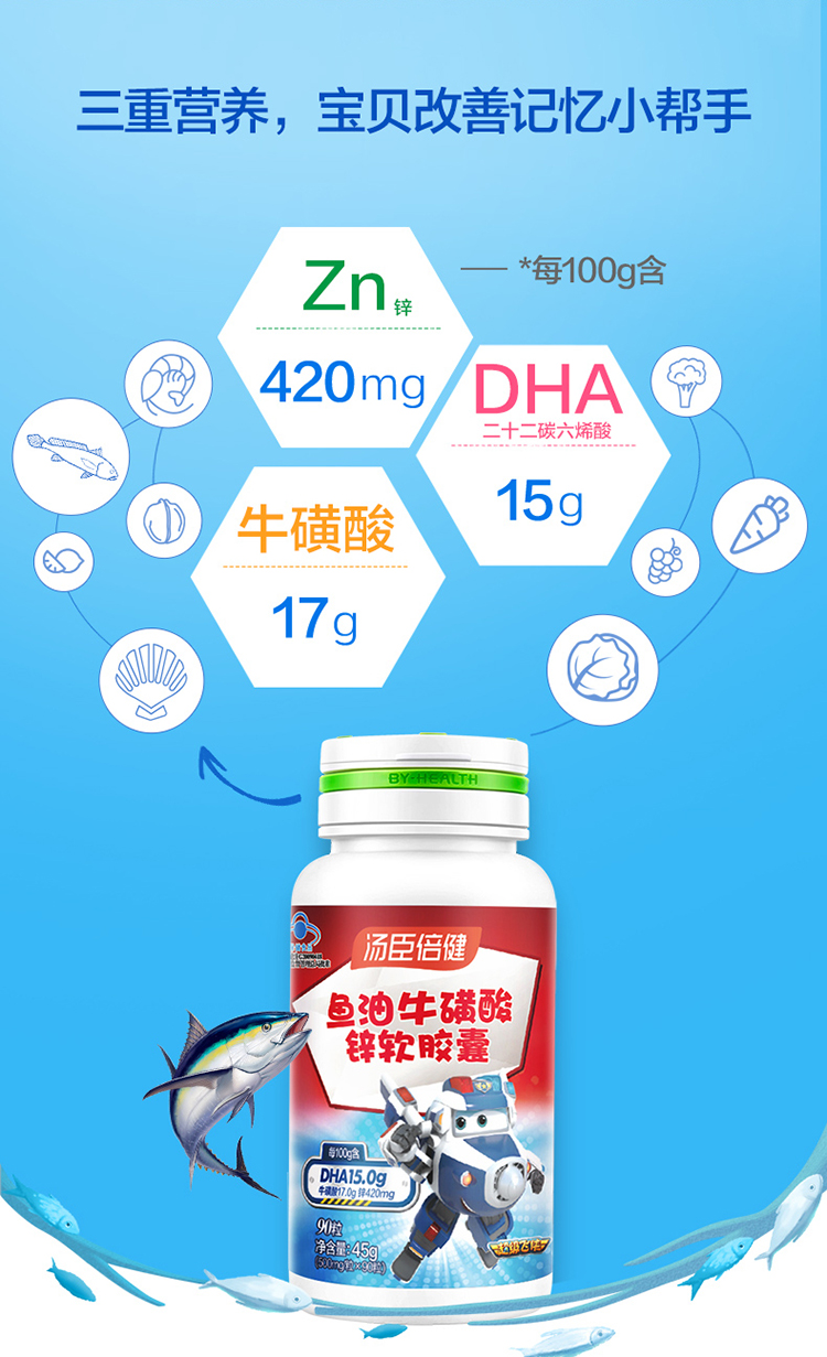 汤臣倍健鱼油牛磺酸锌软胶囊(90粒)*1瓶