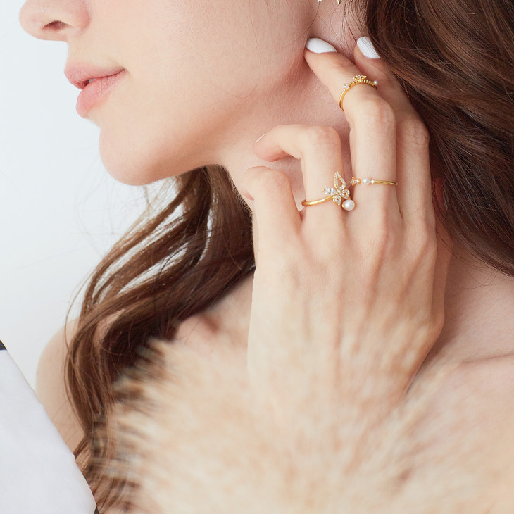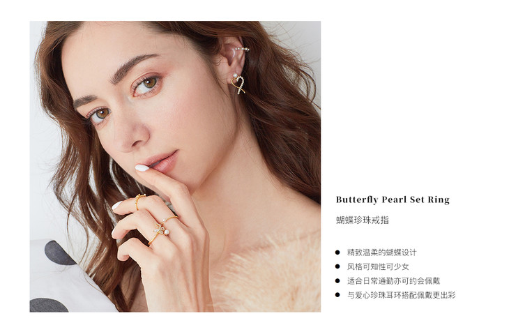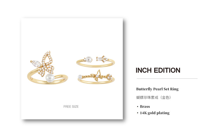 【情人节】INCH EDITION 初恋少女系列 珍珠蝴蝶套戒 I张韶涵 同款