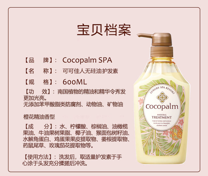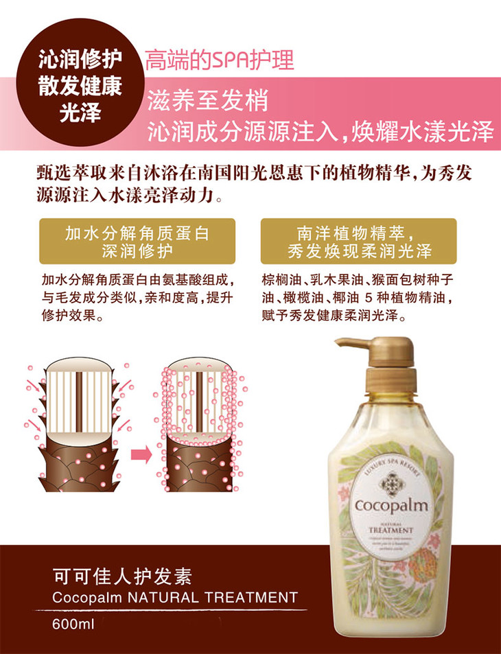 日本进口 Cocopalm珂珂佳人无硅油盈养修护护发素 600ml(261206)