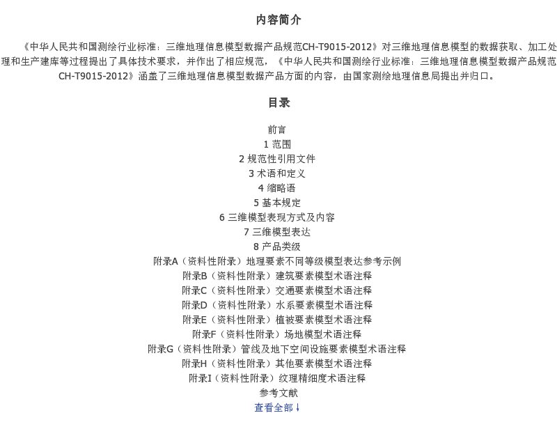 《中华人民共和国测绘行业标准:三维地理信息模型数据产品规范 CH-T9015-2012》