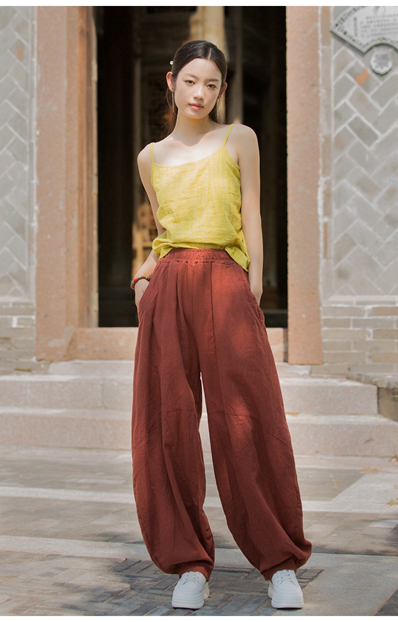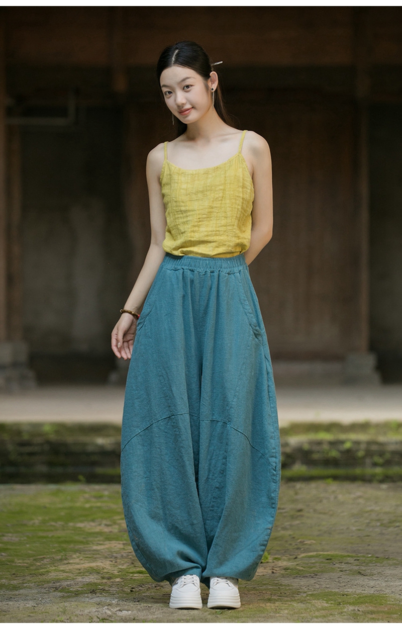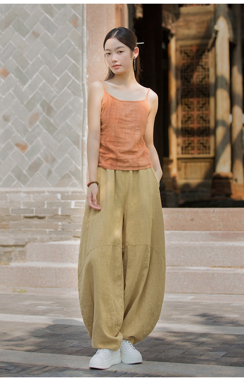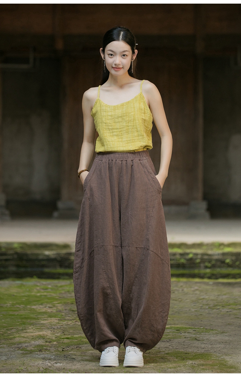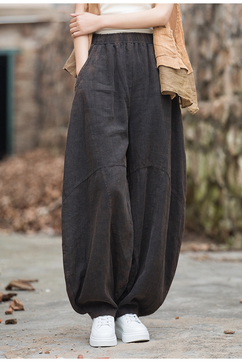 苎麻砂炒做旧垂感宽松高腰松紧腰灯笼裤
