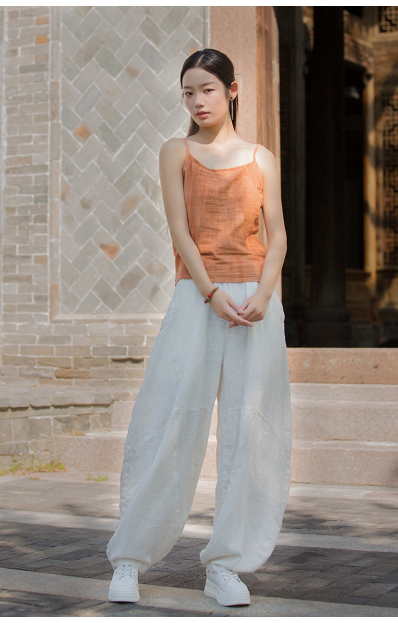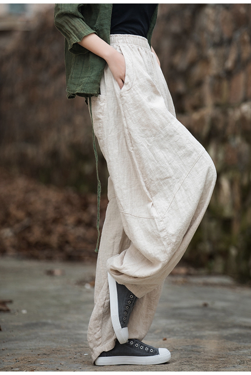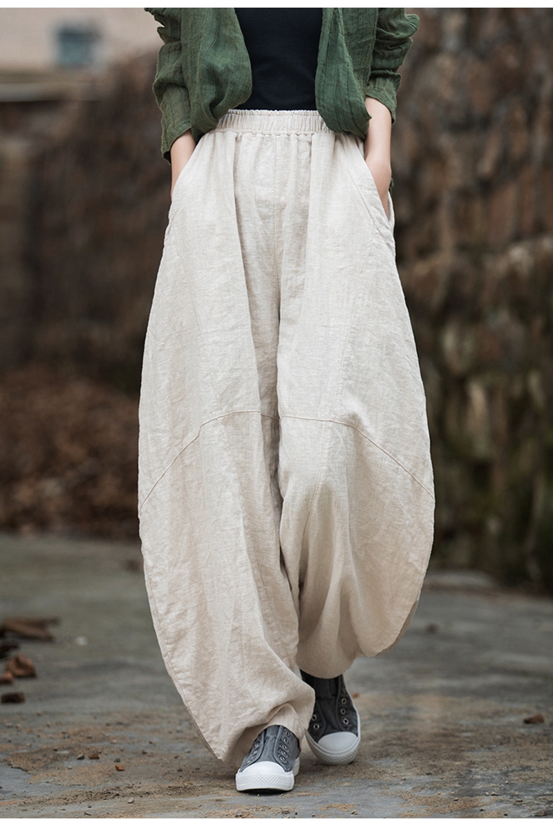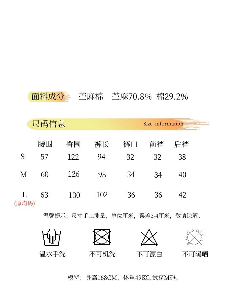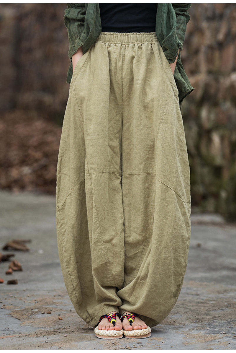 苎麻砂炒做旧垂感宽松高腰松紧腰灯笼裤