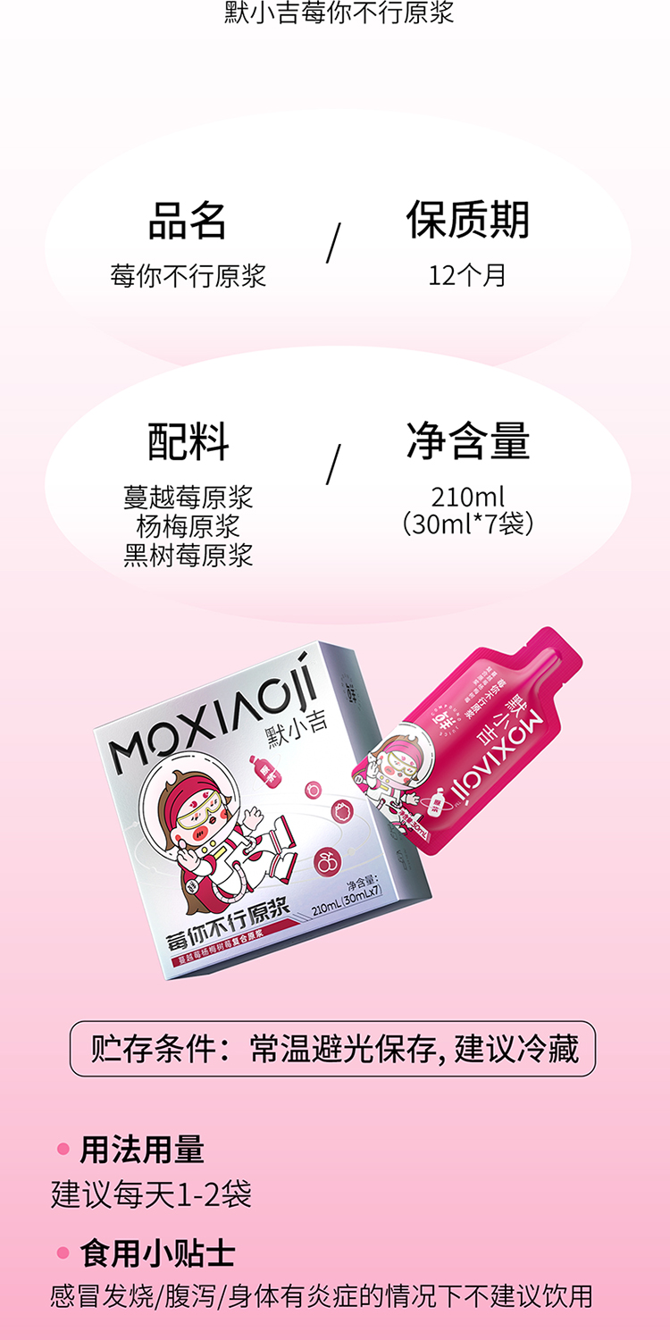 默小吉210ml(7袋)方盒装莓你不行原浆莓你不行采用蔓越莓、杨梅、树莓;果香浓郁、酸甜可口