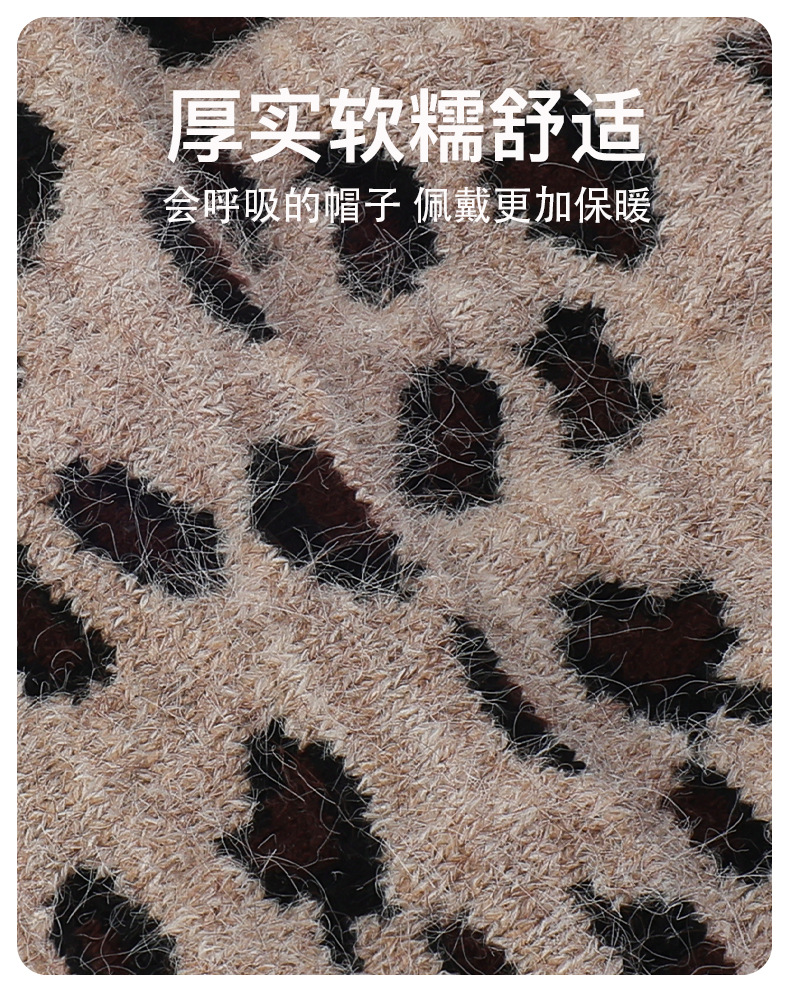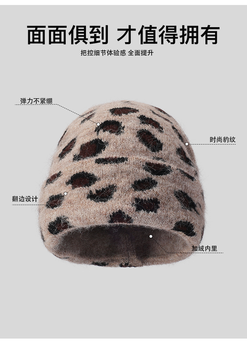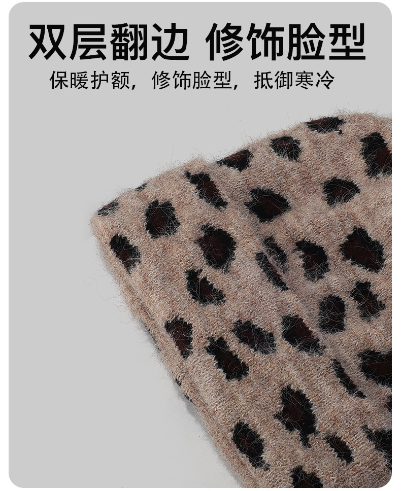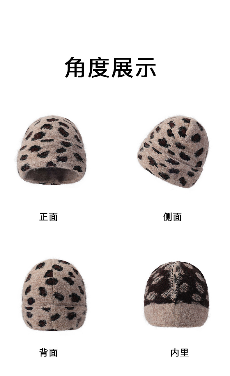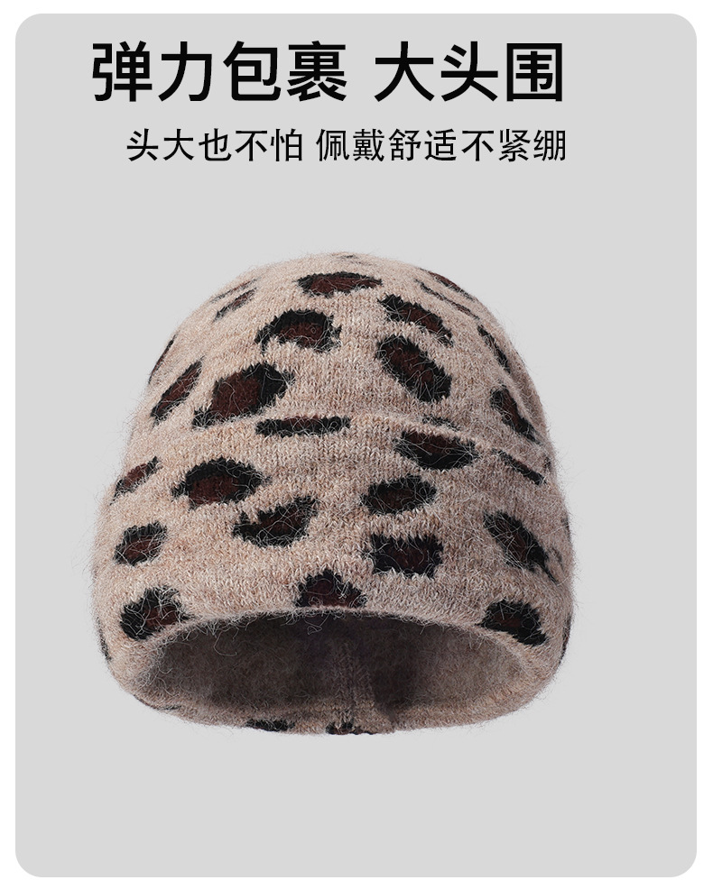 冬季新款新品新款羊绒豹纹毛线帽户外防寒毛线帽加绒加厚斑点套头帽