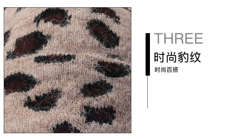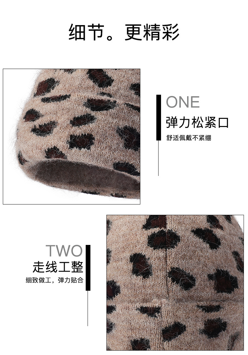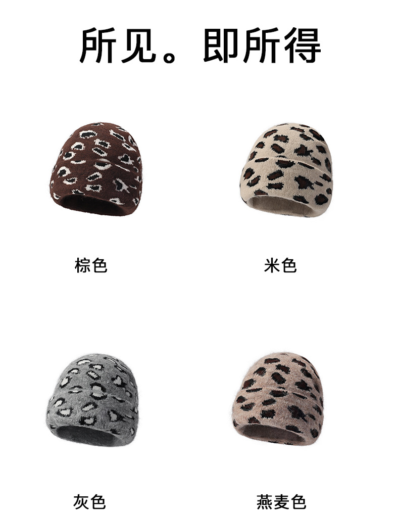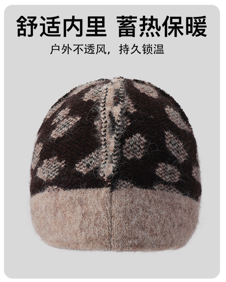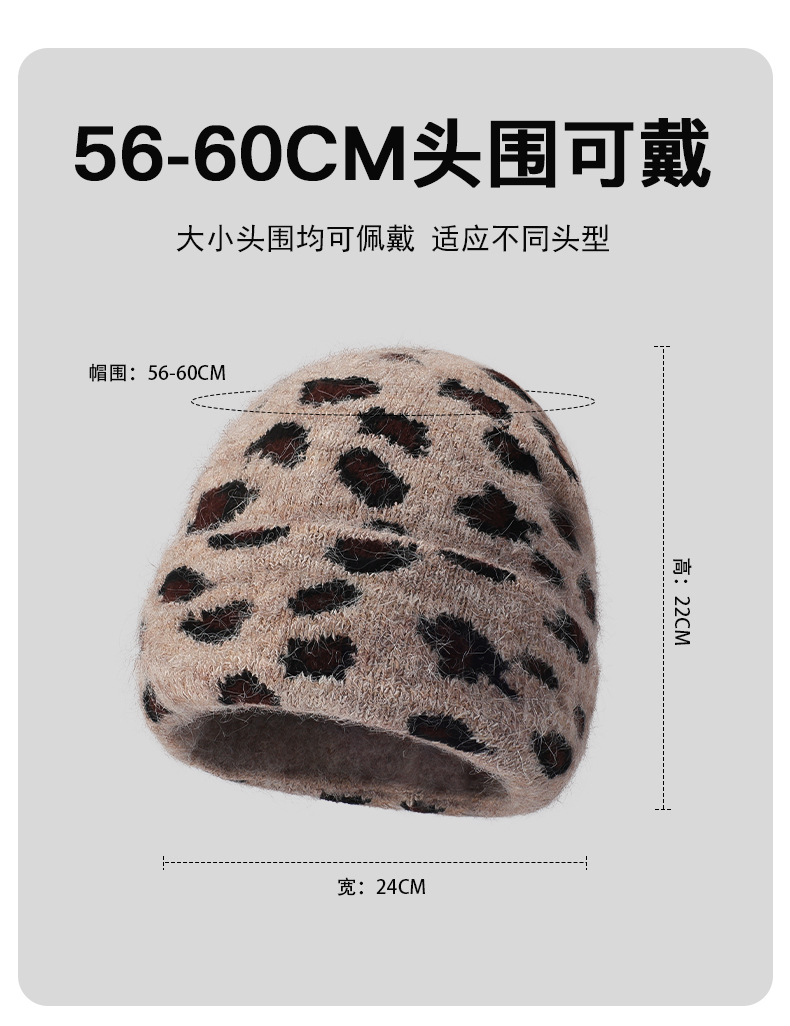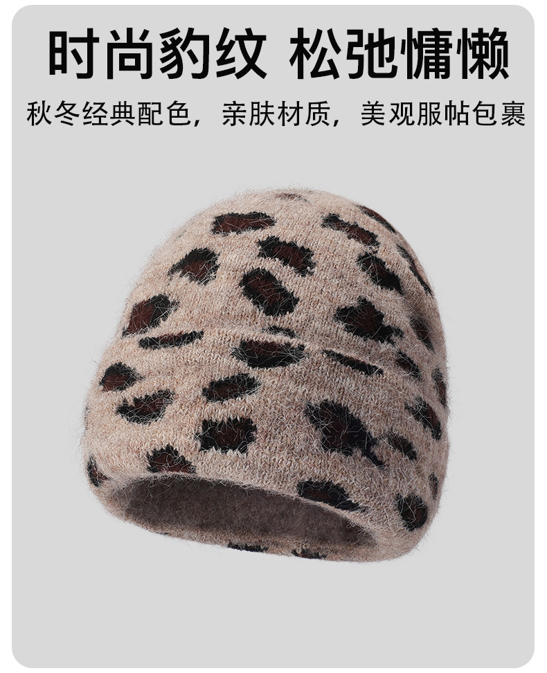 冬季新款新品新款羊绒豹纹毛线帽户外防寒毛线帽加绒加厚斑点套头帽