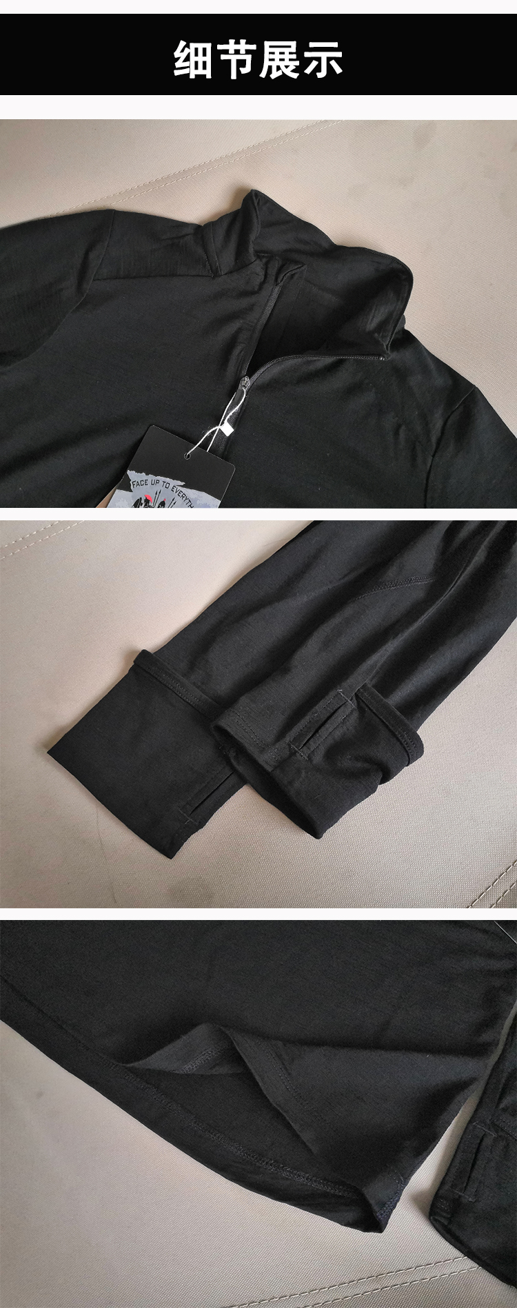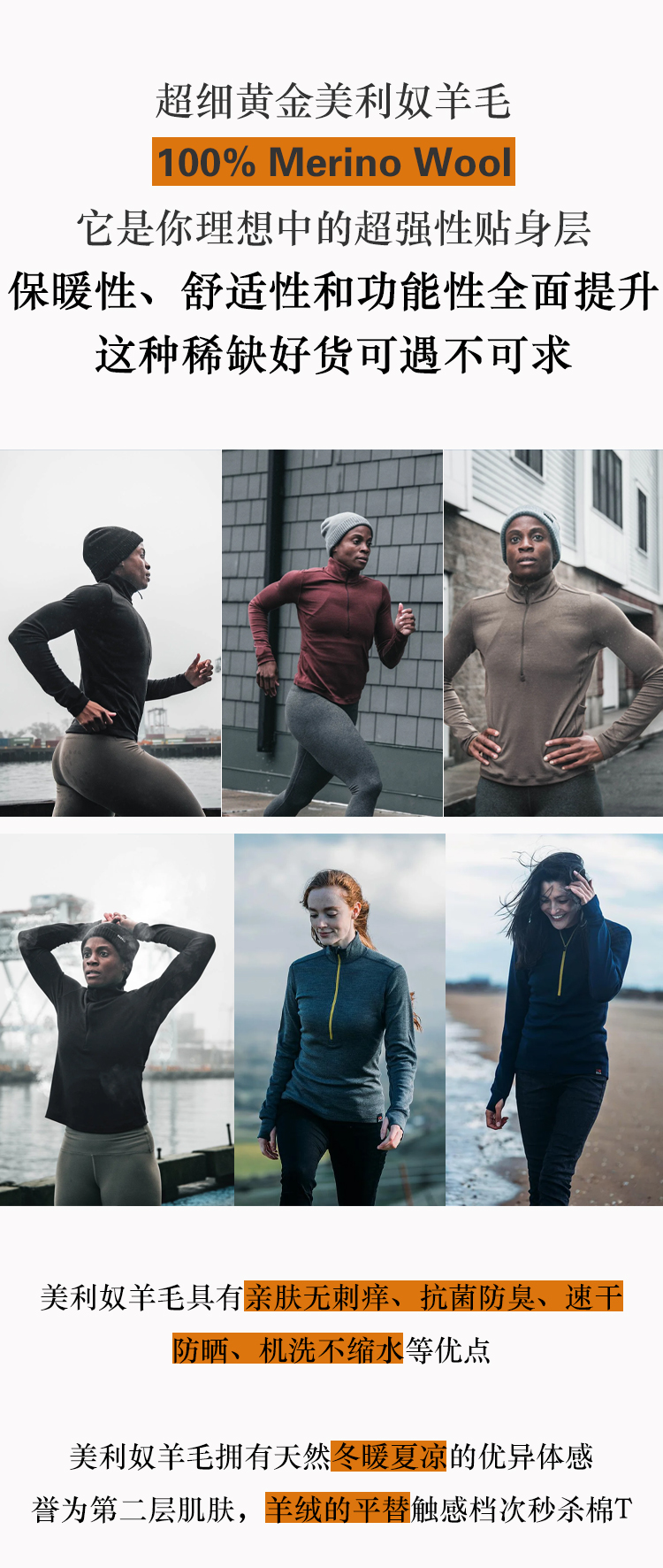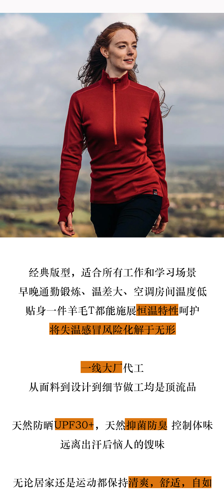 灰壳户外女半拉链美利奴羊毛速干衣美丽诺长袖徒步爬山打底T恤