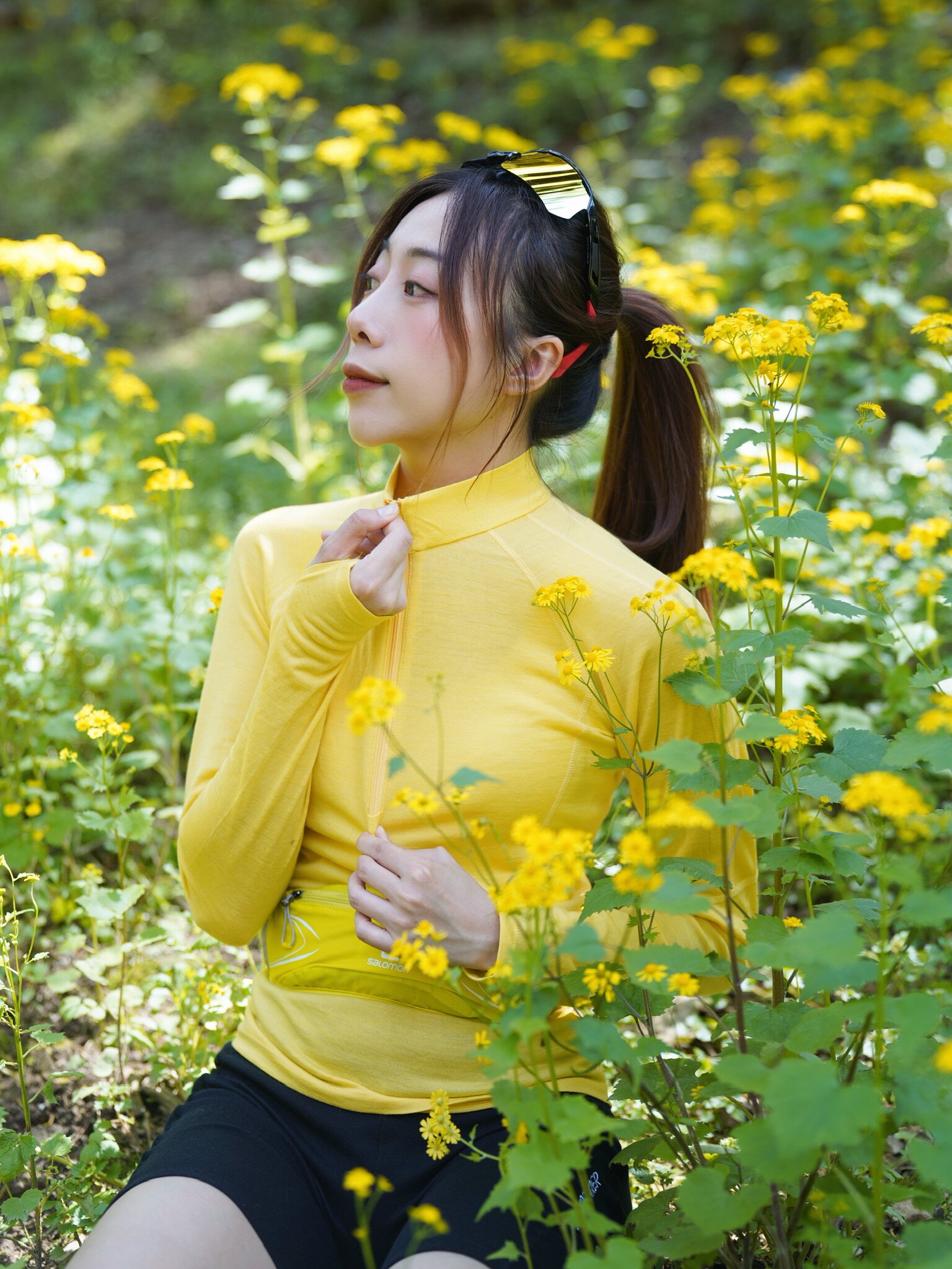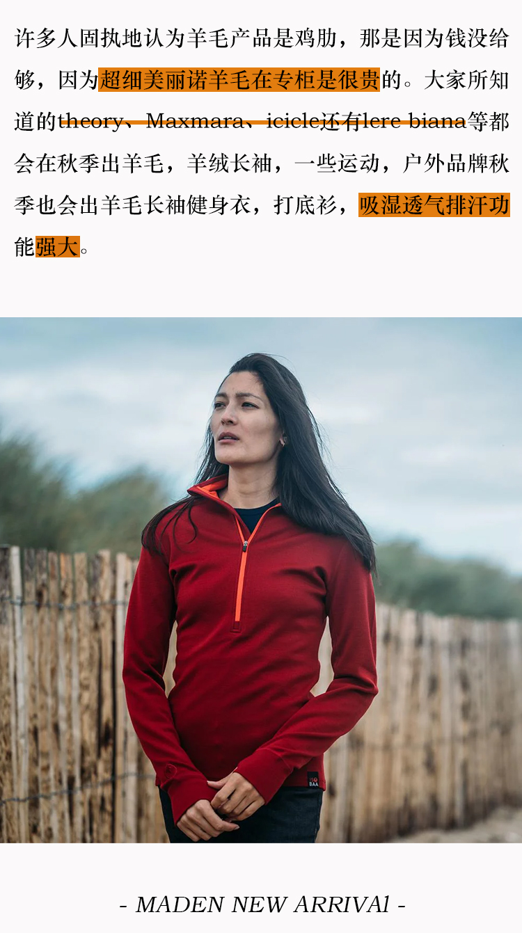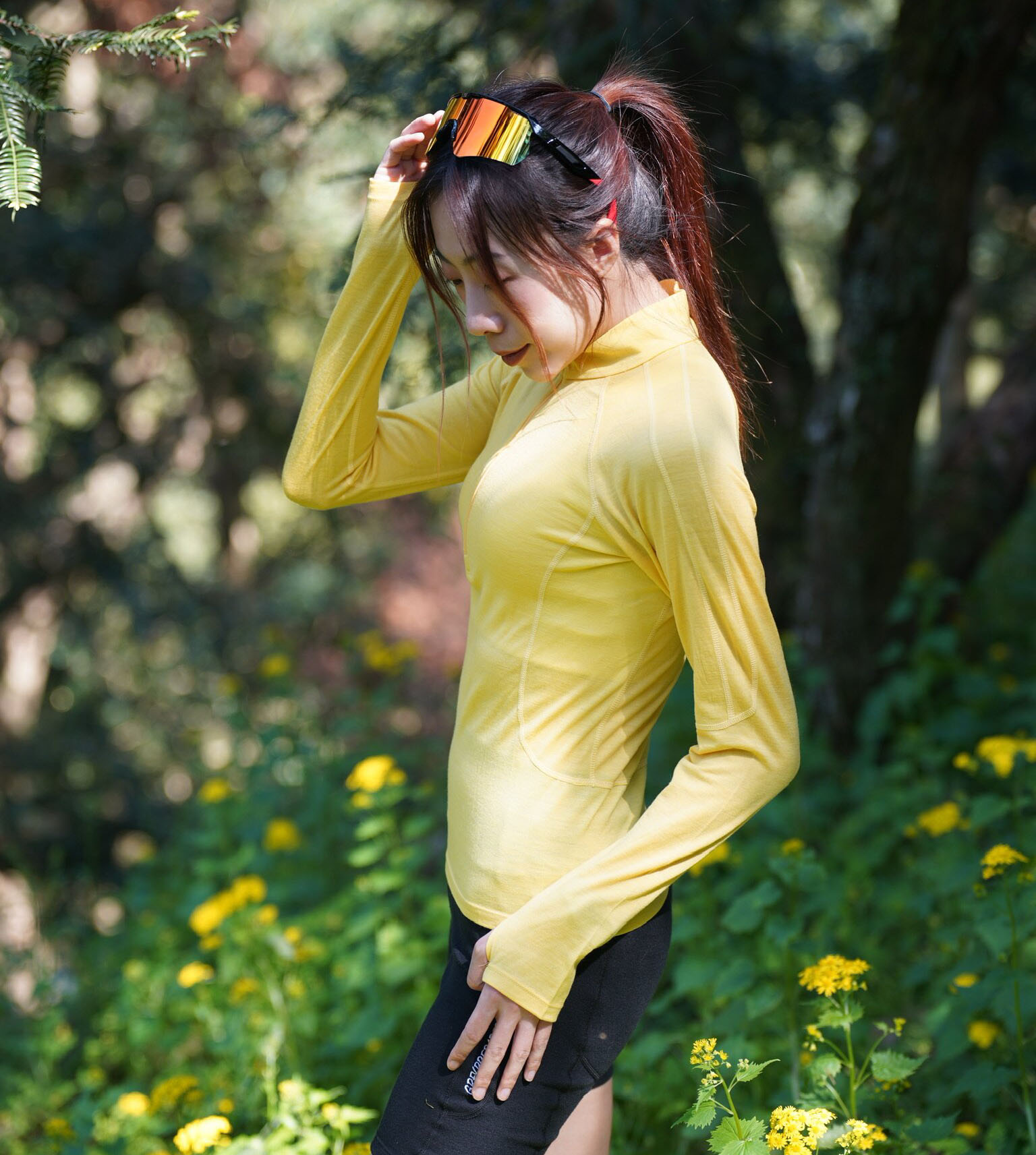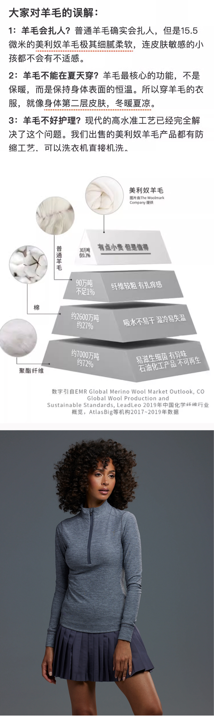 灰壳户外女半拉链美利奴羊毛速干衣美丽诺长袖徒步爬山打底T恤