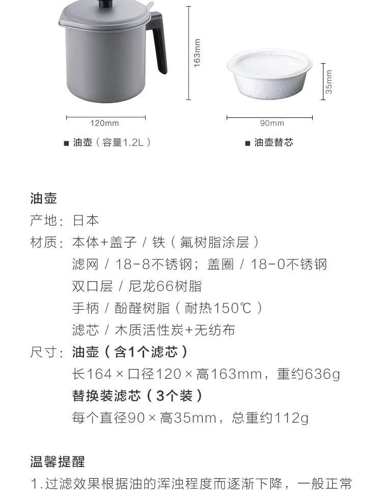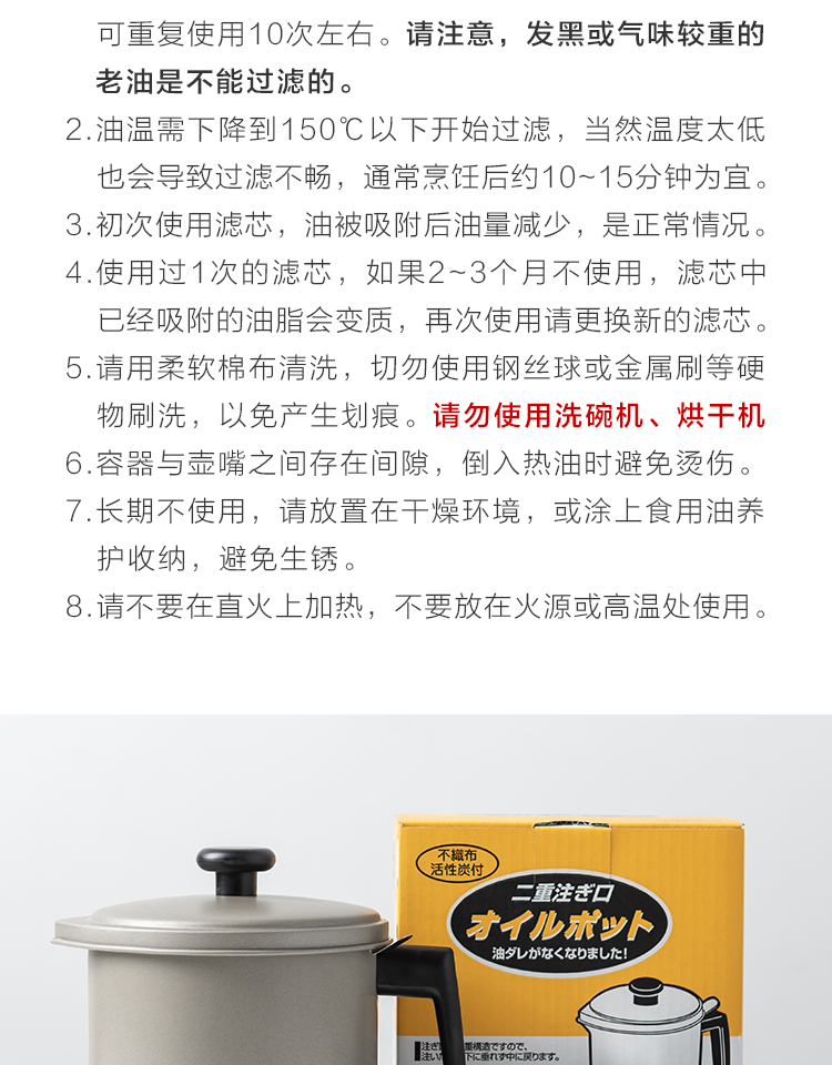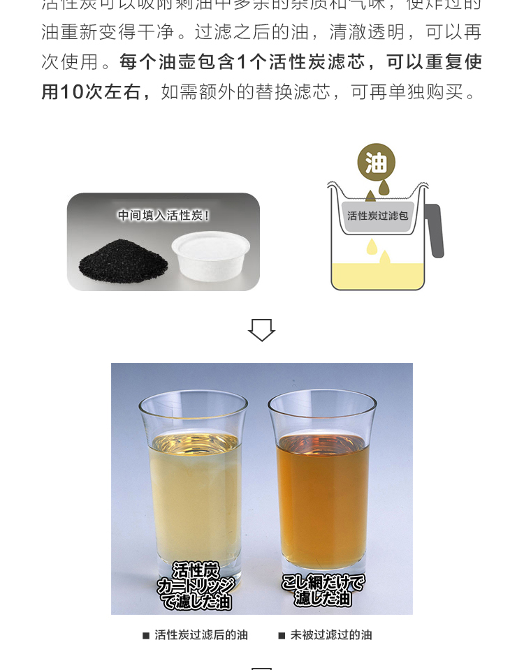 日本进口YOSHIKAWA滤油壶天妇罗油炸油渣残油过滤器除菌活性炭包