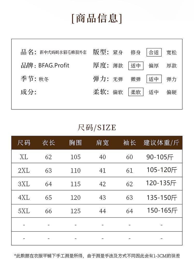 【品名】新中式妈妈水貂毛棉服外套J254M793