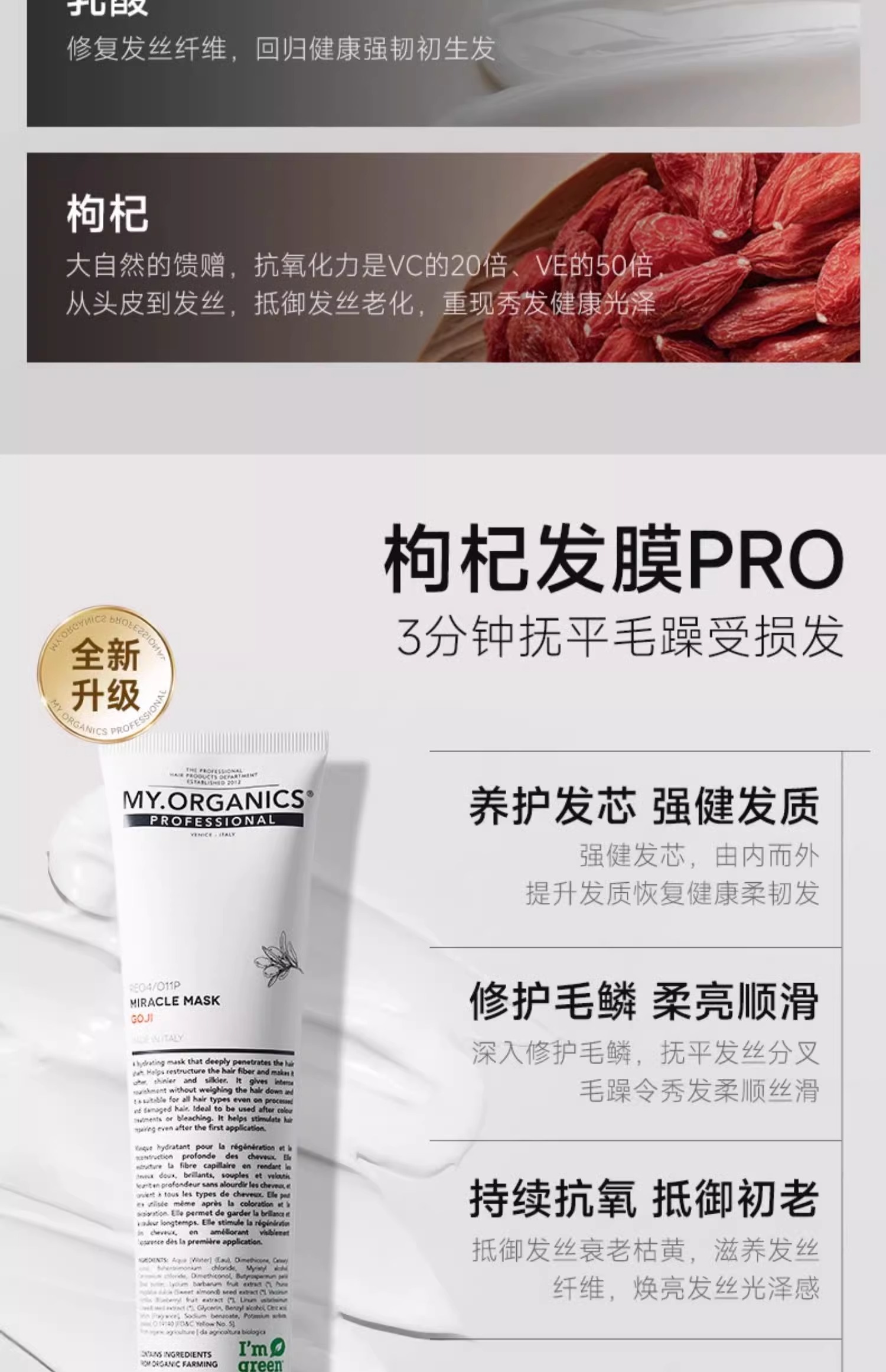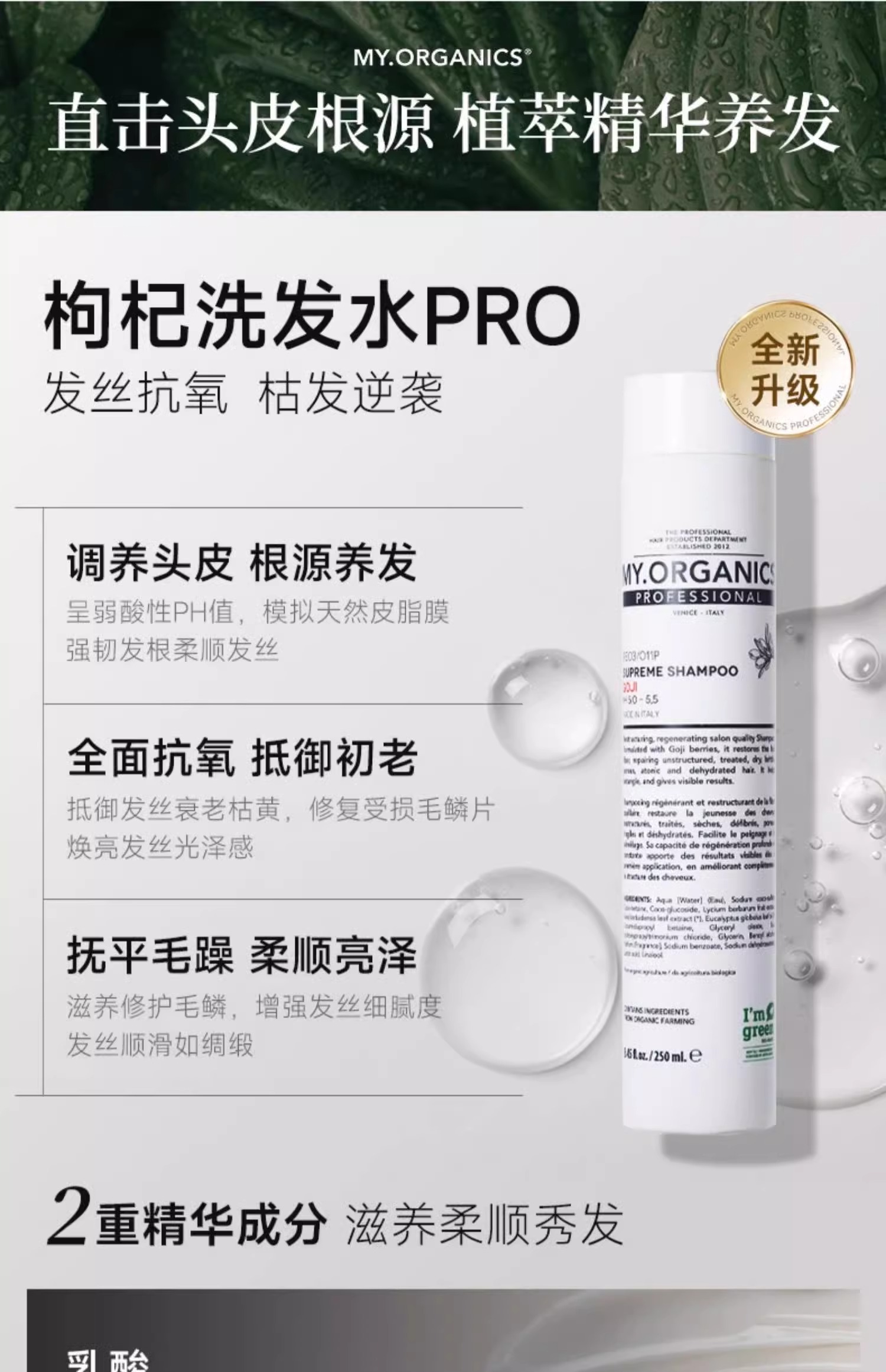 My organics 枸杞柔顺滋润洗发水pro版250ml 章小蕙推荐