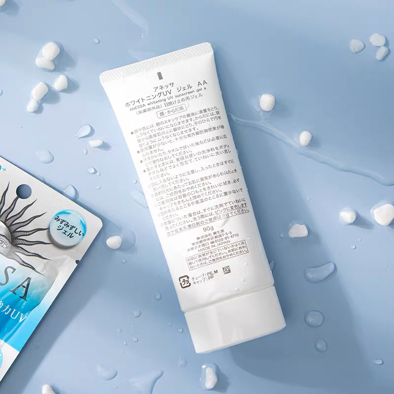 美白防晒二合一的安耐晒白管防晒SPF50+PA++++,含有50%护肤成分,添加美白成分传明酸,抑制黑色素形成。水感啫喱质地,高倍防晒,美白提亮,可做妆前乳,后续上妆更服帖。日常容易长晒斑的,可以优先选这款,美白的同时有效阻隔因紫外线而产生的色斑。用含皂基的洁面和沐浴露就可轻松卸掉。