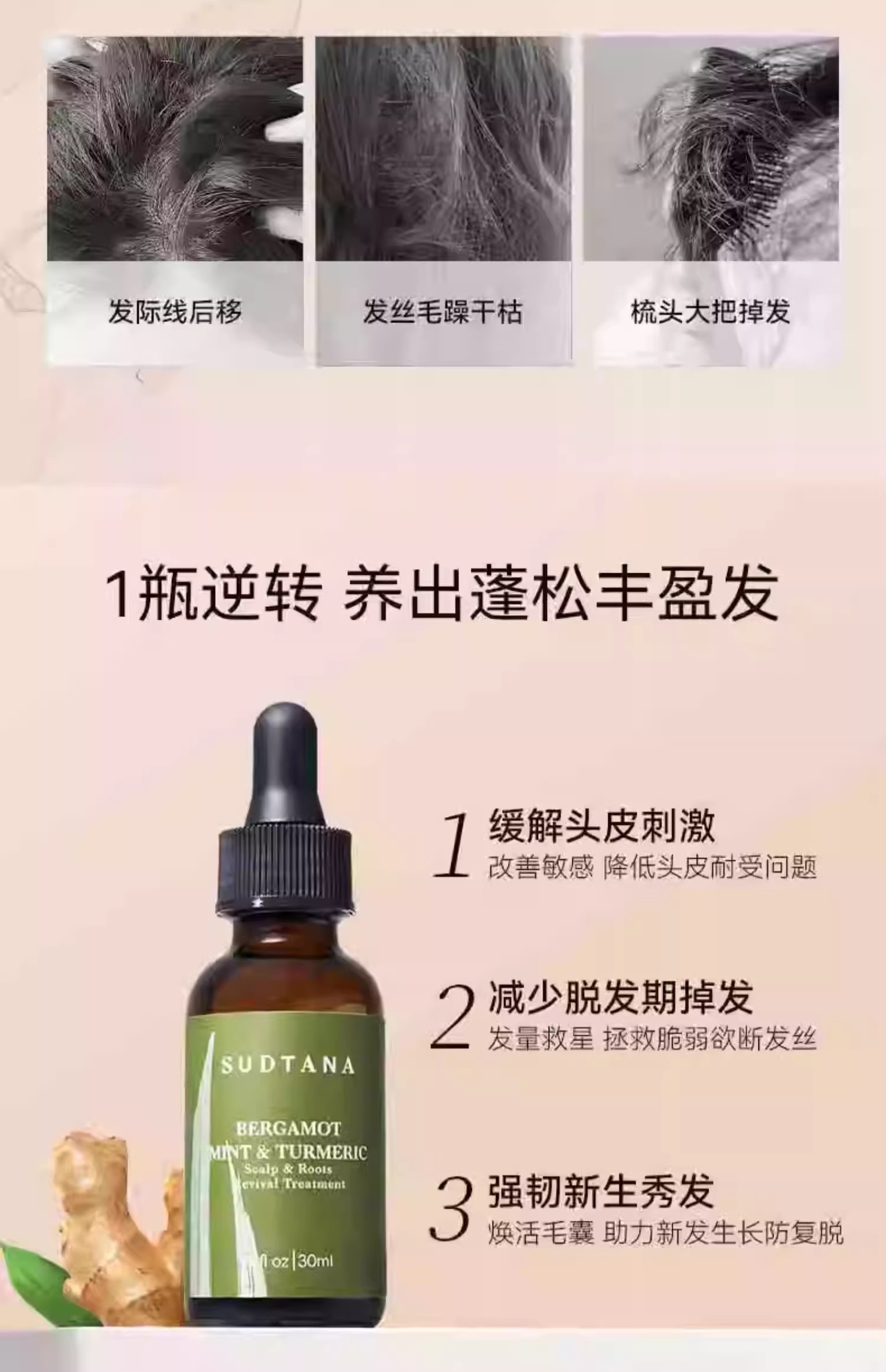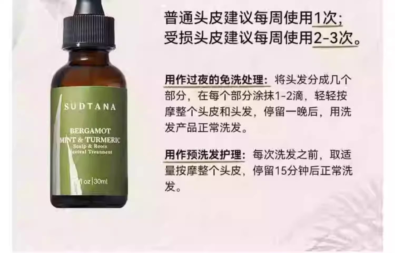 SUDTANA 姜黄头皮发根护理精油佛手柑薄荷 30ml 章小蕙推荐
