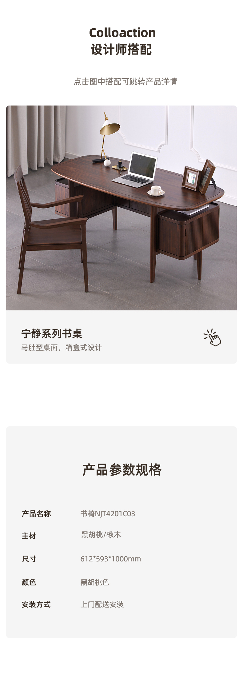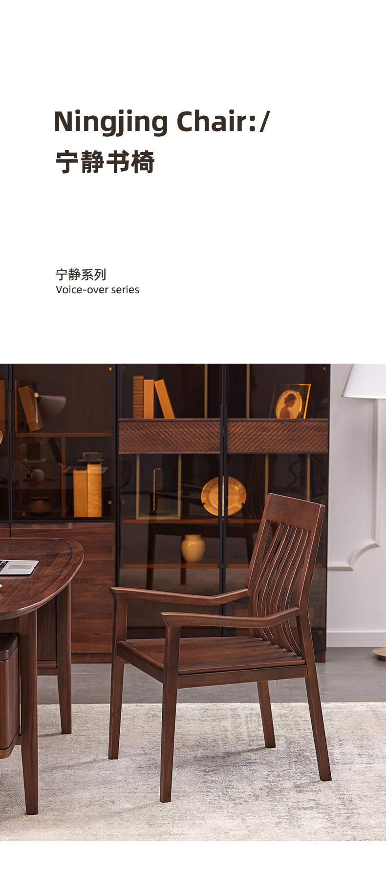 【现代实木风-NJT4204C03书椅】现代实木/ 现代简约/书房/北美黑胡桃/实木书椅