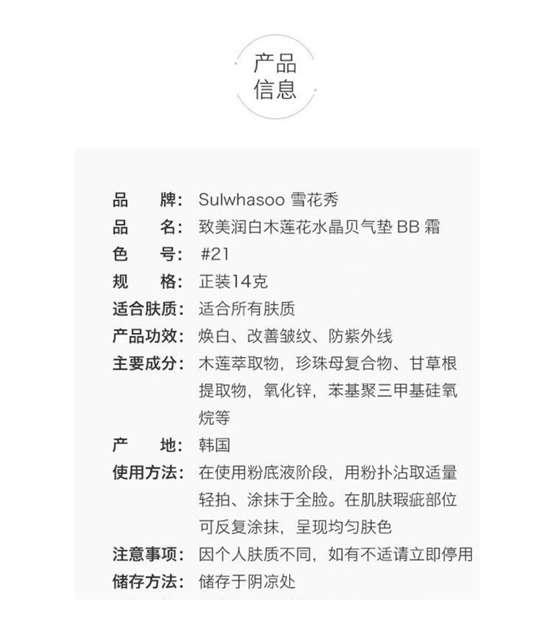 雪花秀 珠光版木莲花气垫