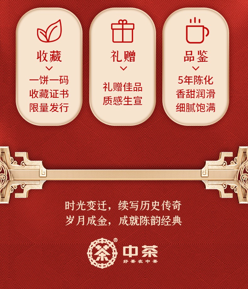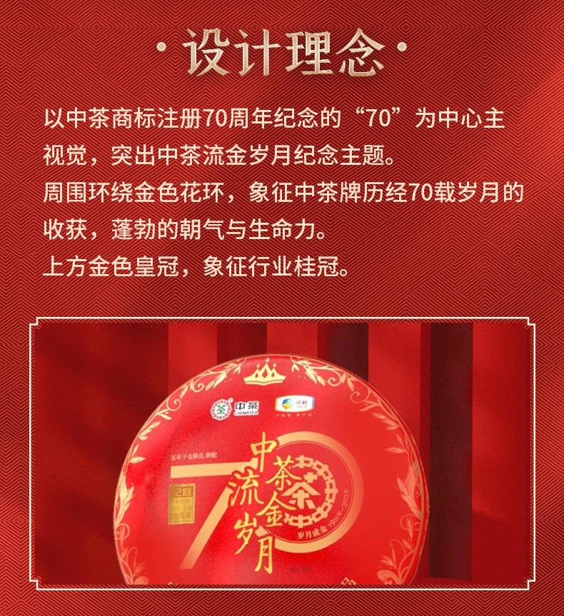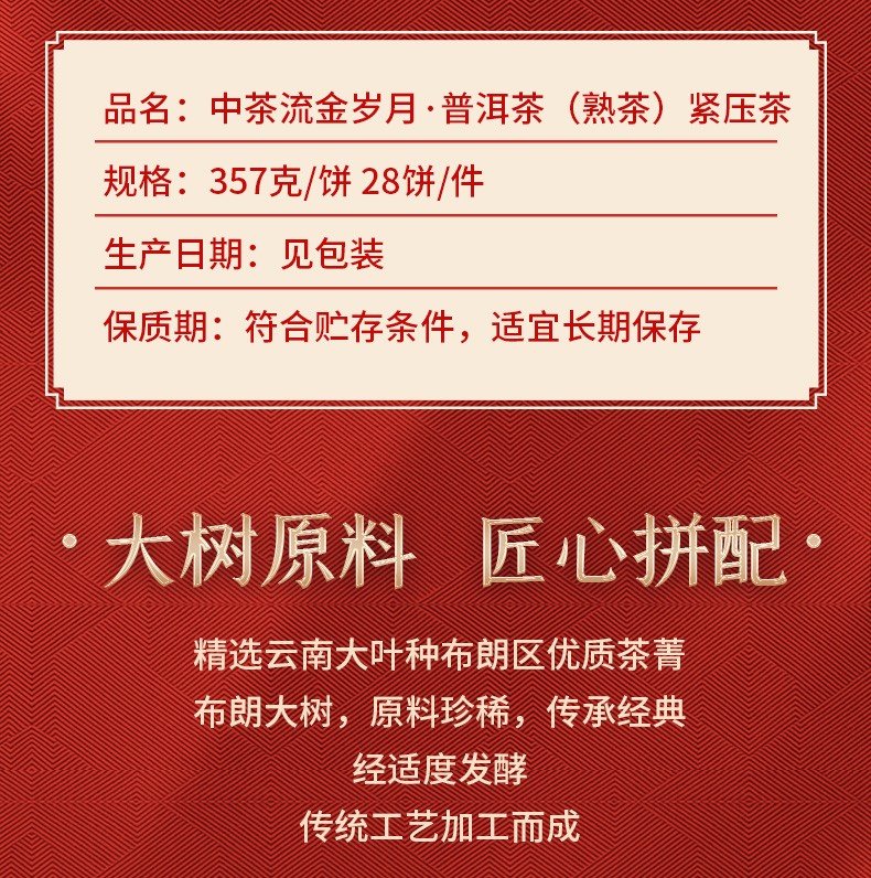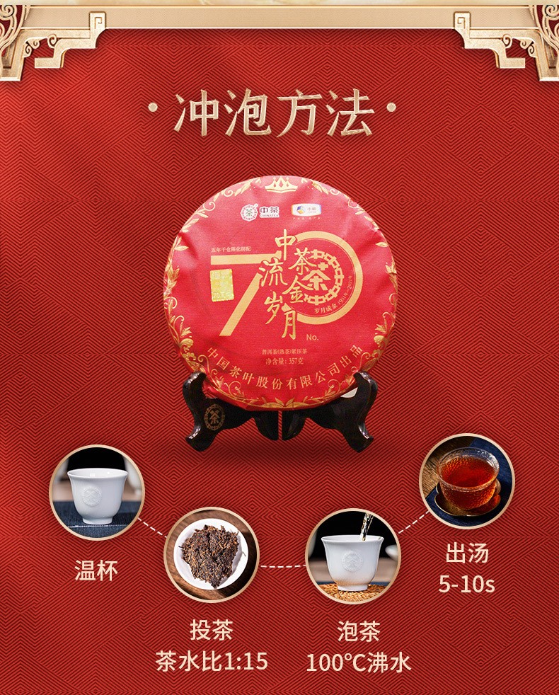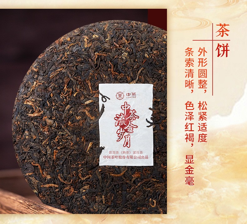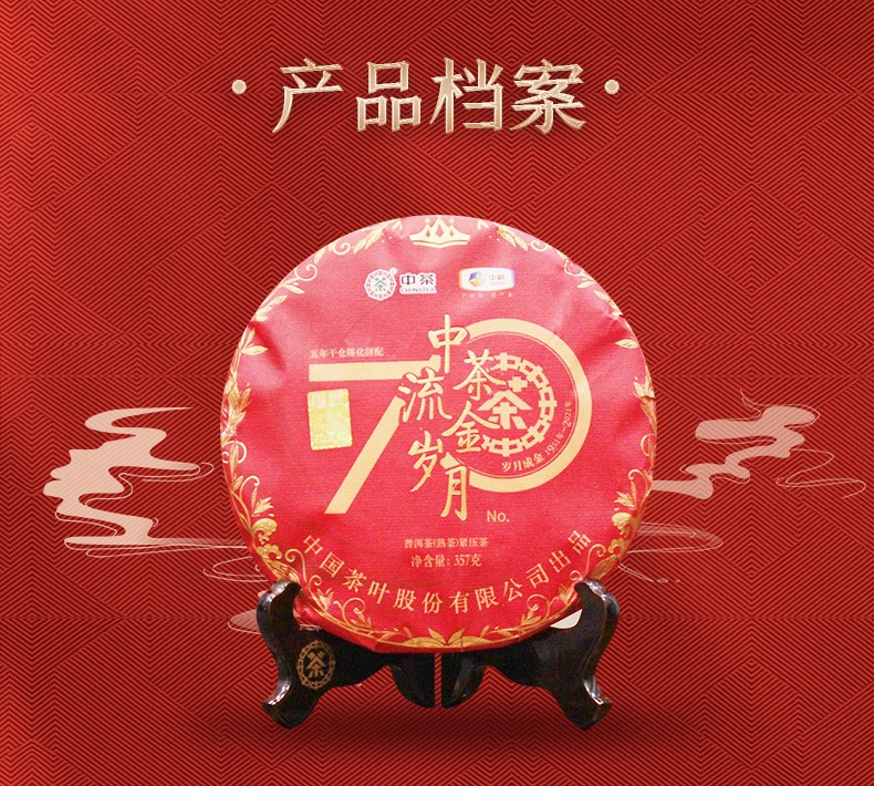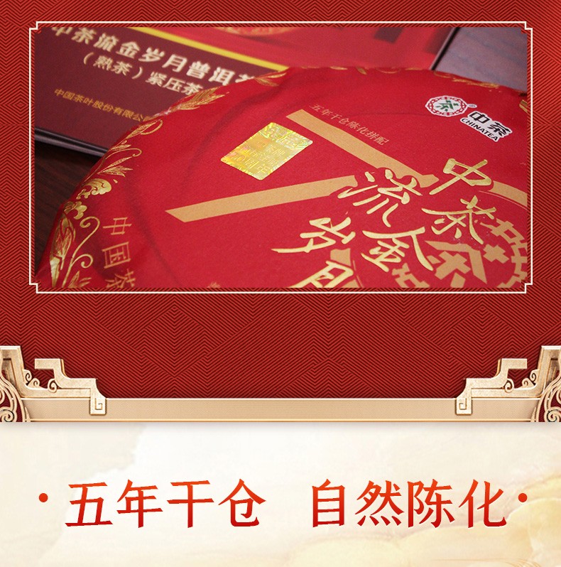 中粮-中茶熟普洱茶(五年陈)70周年纪念流金岁月系列普洱熟茶饼357g /干仓直发