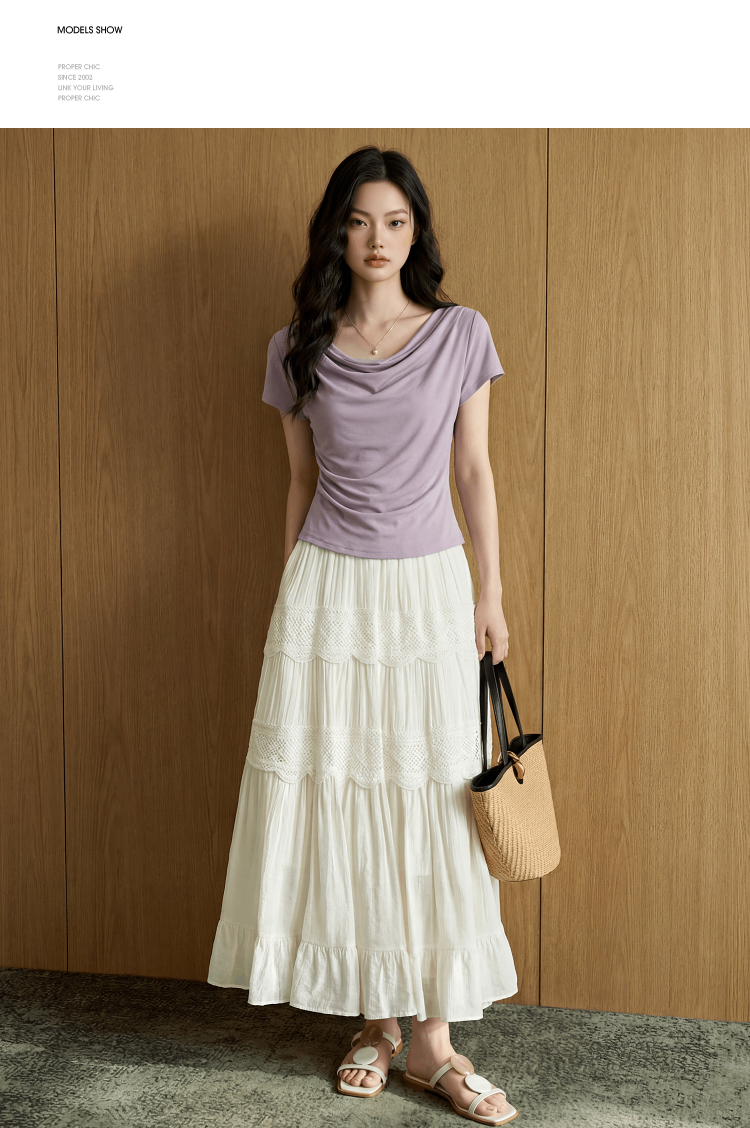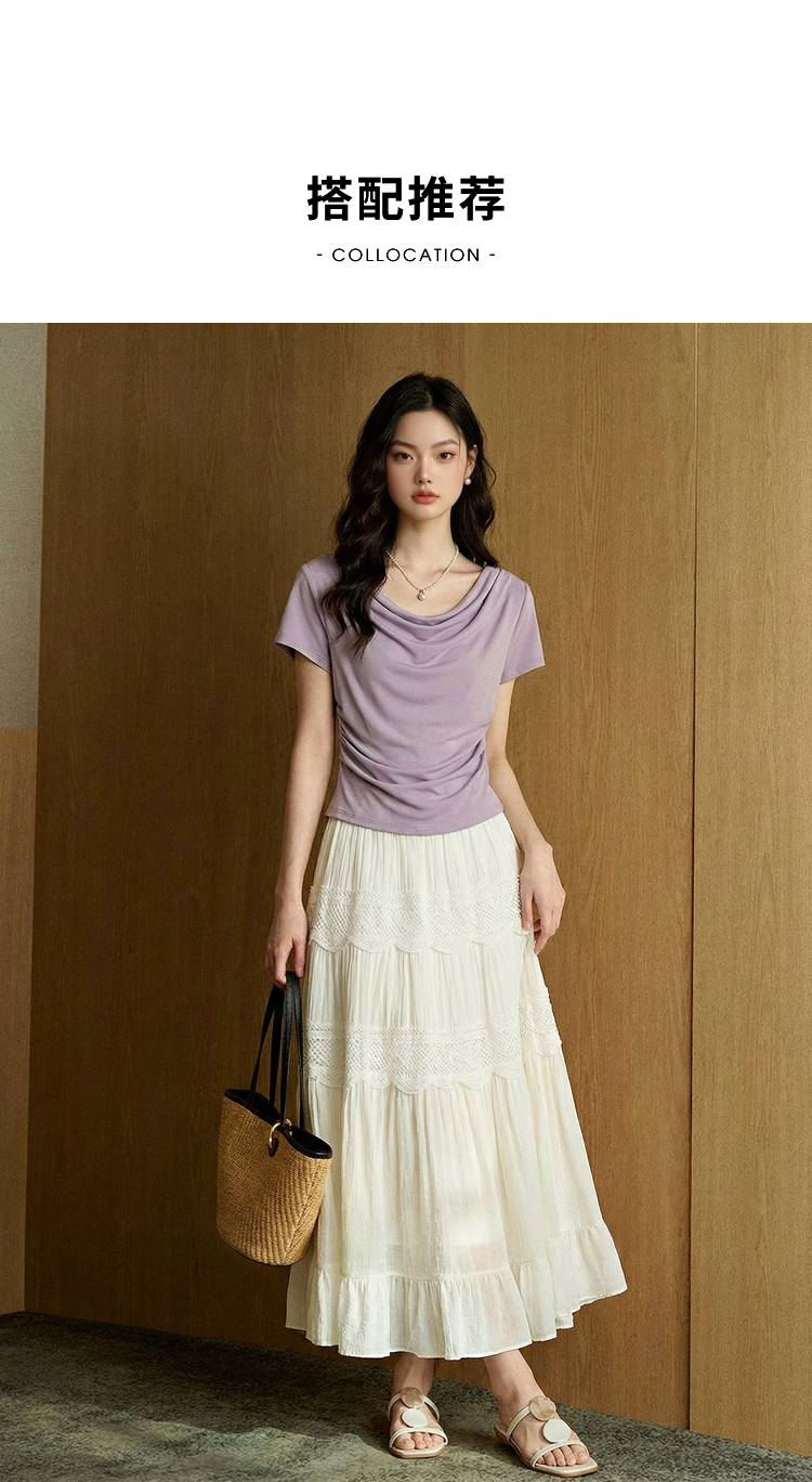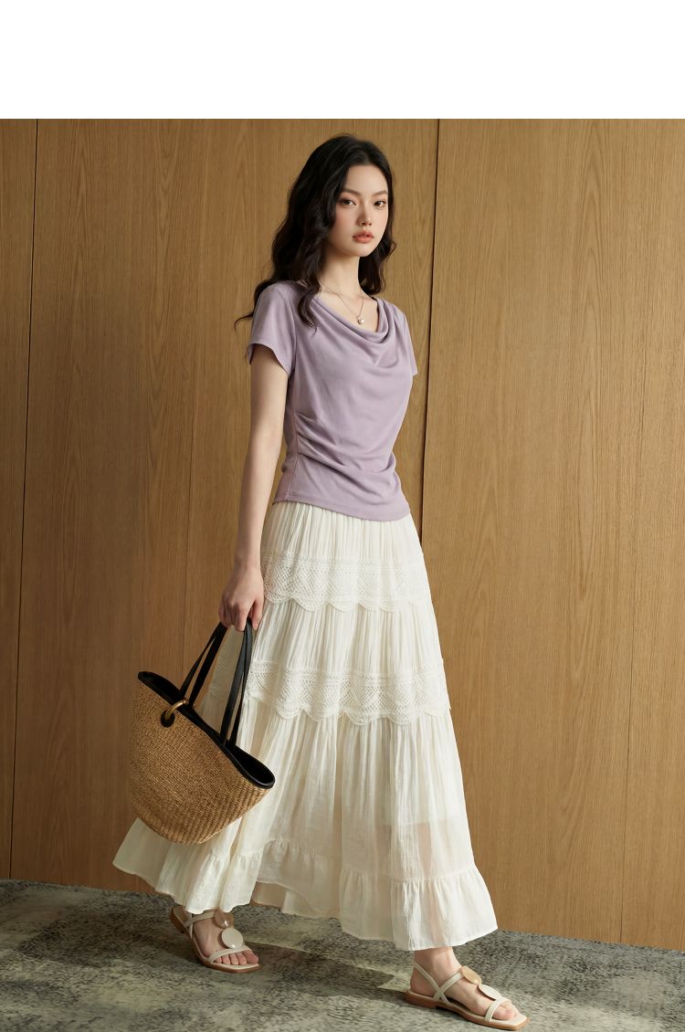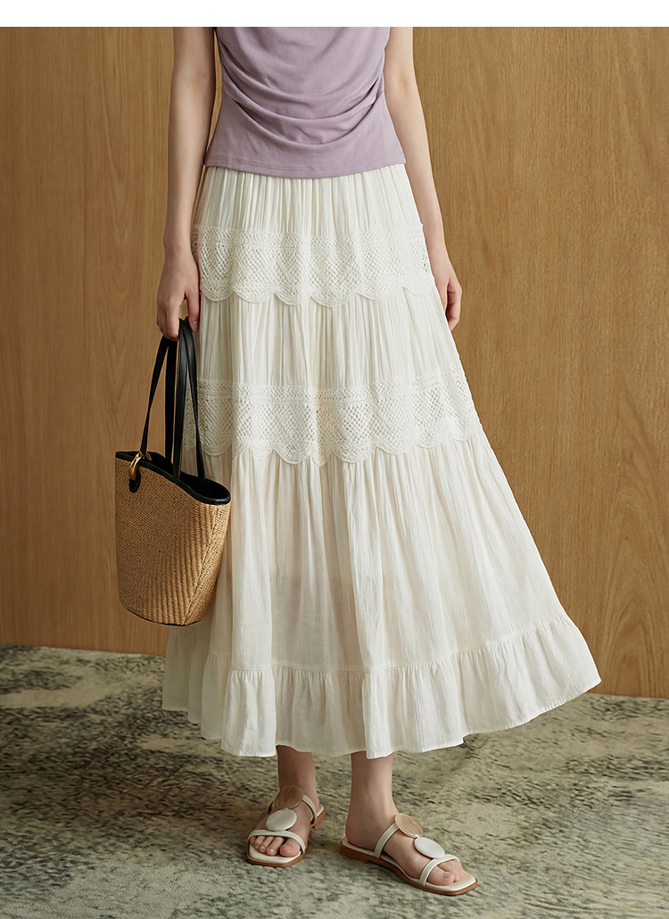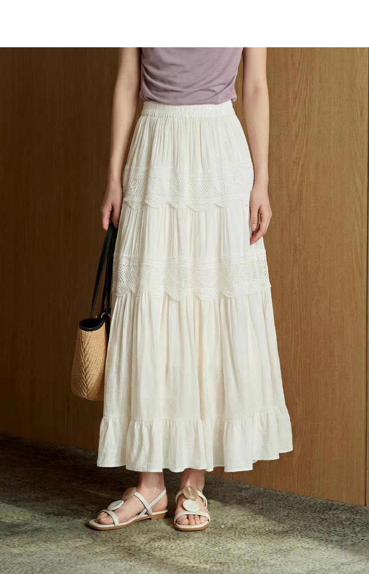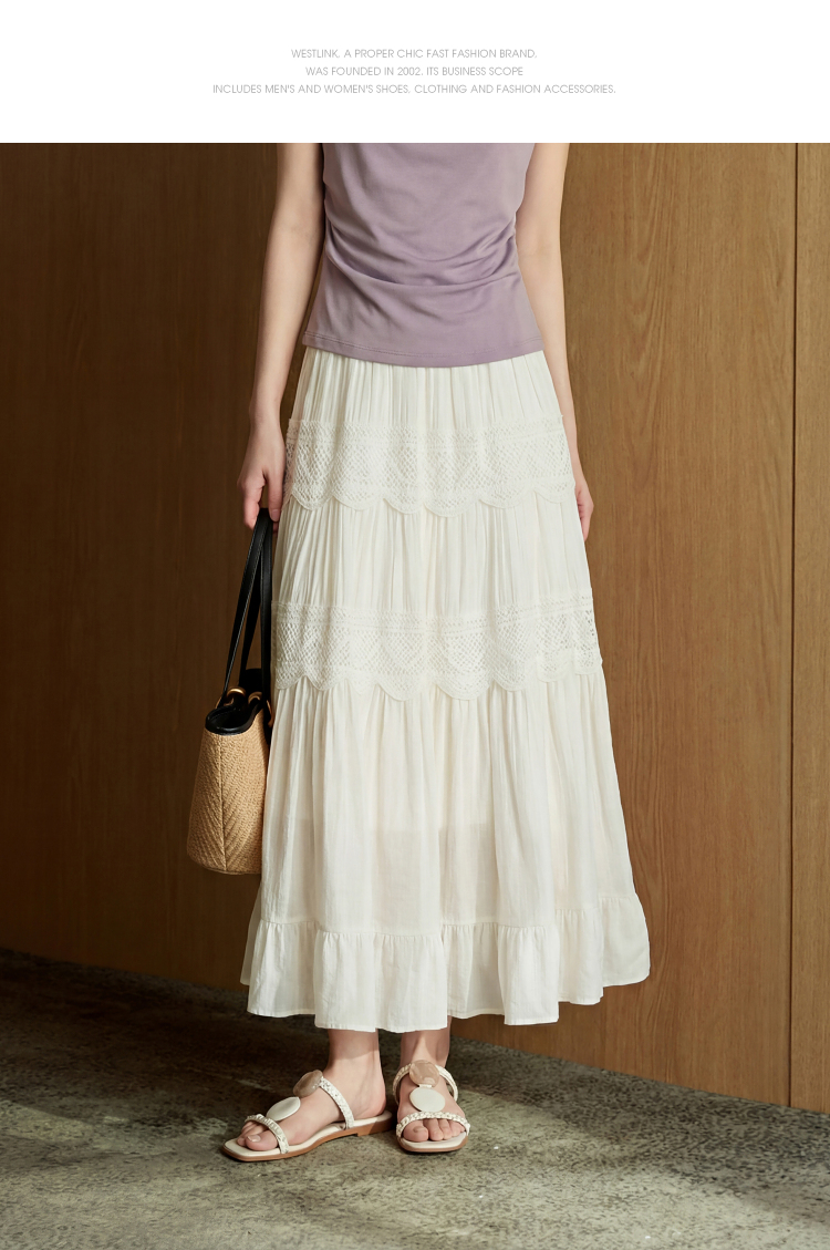 西遇法式温柔风松紧腰半身裙女2026春季新款高腰镂空勾花A字长裙E0060120