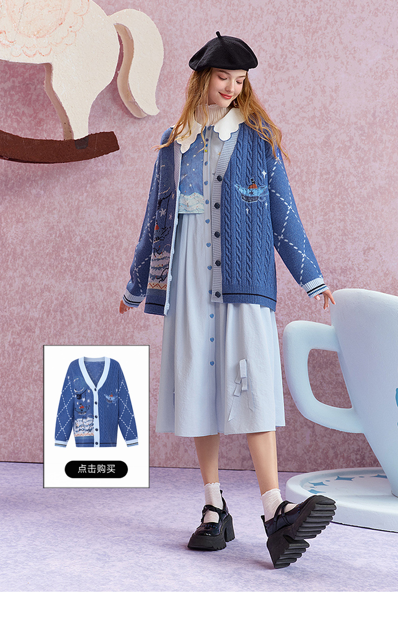 两三事梵高艺术灿烂与偏执秋复古开衫毛衣外套女慵懒风设计感小众