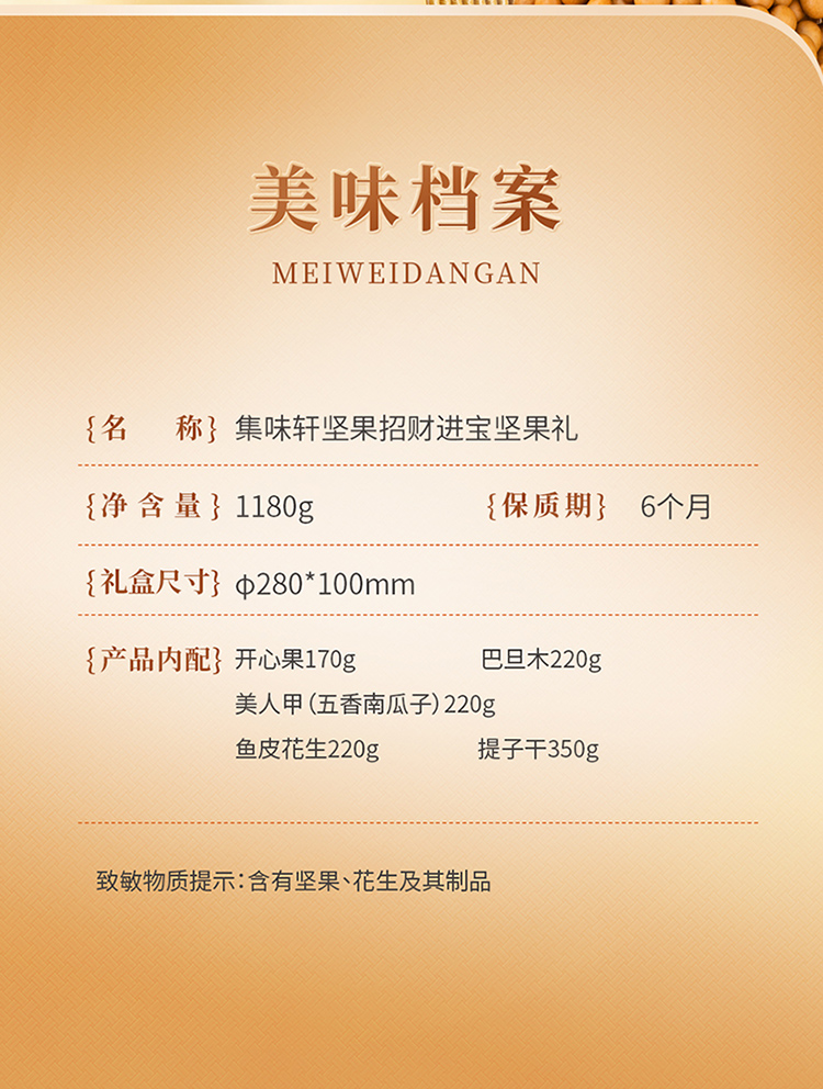 【自营】【特价】集味轩坚果招财进宝坚果礼1180g