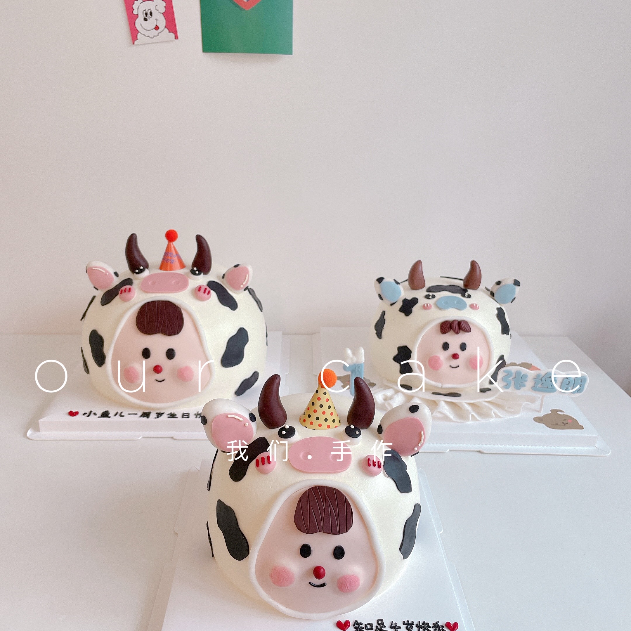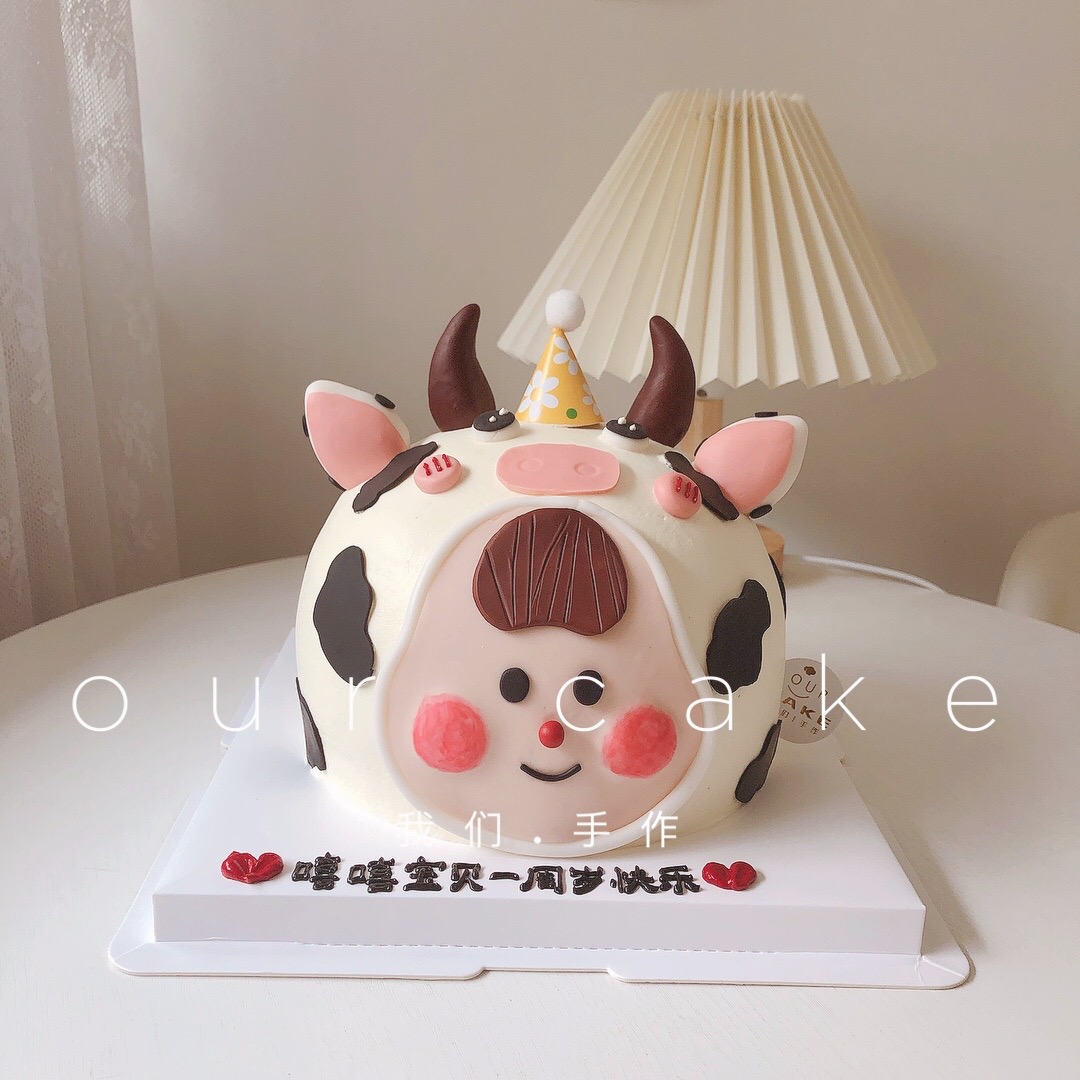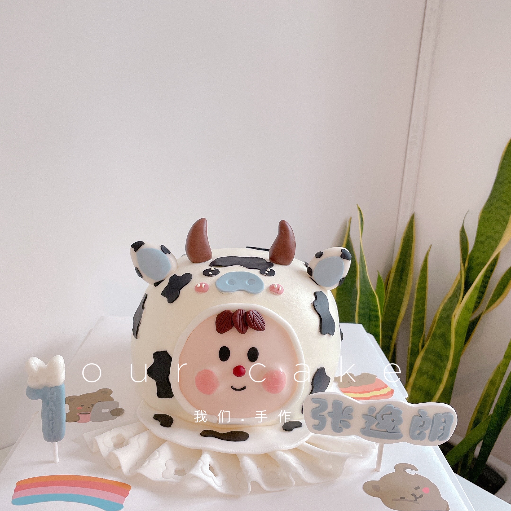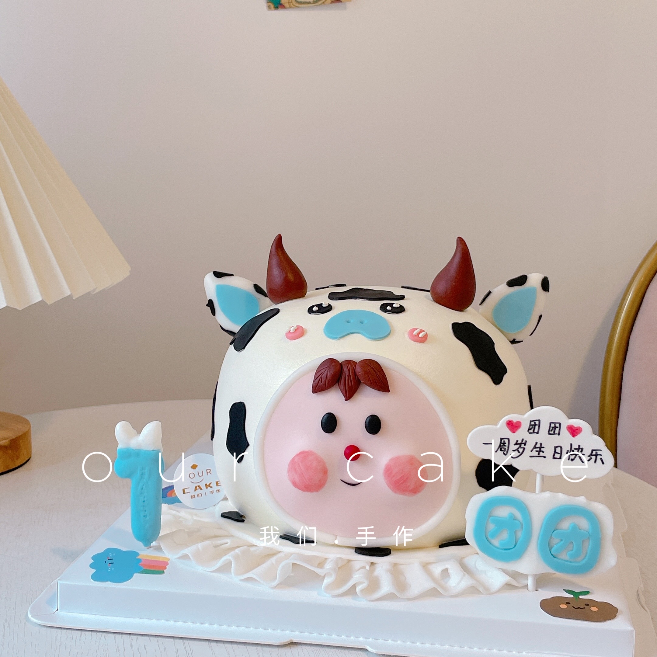 立体奶牛宝宝蛋糕/周岁/男宝女宝(该造型建议选水果口味)-低糖处理无添加