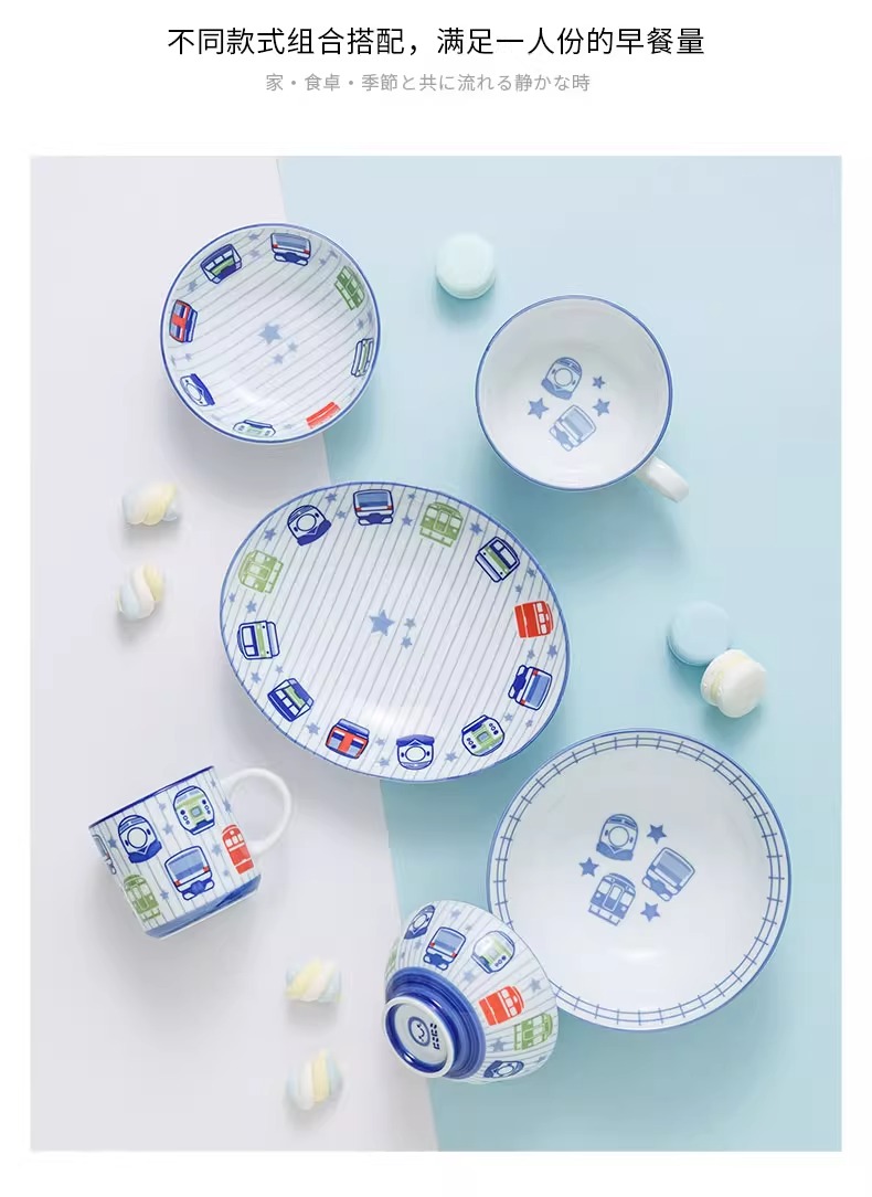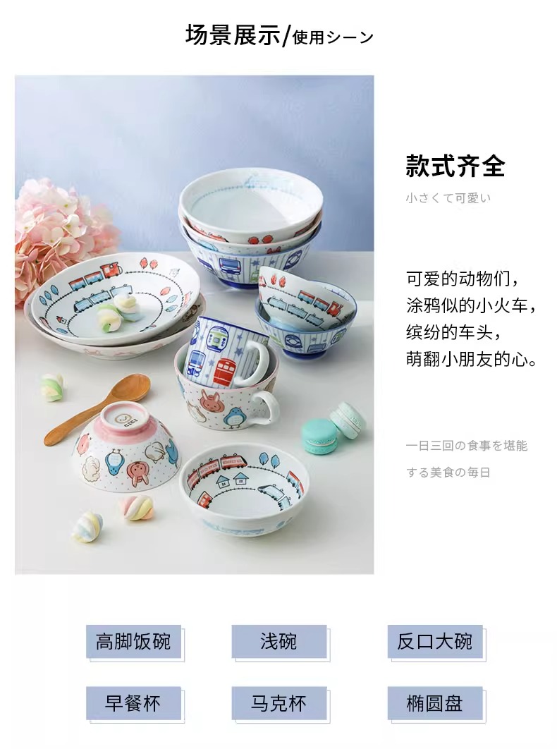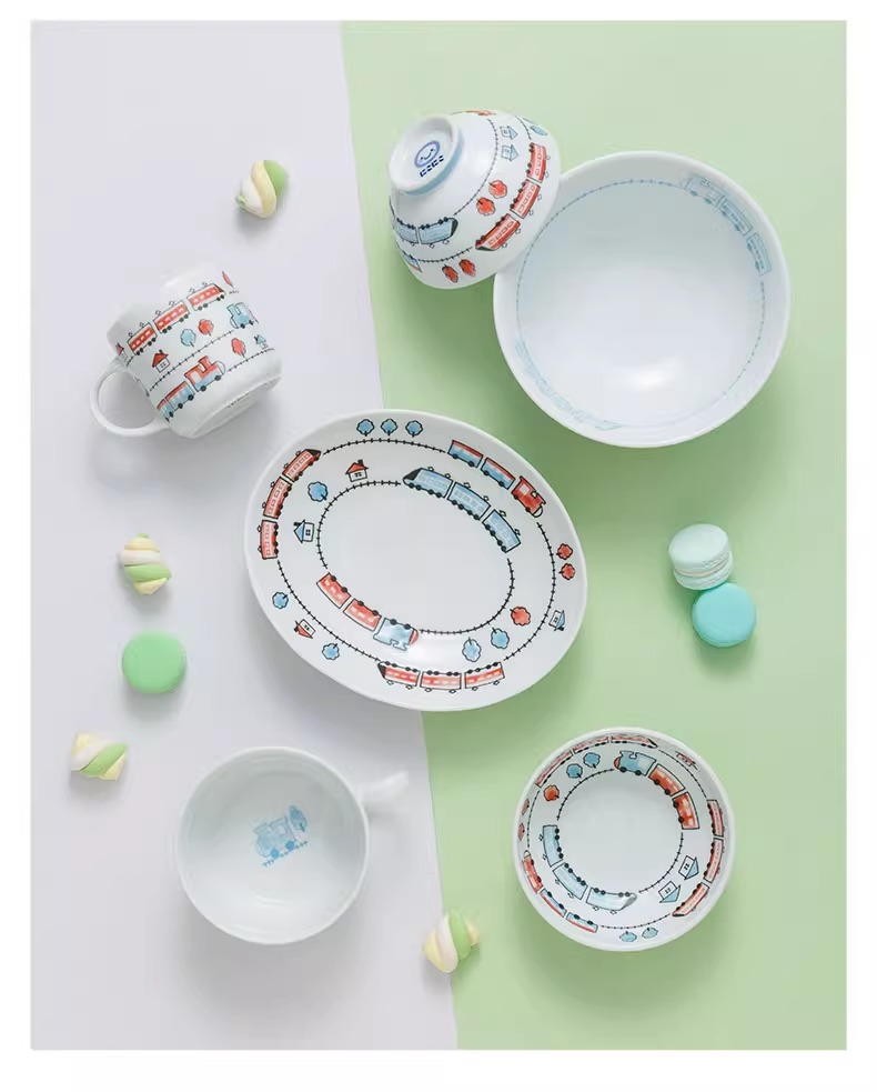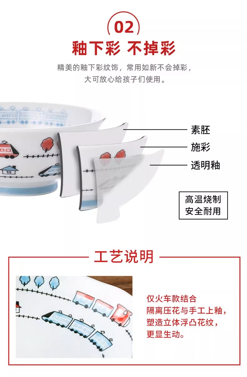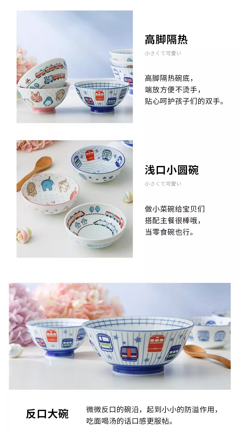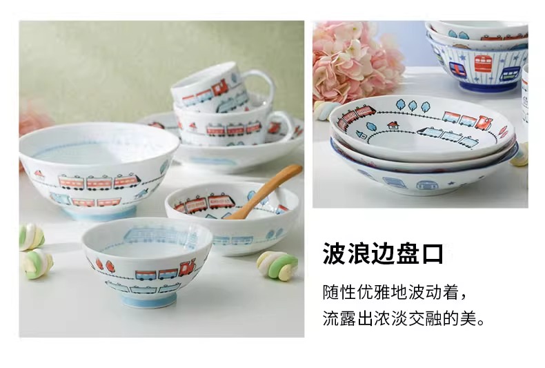 日本进口卡通儿童碗陶瓷饭碗家用宝宝可爱小碗日式汤面碗 美浓烧火车头系列散件
