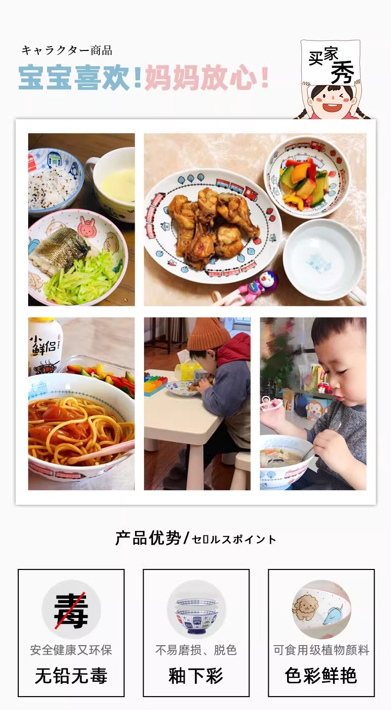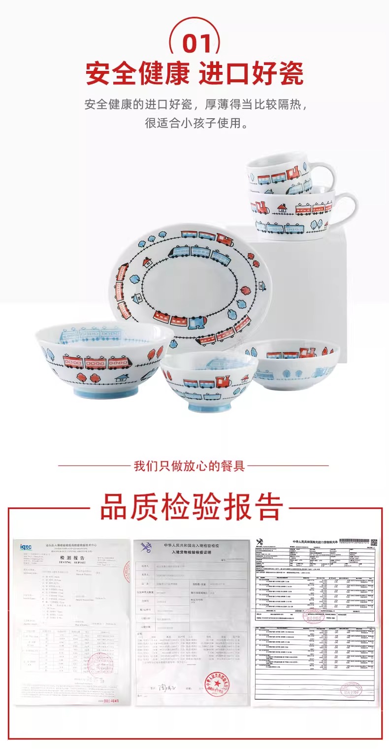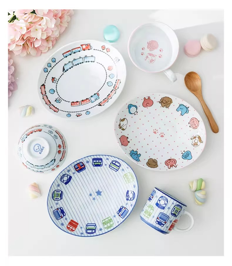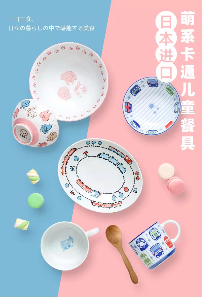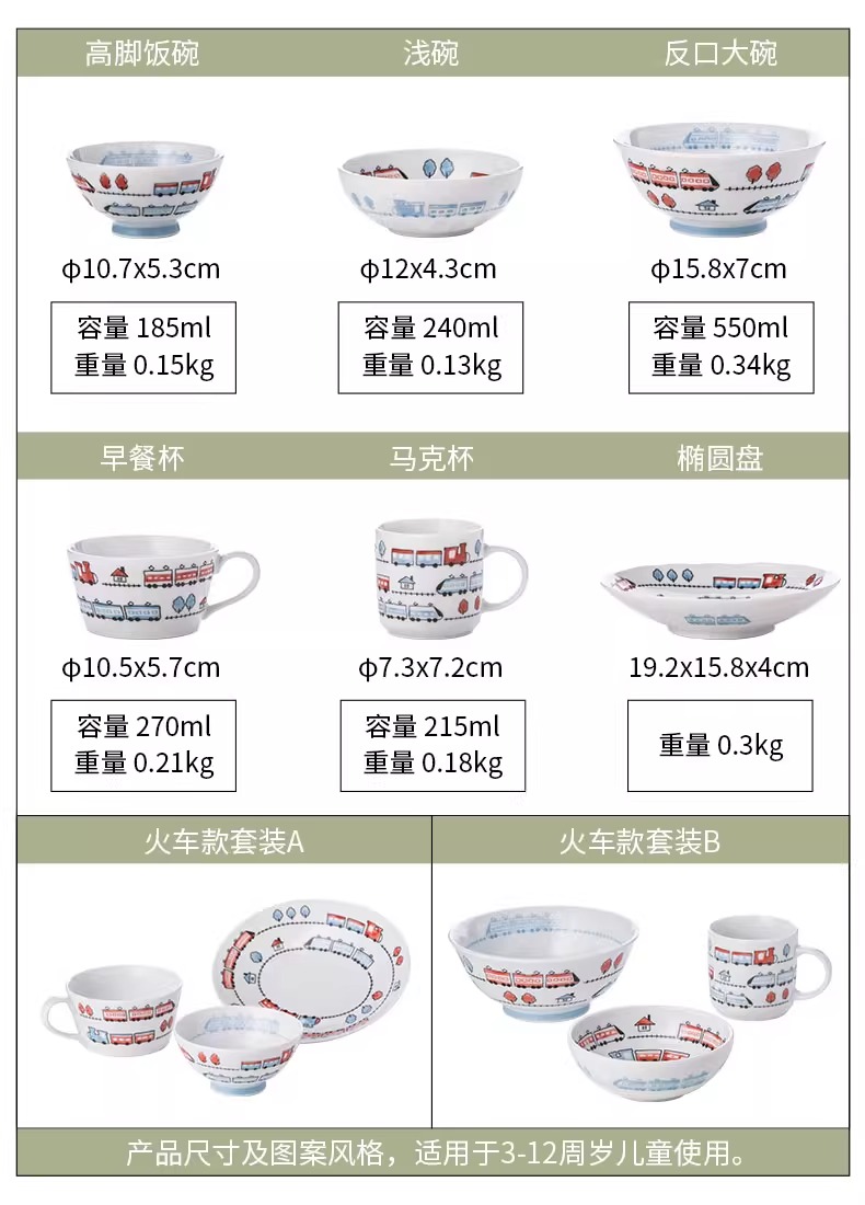 日本进口卡通儿童碗陶瓷饭碗家用宝宝可爱小碗日式汤面碗 美浓烧火车头系列散件