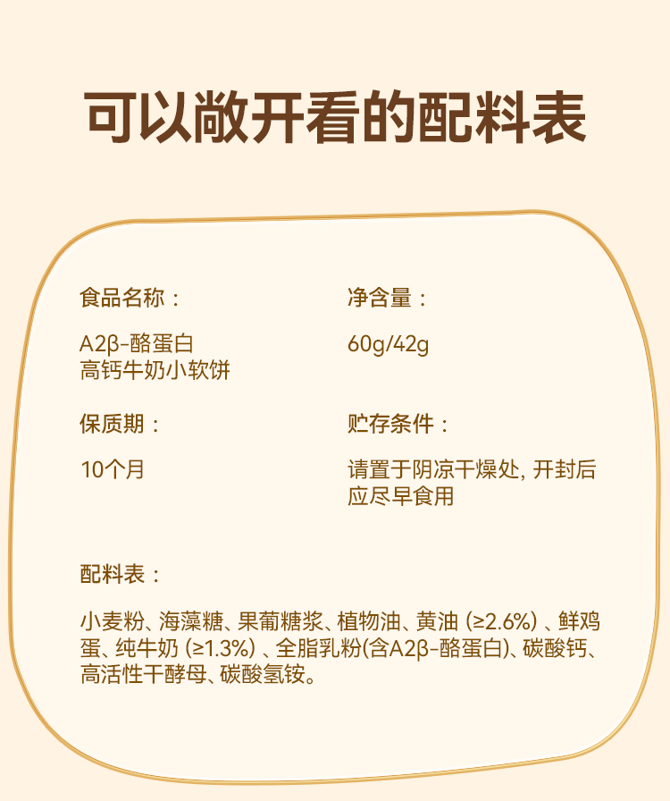 【99元任选7件】A2β-酪蛋白高钙牛奶小软饼60g,叠加店铺满赠,不叠加店铺满减和会员折扣
