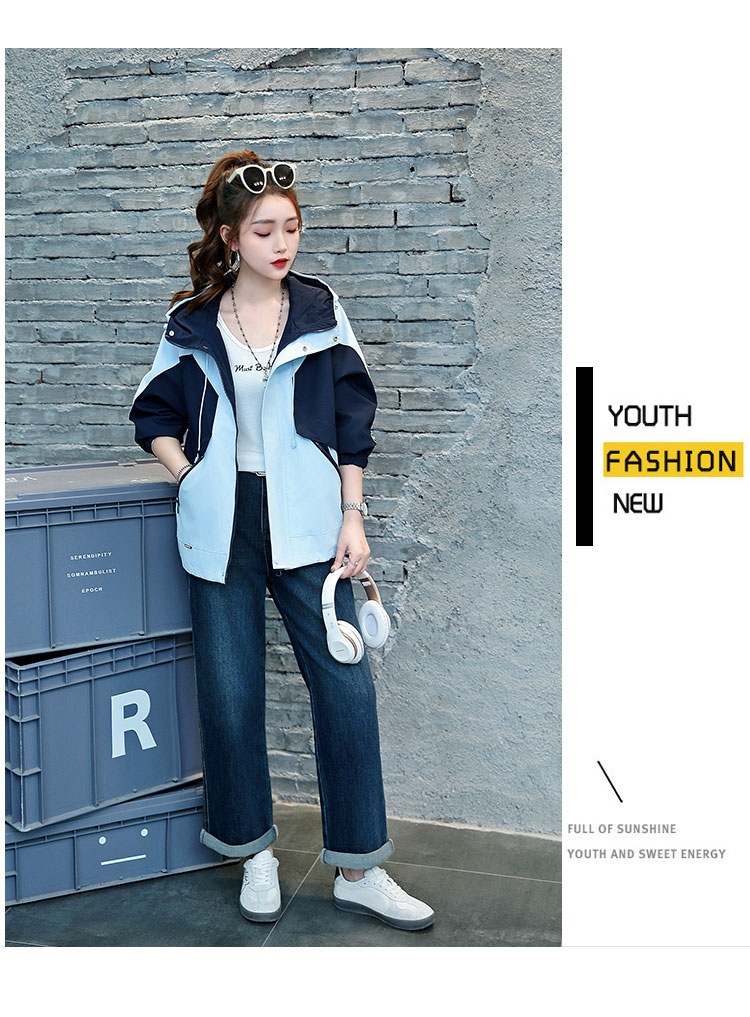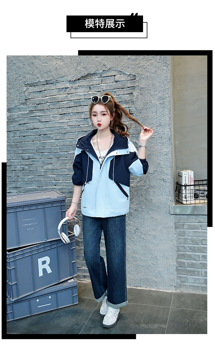 半身缘女装 春季拼色防风防水户外连帽夹克261113P01340002