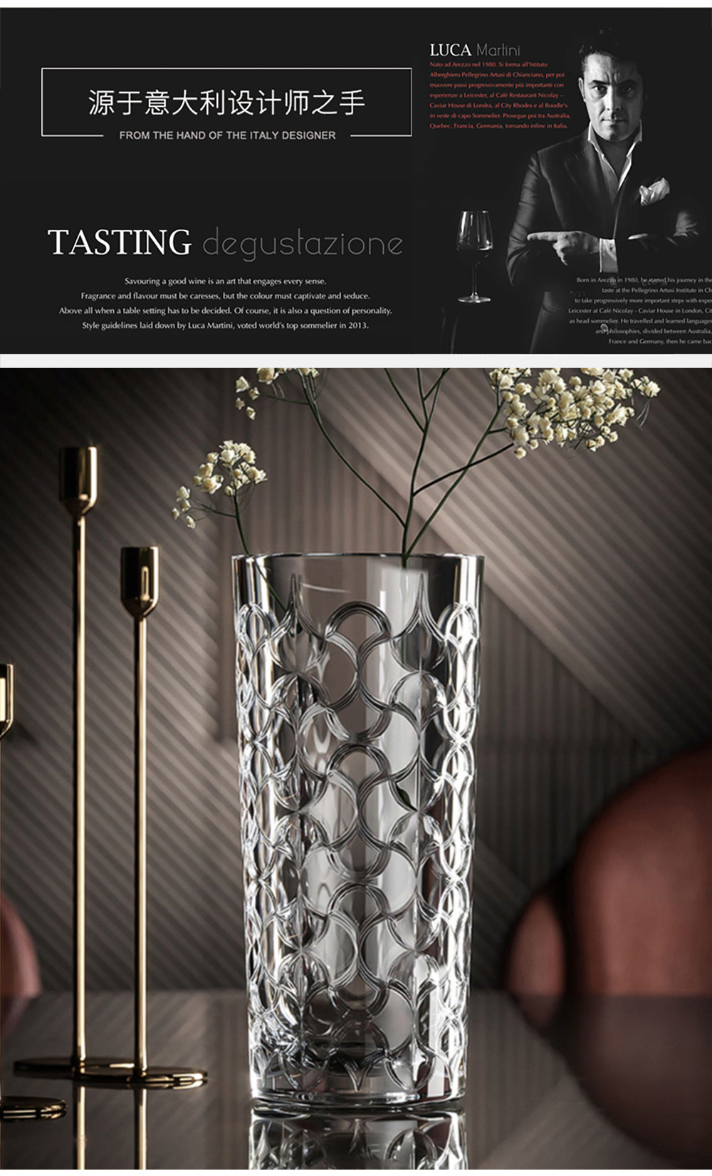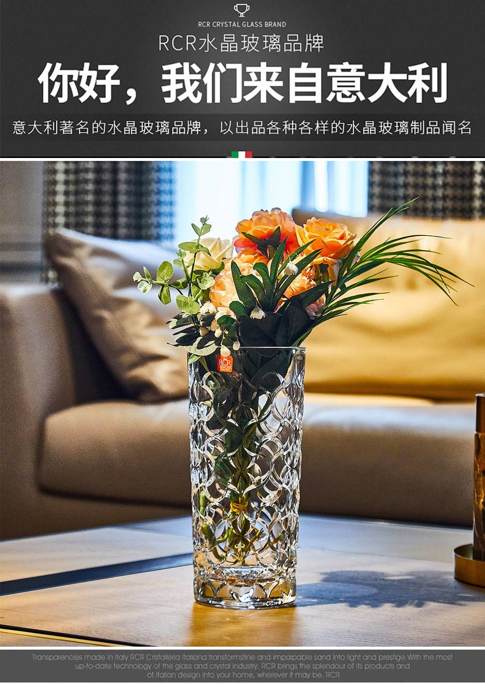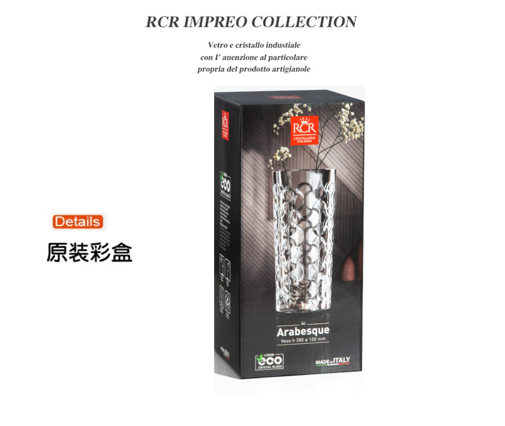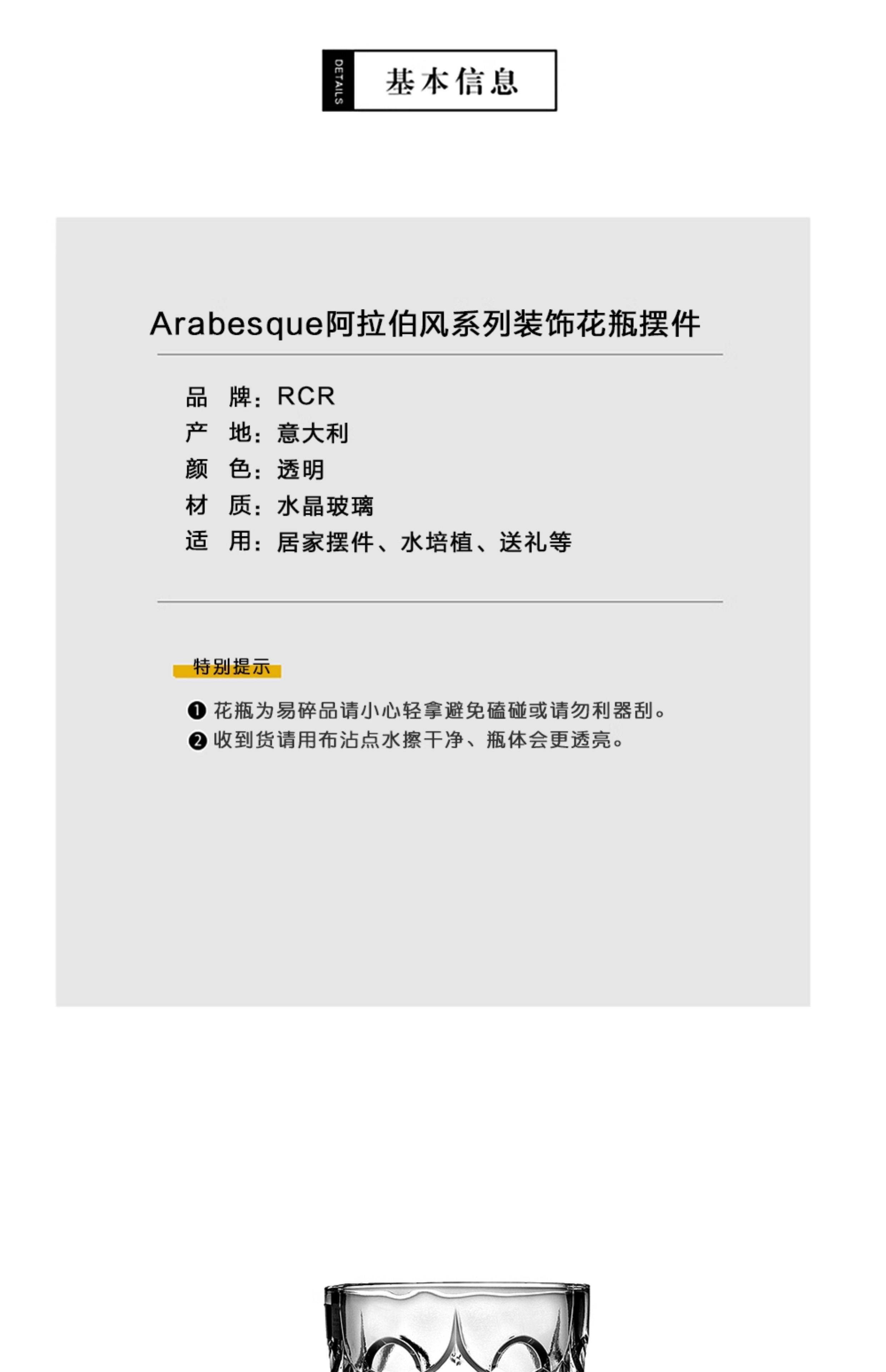 意大利进口RCR水晶玻璃花瓶富贵竹装饰创意北欧家居饰品摆件送礼阿拉伯风晶质花瓶28cm