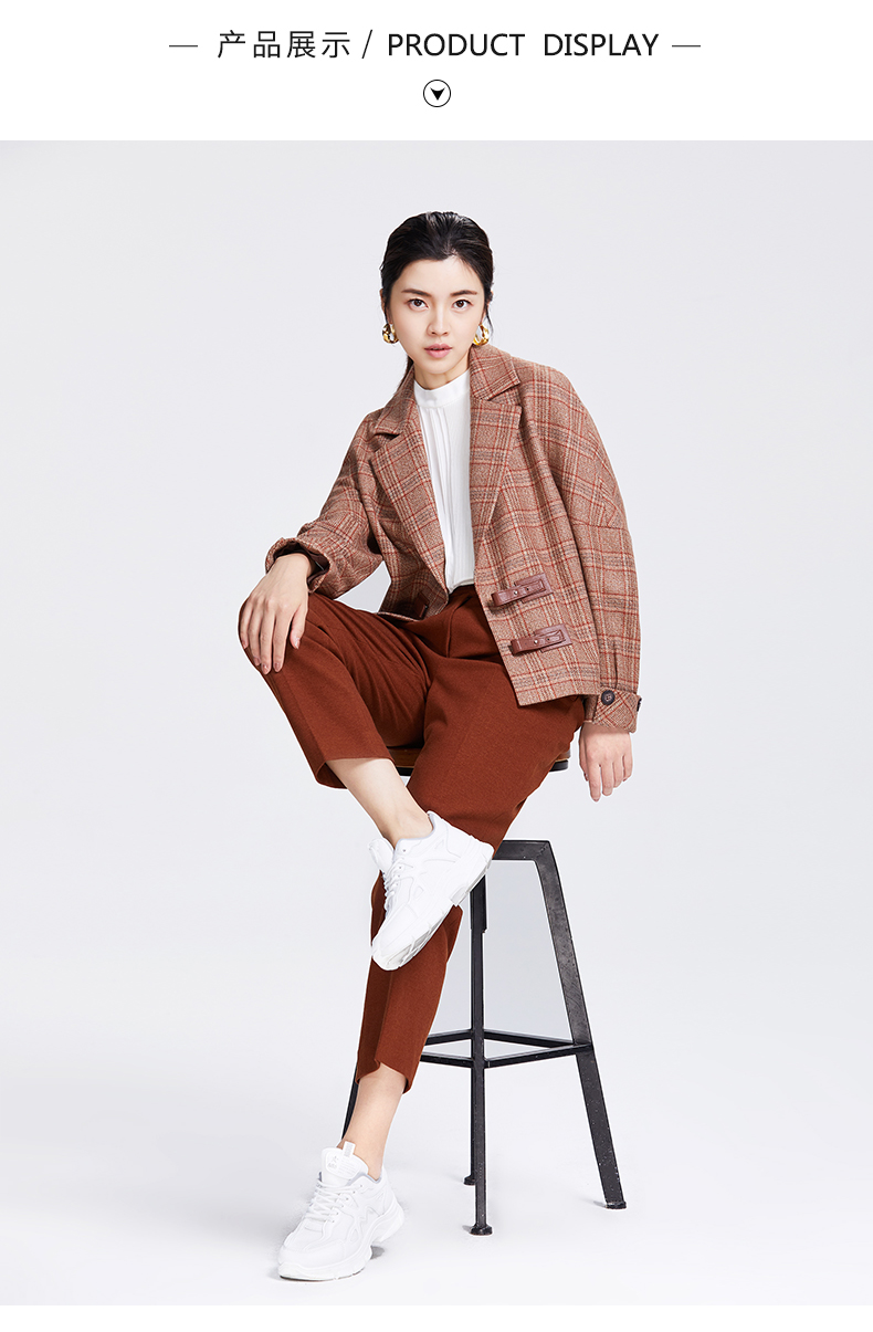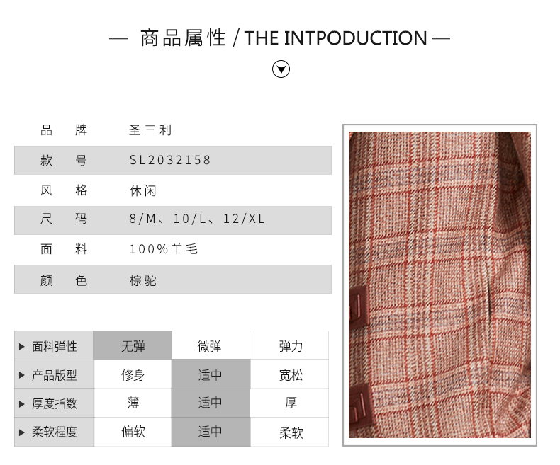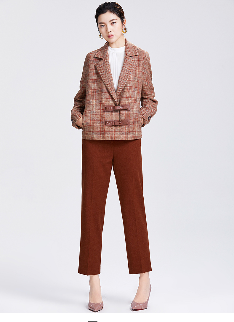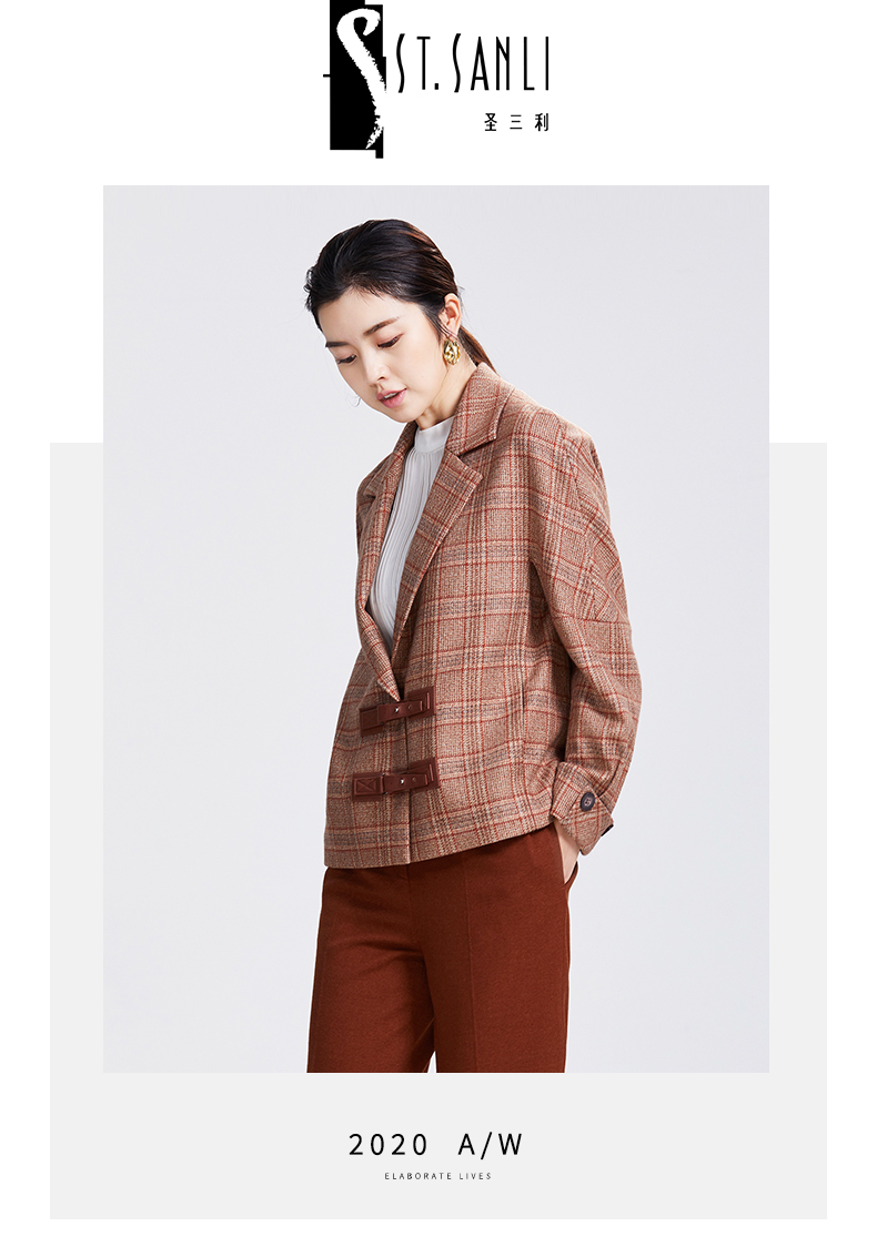圣三利女装新优雅格子羊毛外套SL2032158