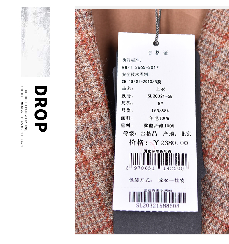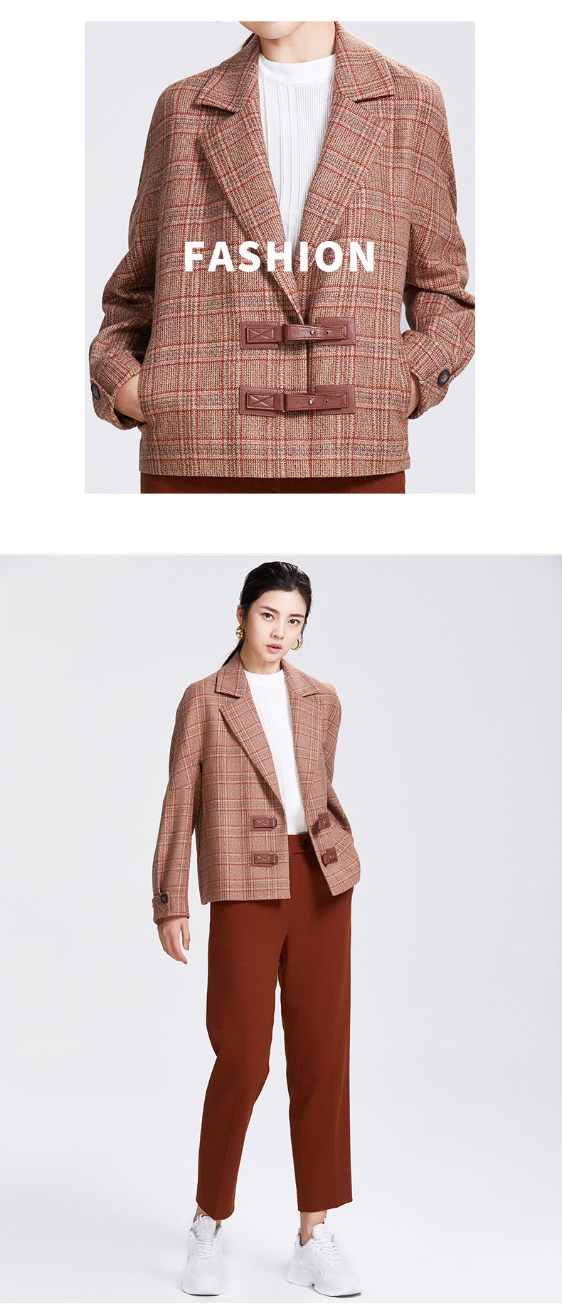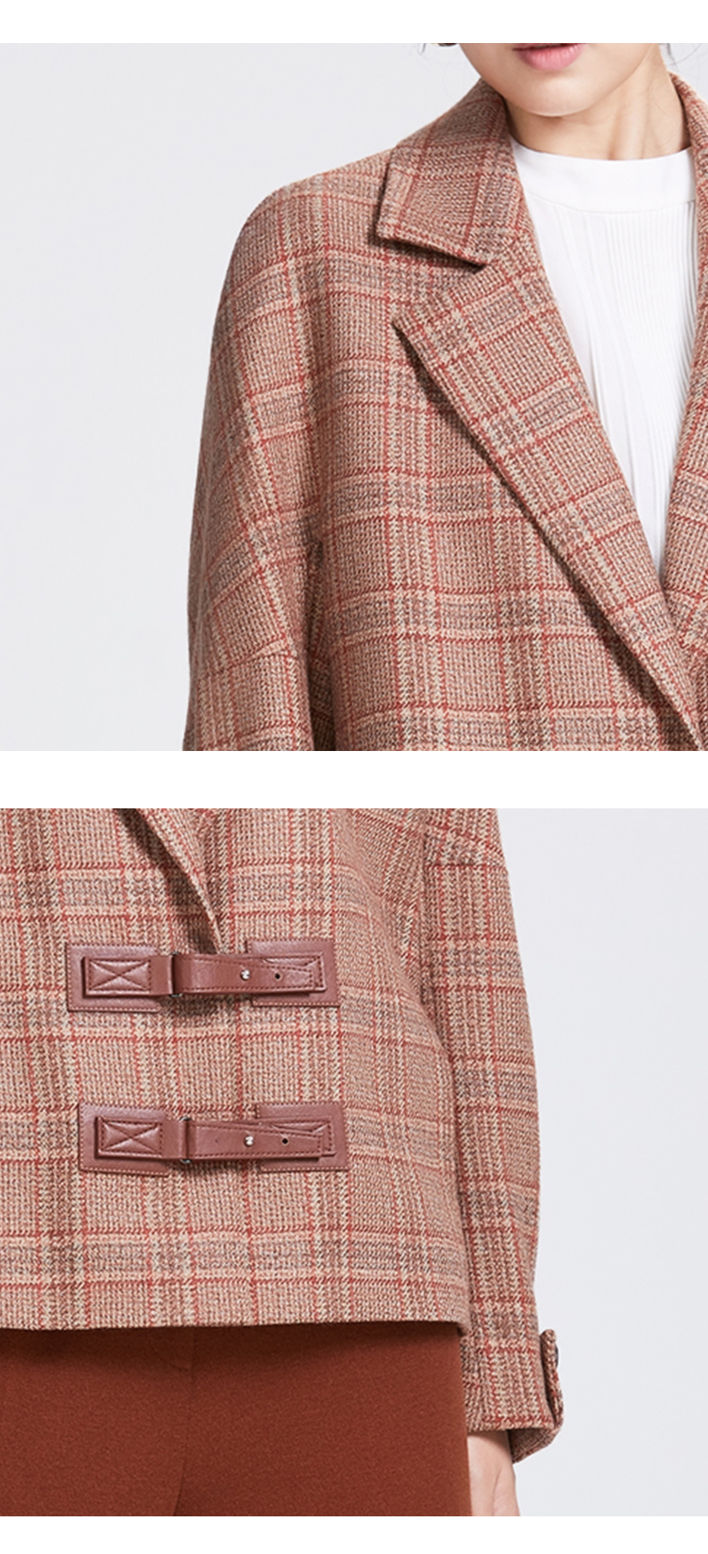 圣三利女装新优雅格子羊毛外套SL2032158