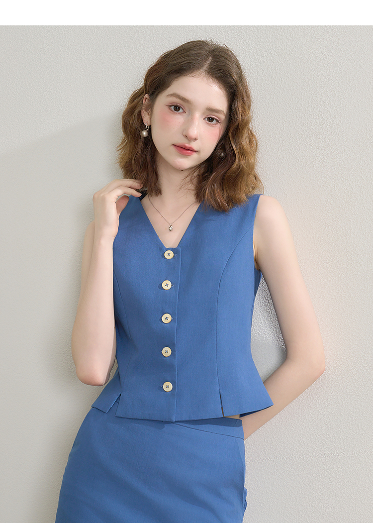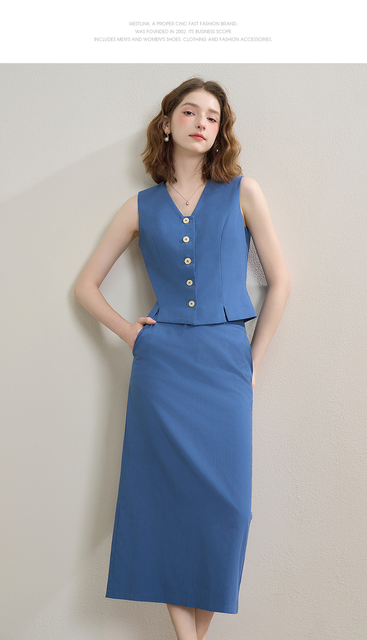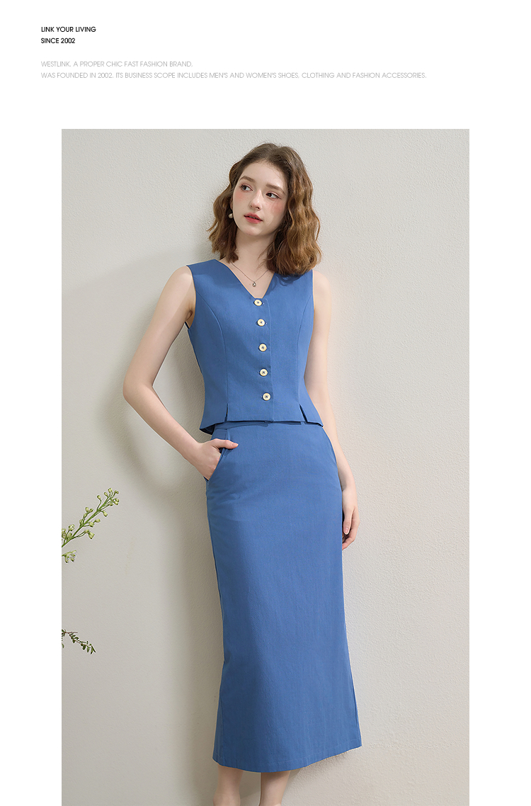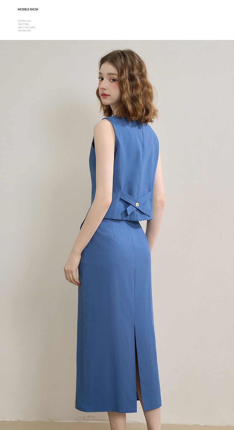 【克莱因蓝】高级感套装女夏季马甲搭开叉包臀裙两件套LXD51046