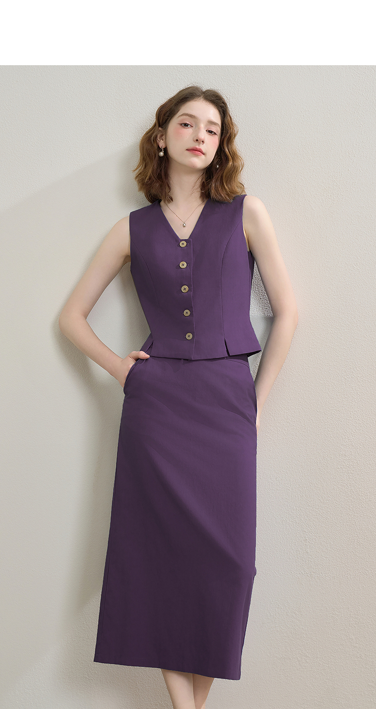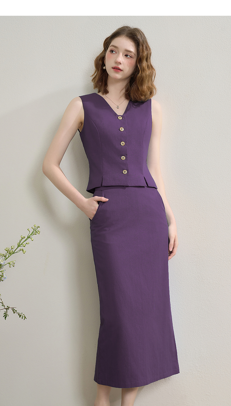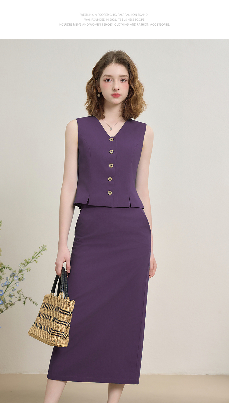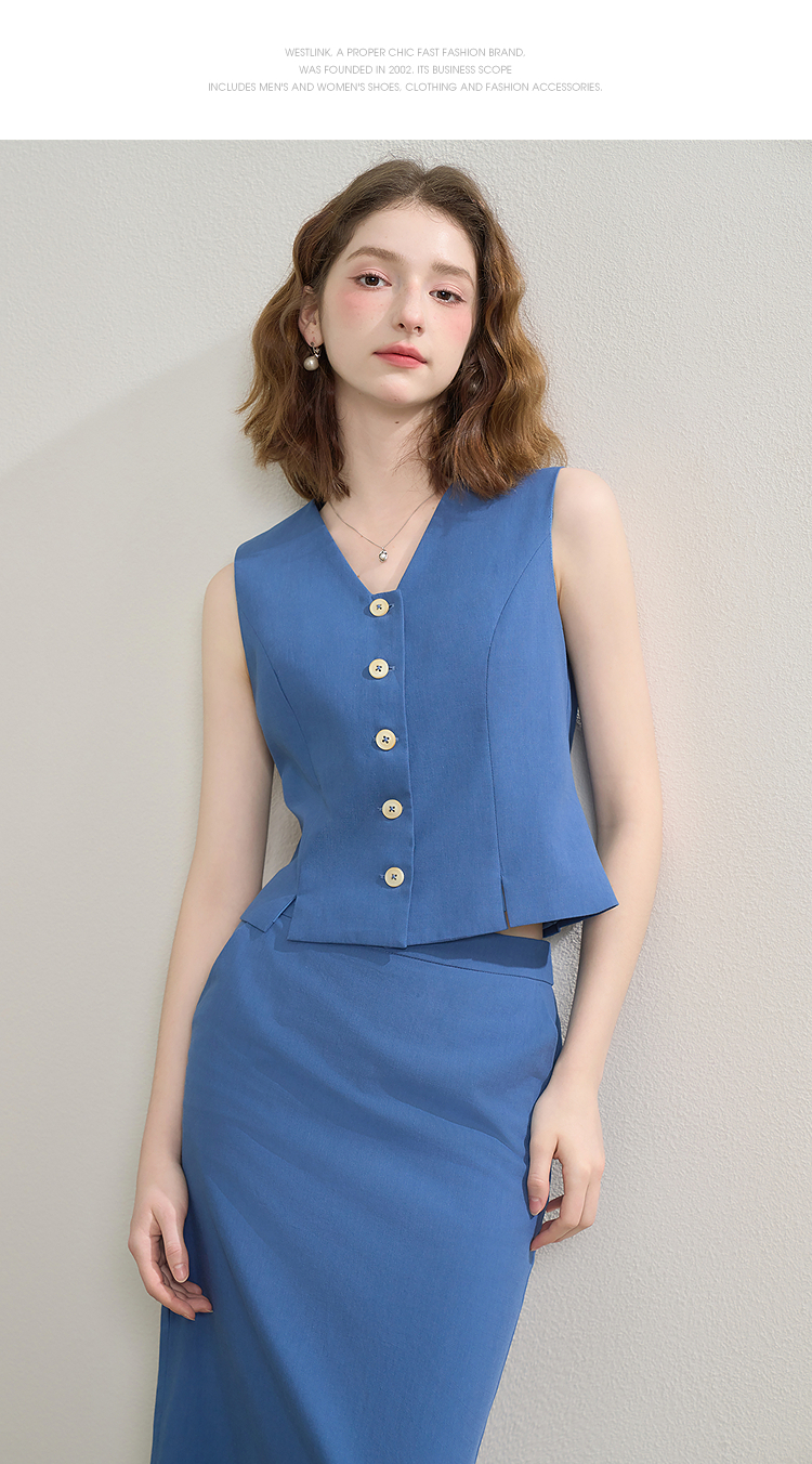【克莱因蓝】高级感套装女夏季马甲搭开叉包臀裙两件套LXD51046