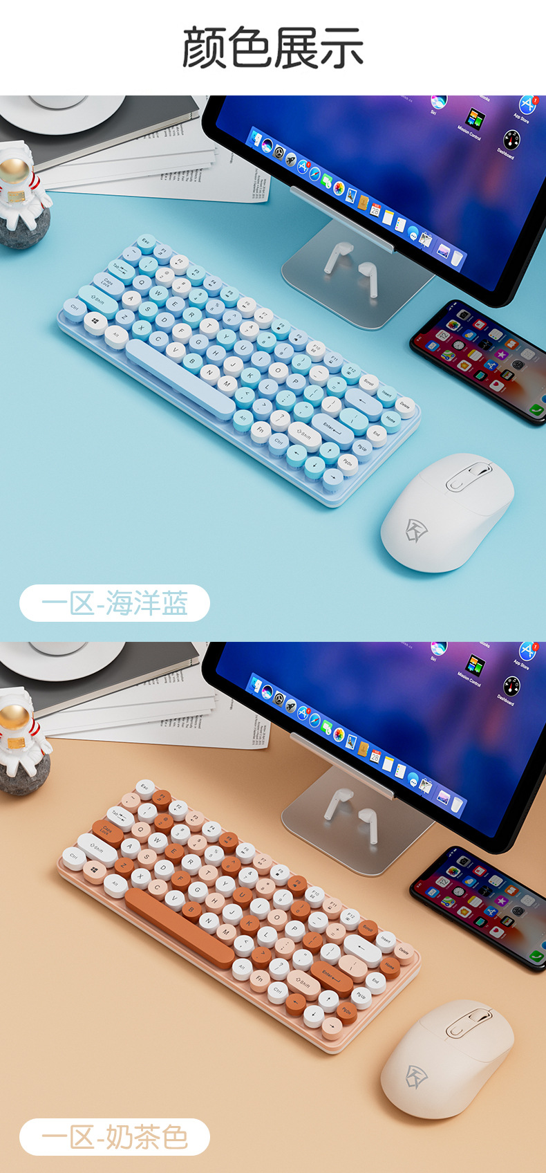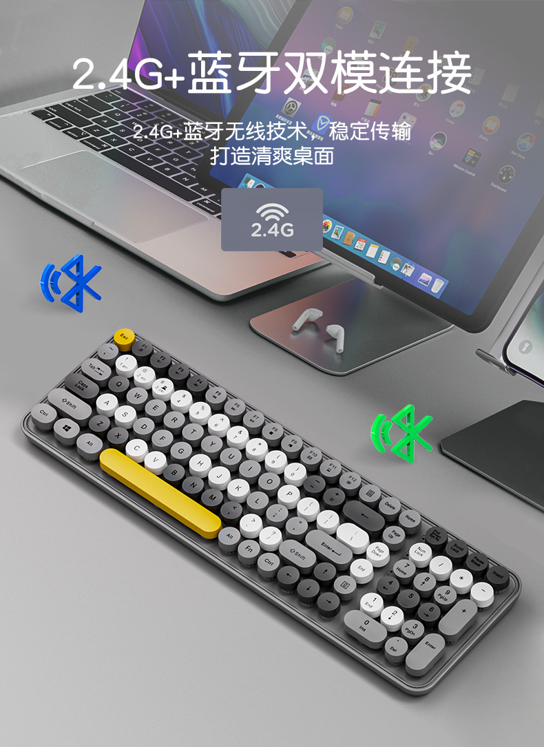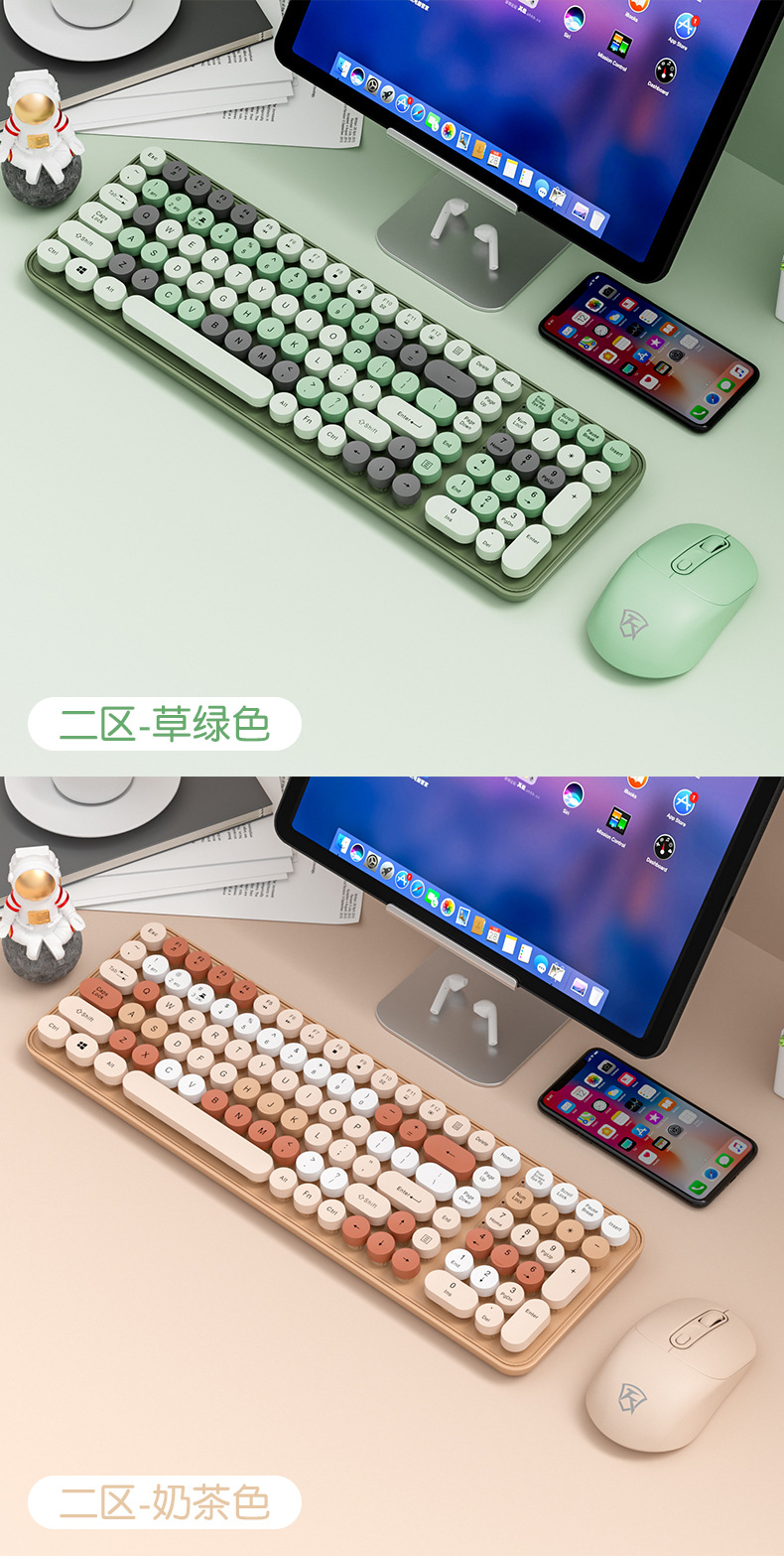 无线键盘 高颜值奶茶系键鼠套装💻,静音机械手感+蓝牙三模,办公娱乐两不误✨」