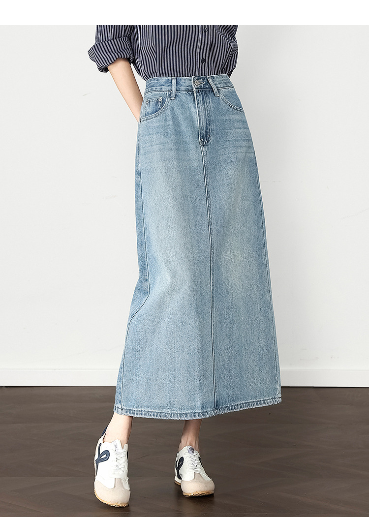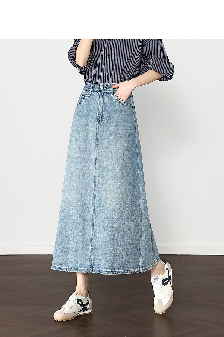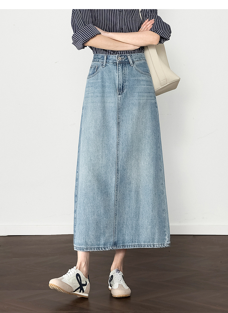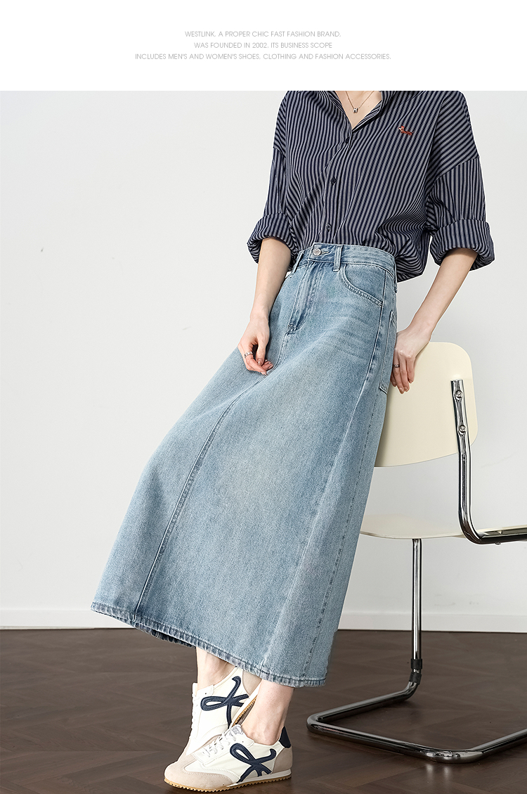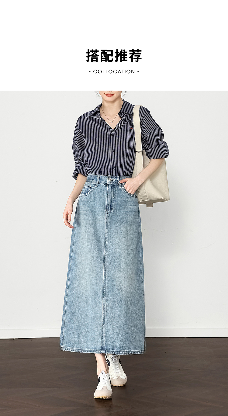 西遇水洗牛仔半身裙女新款浅蓝色小个子a字高腰长裙D0050443