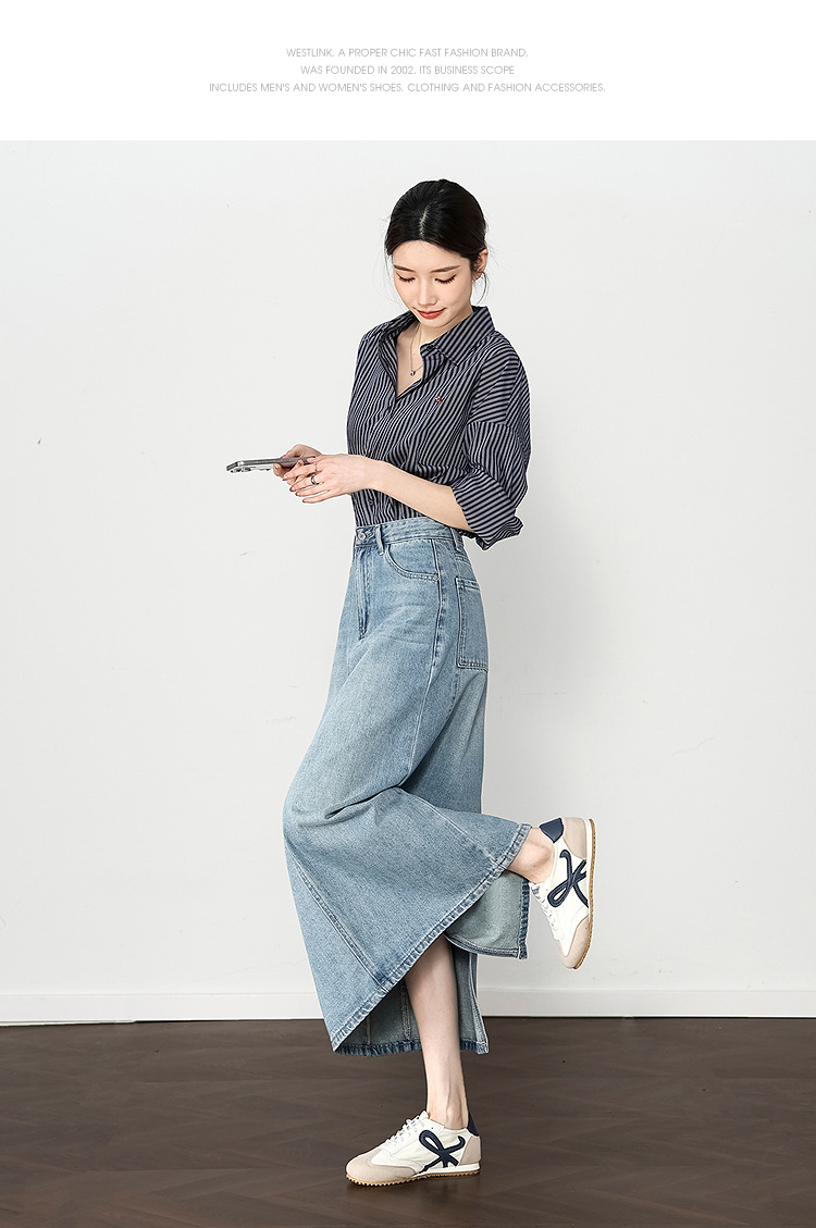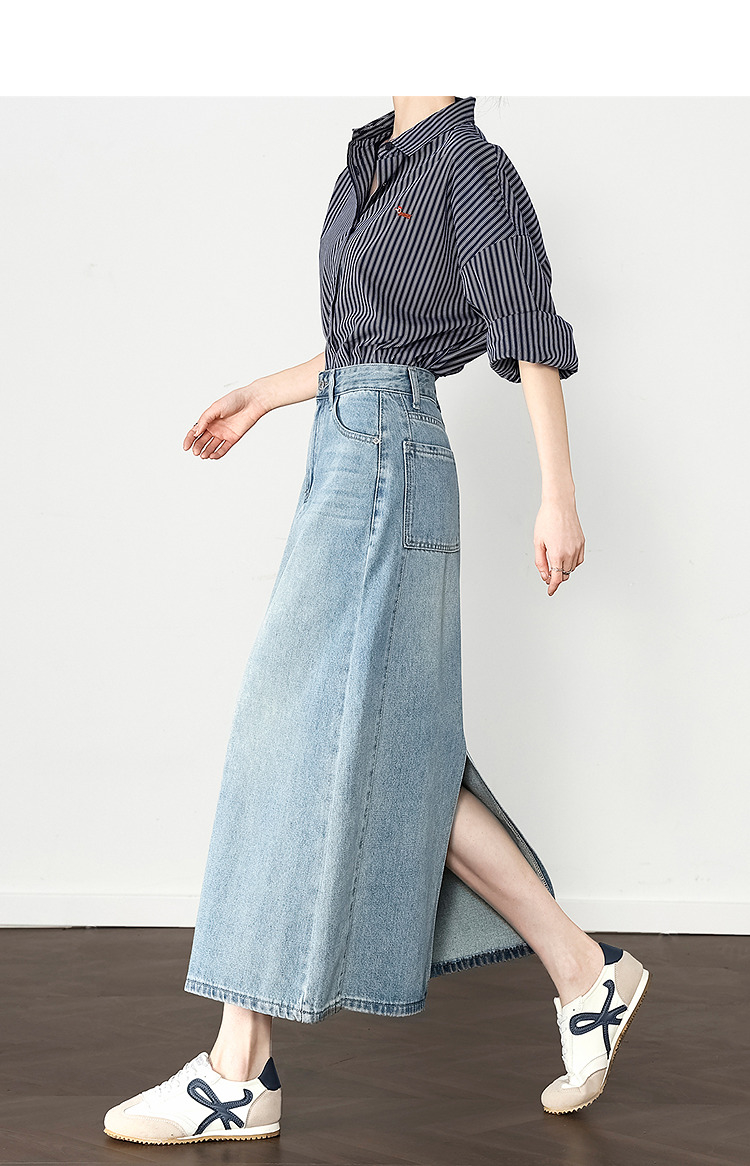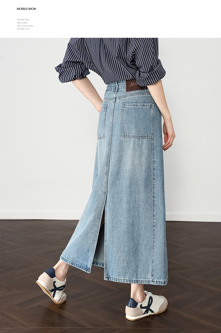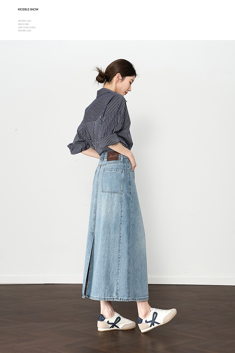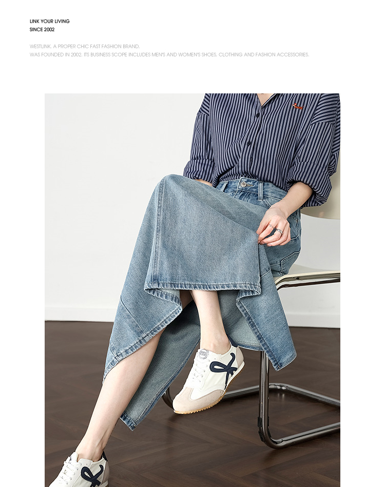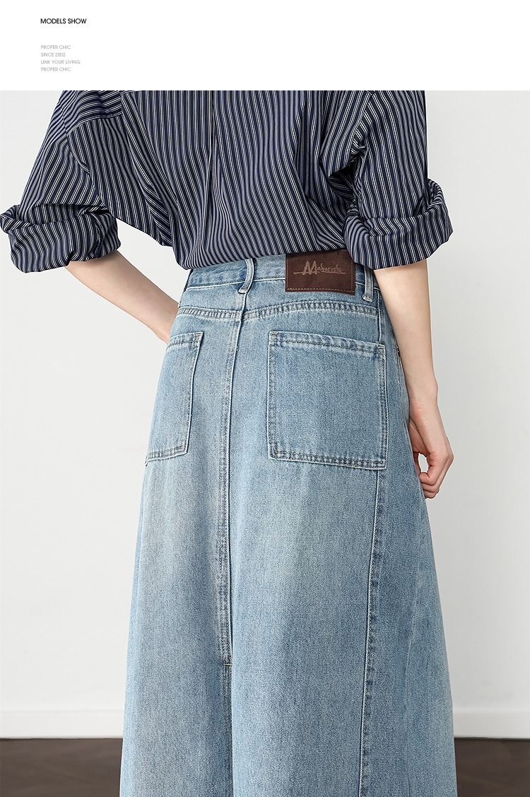 西遇水洗牛仔半身裙女新款浅蓝色小个子a字高腰长裙D0050443