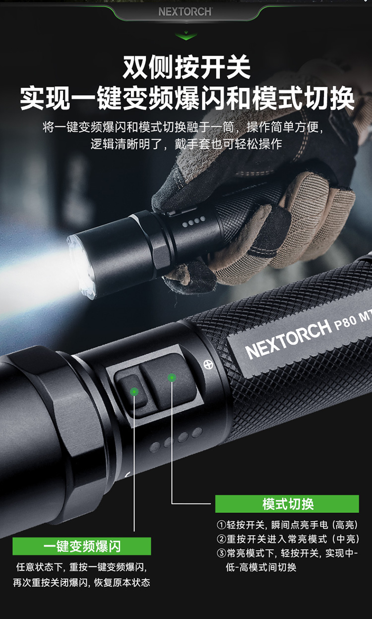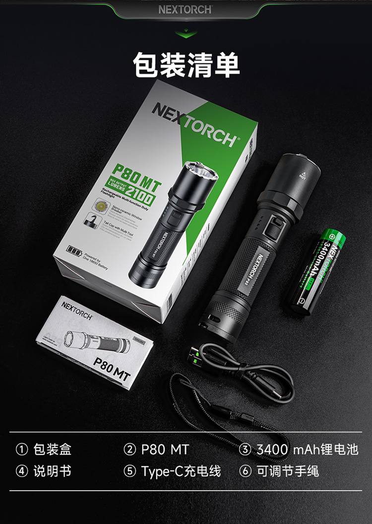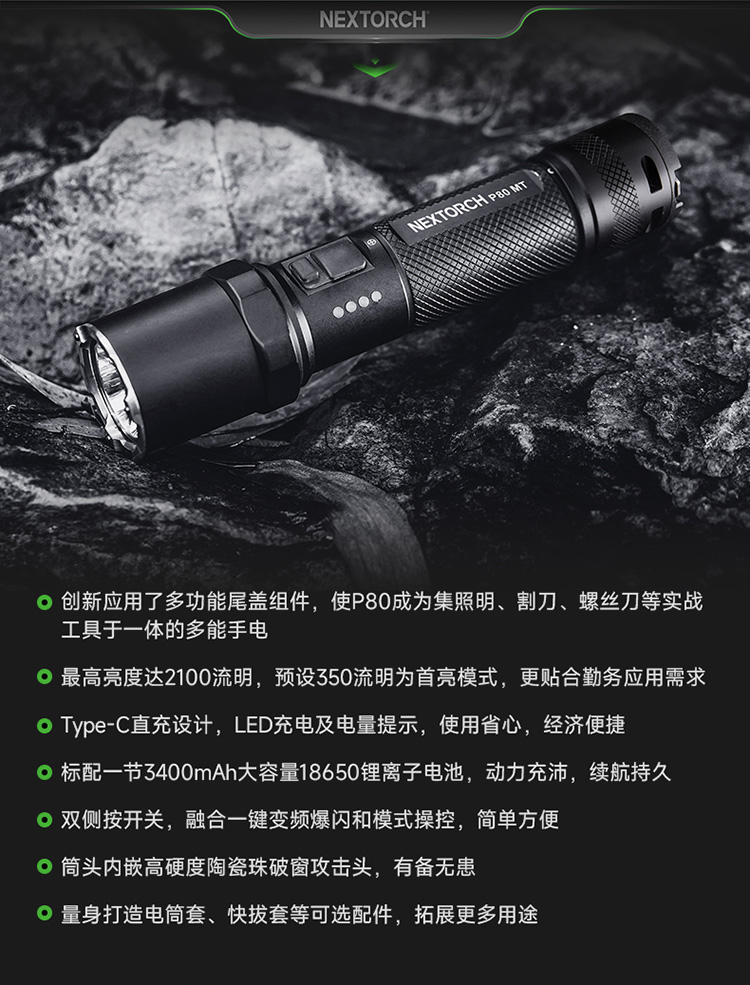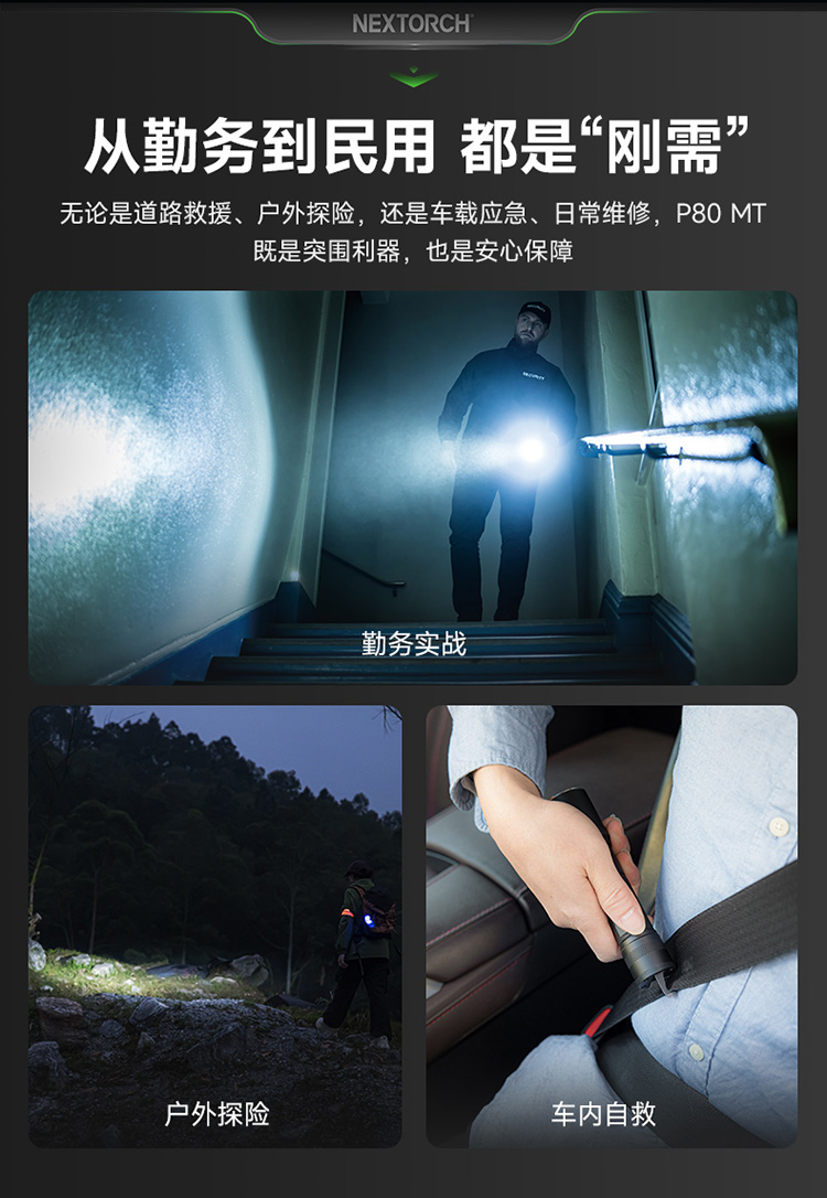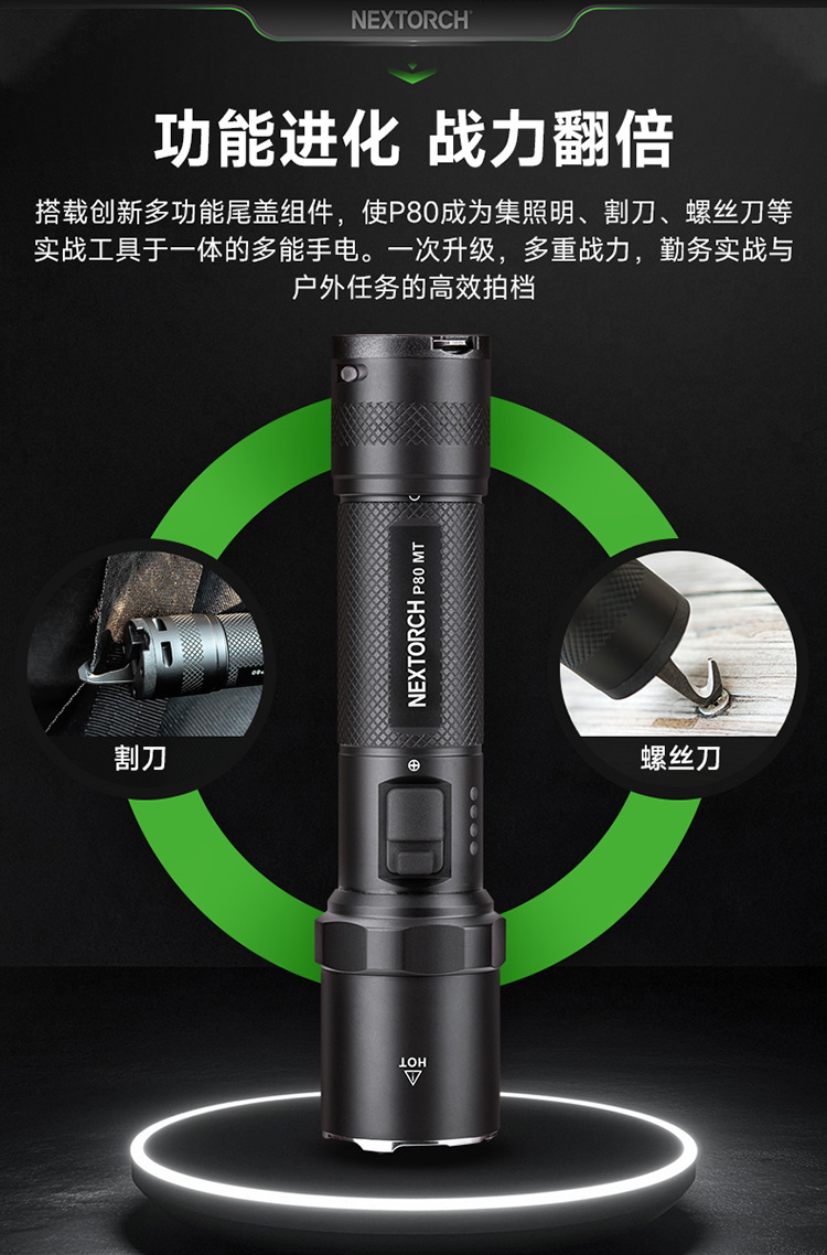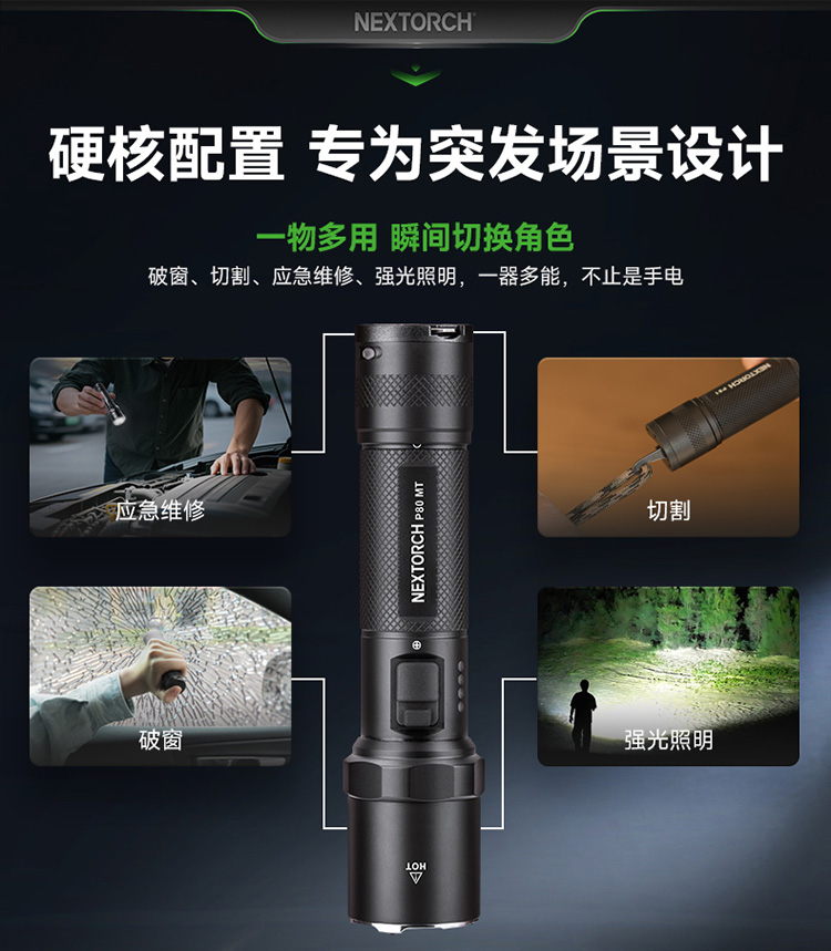 【新品】P80MT勾刀尾盖手电勤务车载割安全带破窗应急逃生手电筒