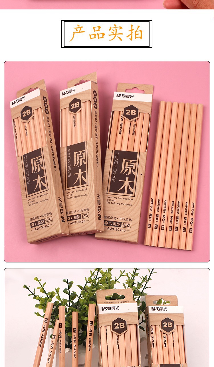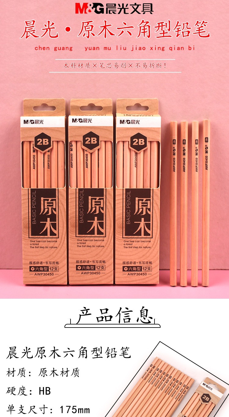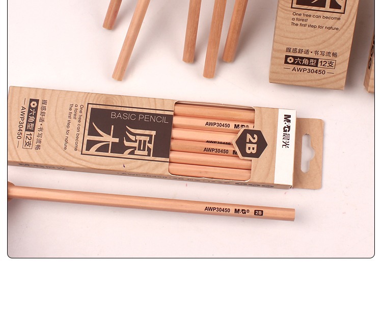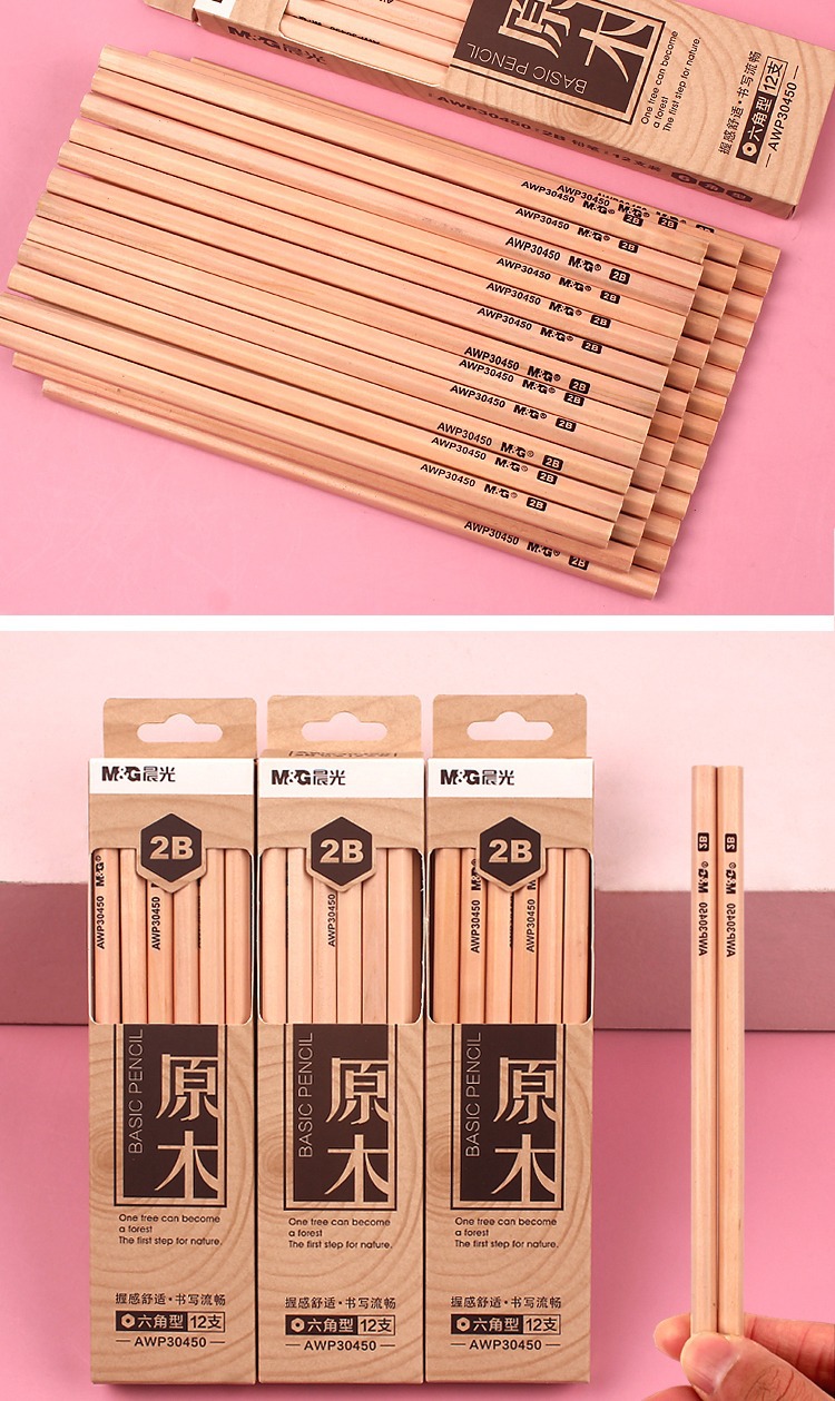 【12支】晨光AWP30450原木铅笔 学生用六角型木杆 2B写字 绘画笔 素描铅笔
