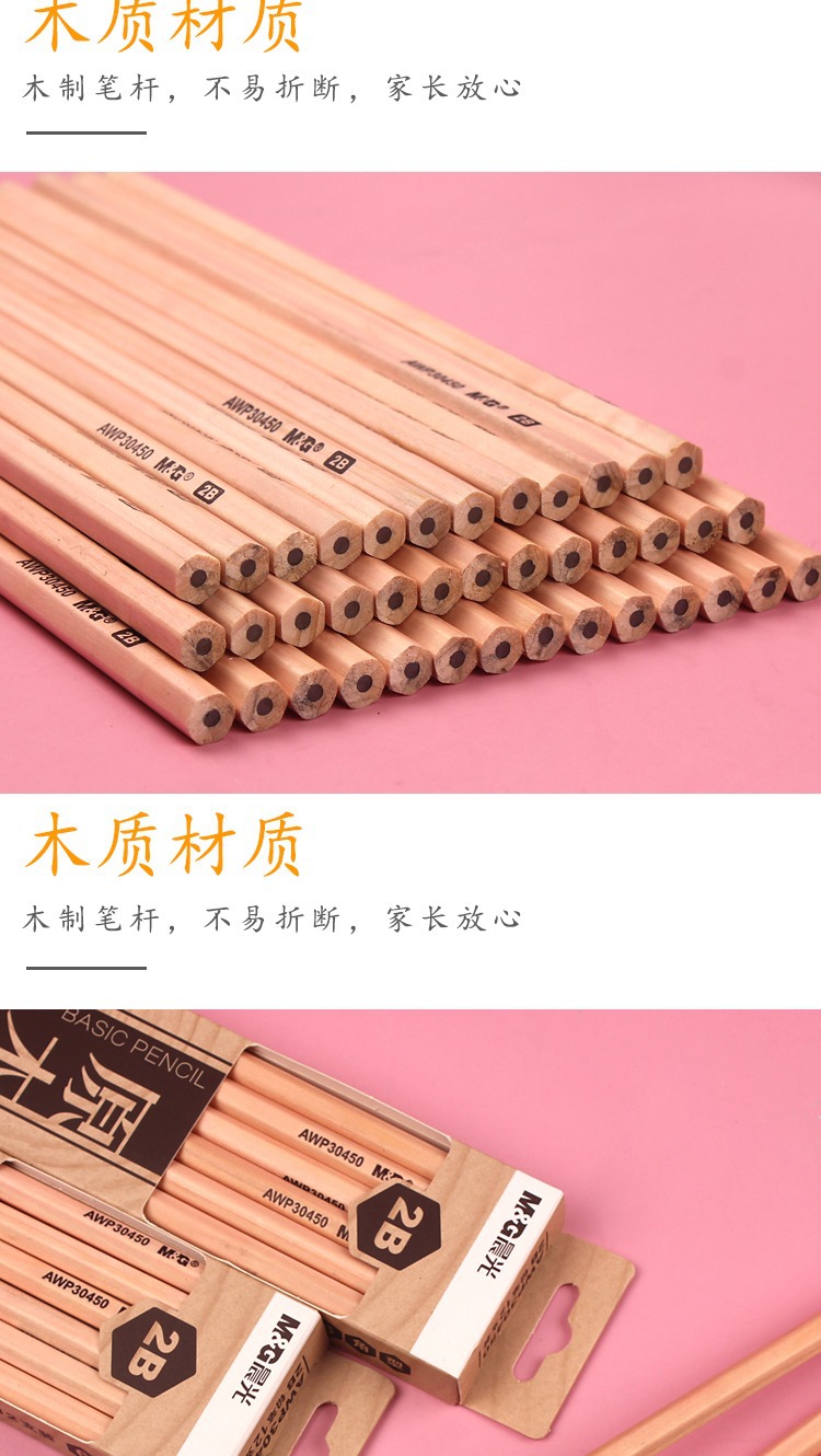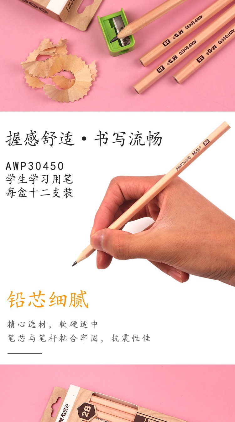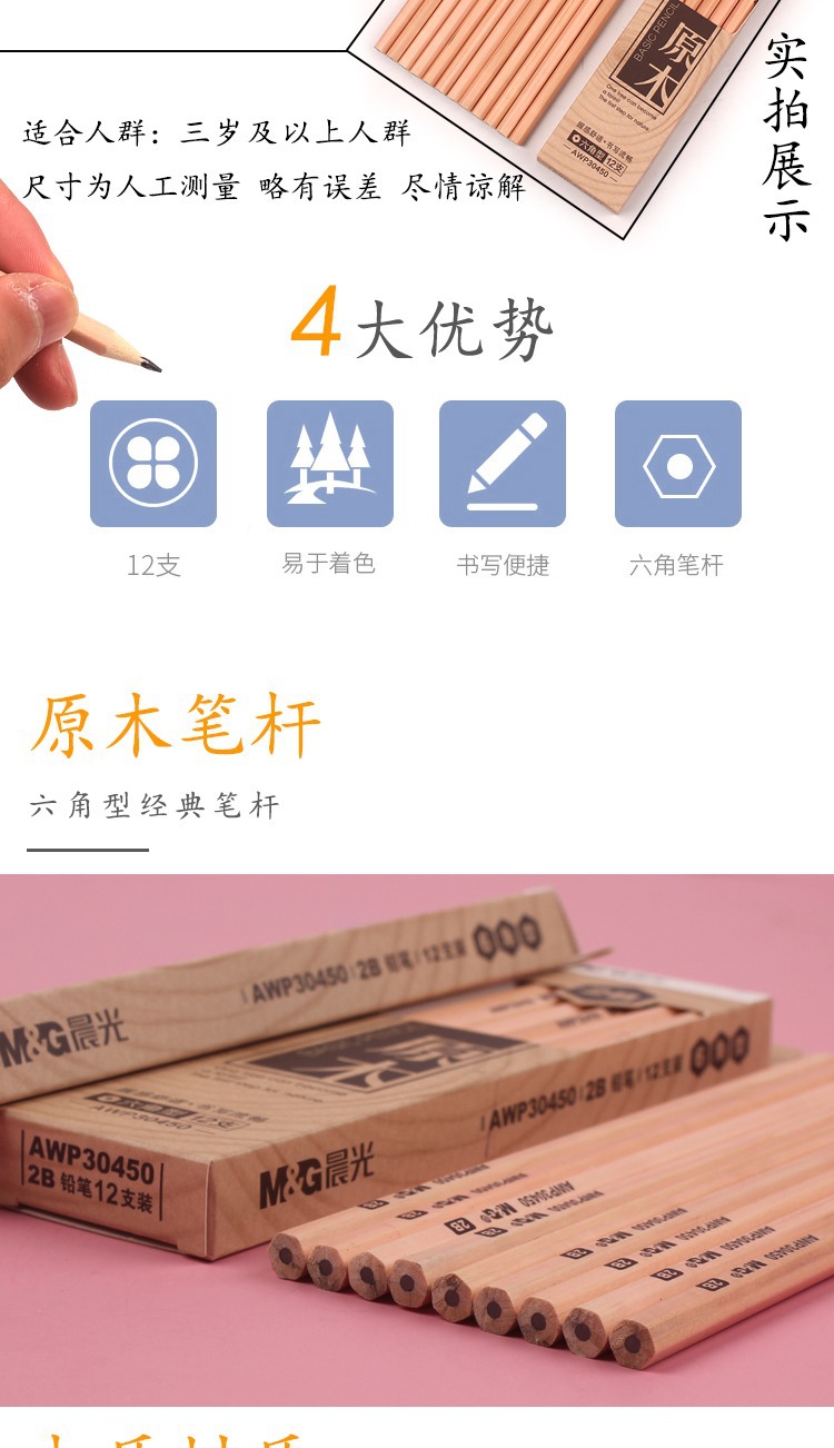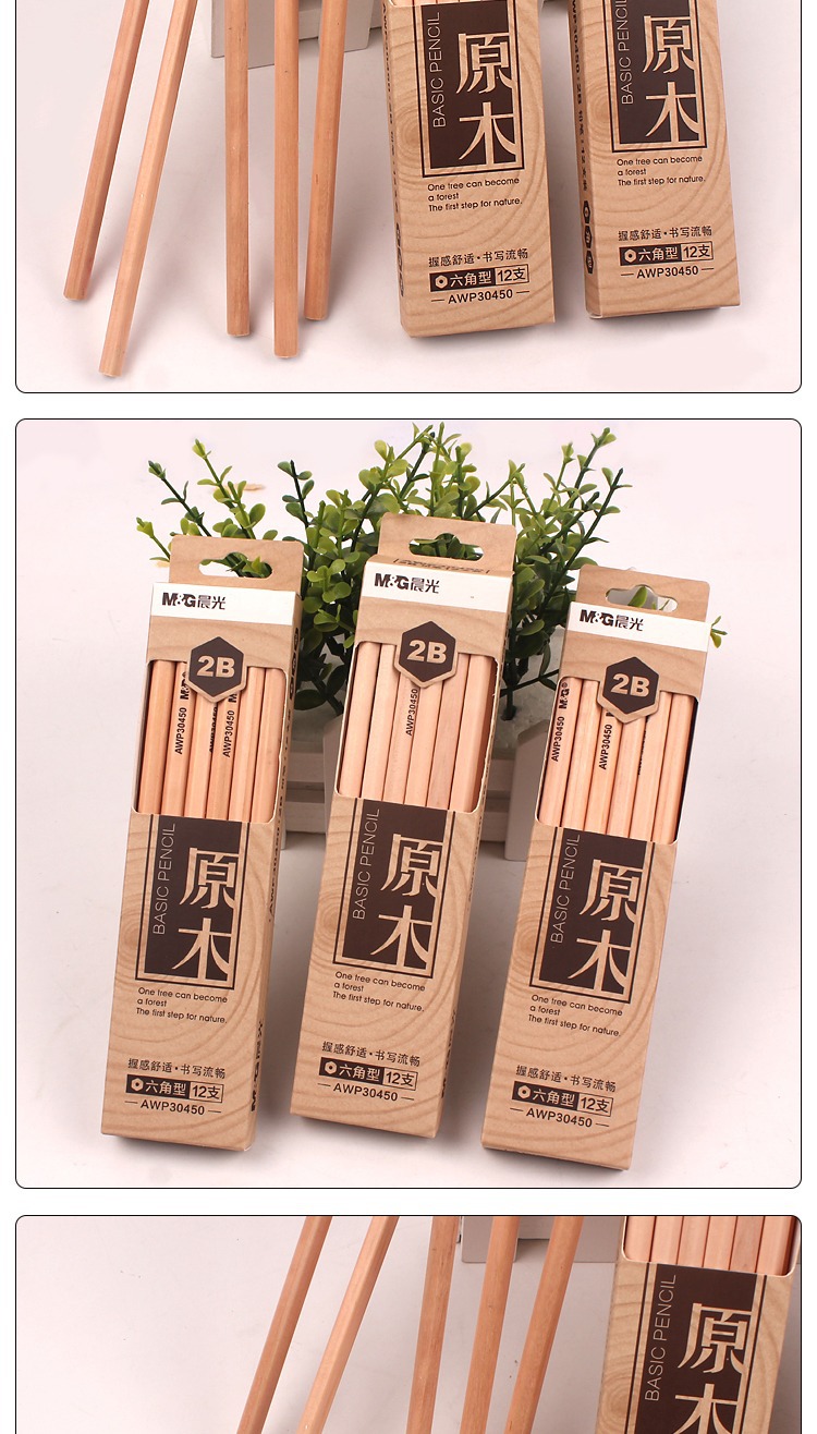 【12支】晨光AWP30450原木铅笔 学生用六角型木杆 2B写字 绘画笔 素描铅笔