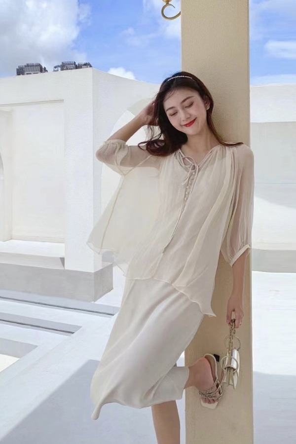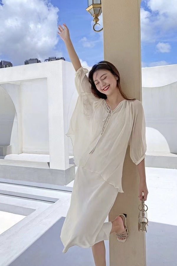 L.Fleuri 米白度假风飘逸连衣裙套装 16863
