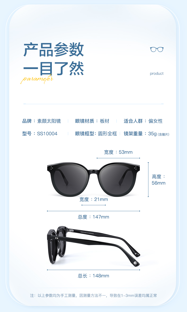【特价秒杀款】普莱斯SS10004 板材 圆形全框太阳镜