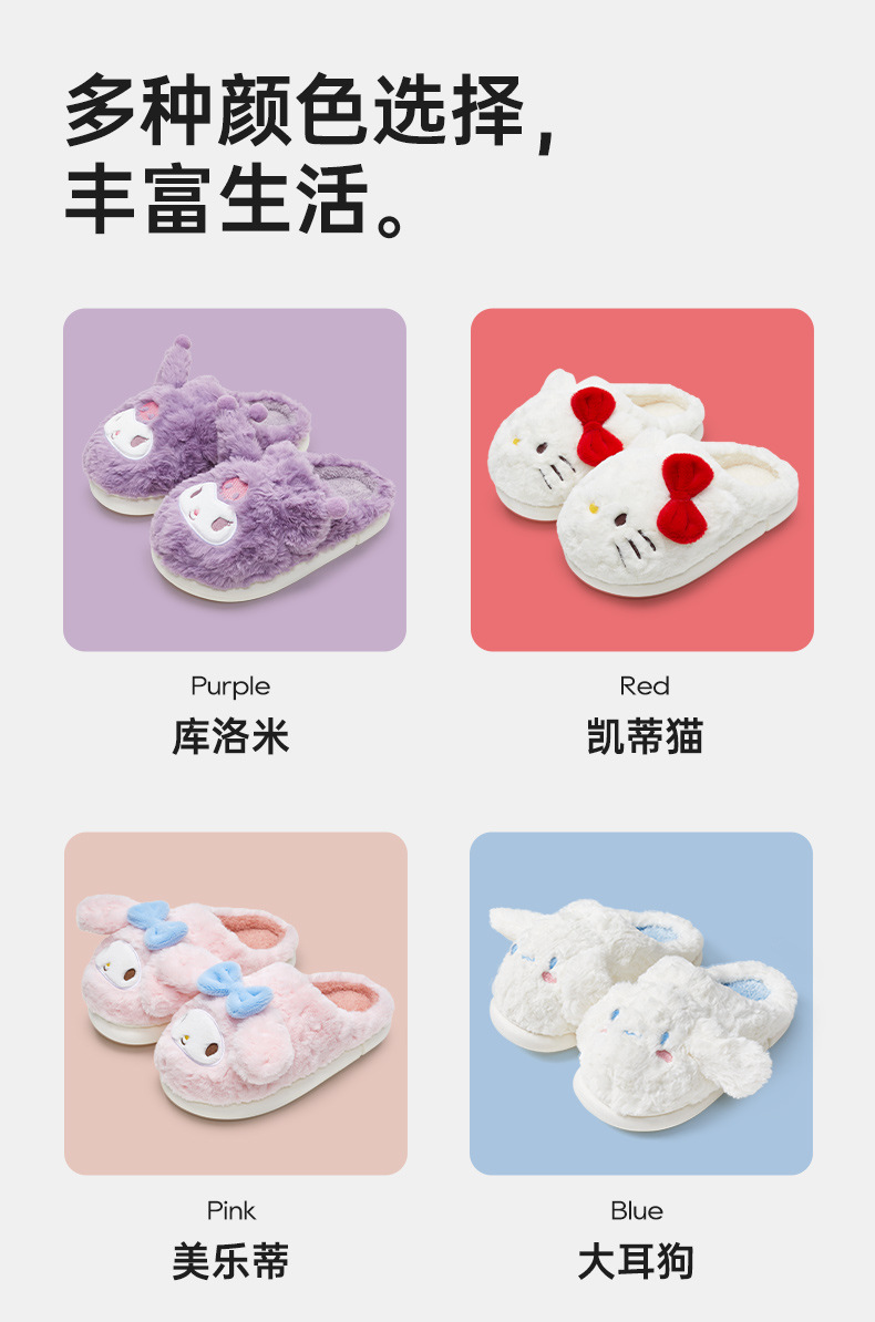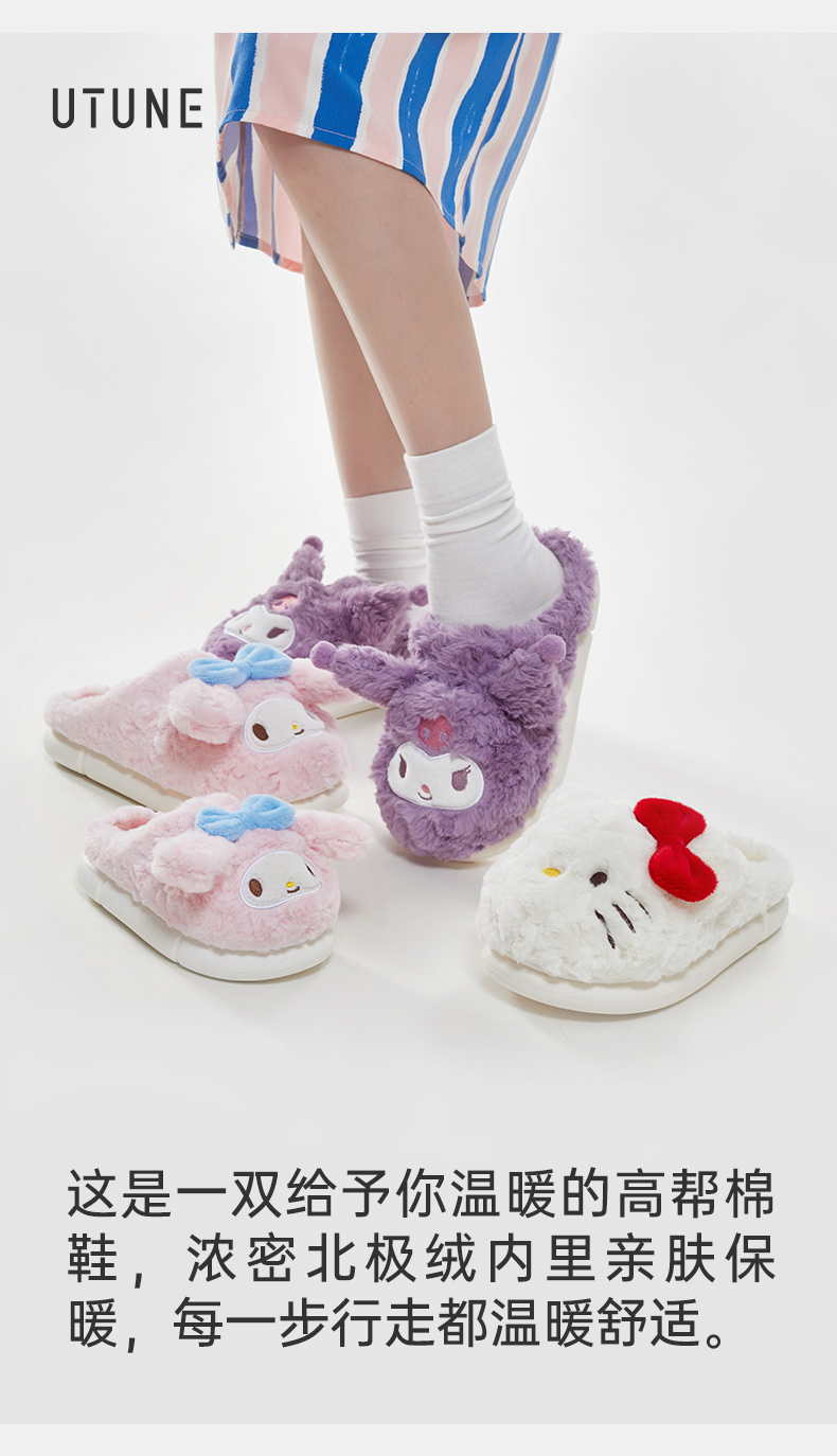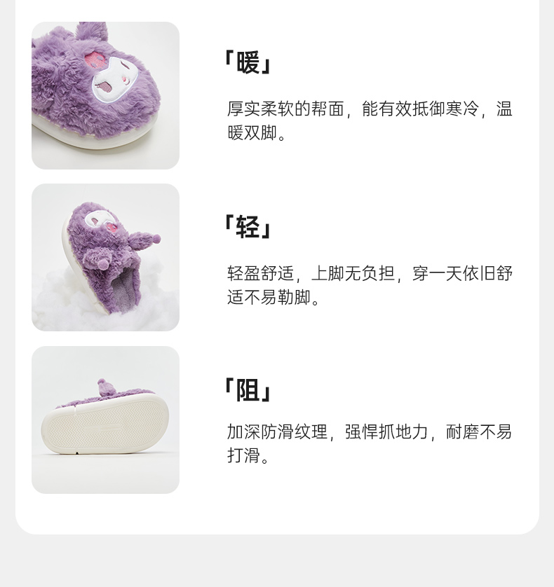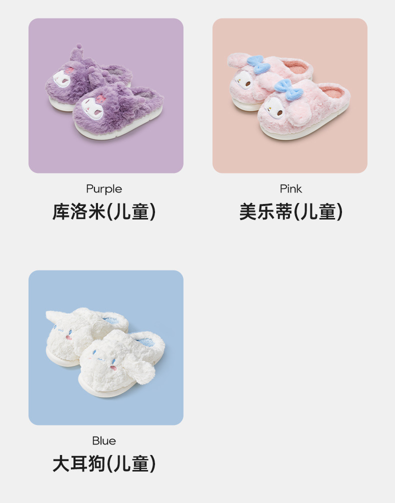 【亲子款】优调 三丽鸥亲子款棉拖 UDT1254 造型萌趣可爱,大人孩子都喜欢;舒棉绒内里,柔软暖和,加深防滑纹路,走路更安心