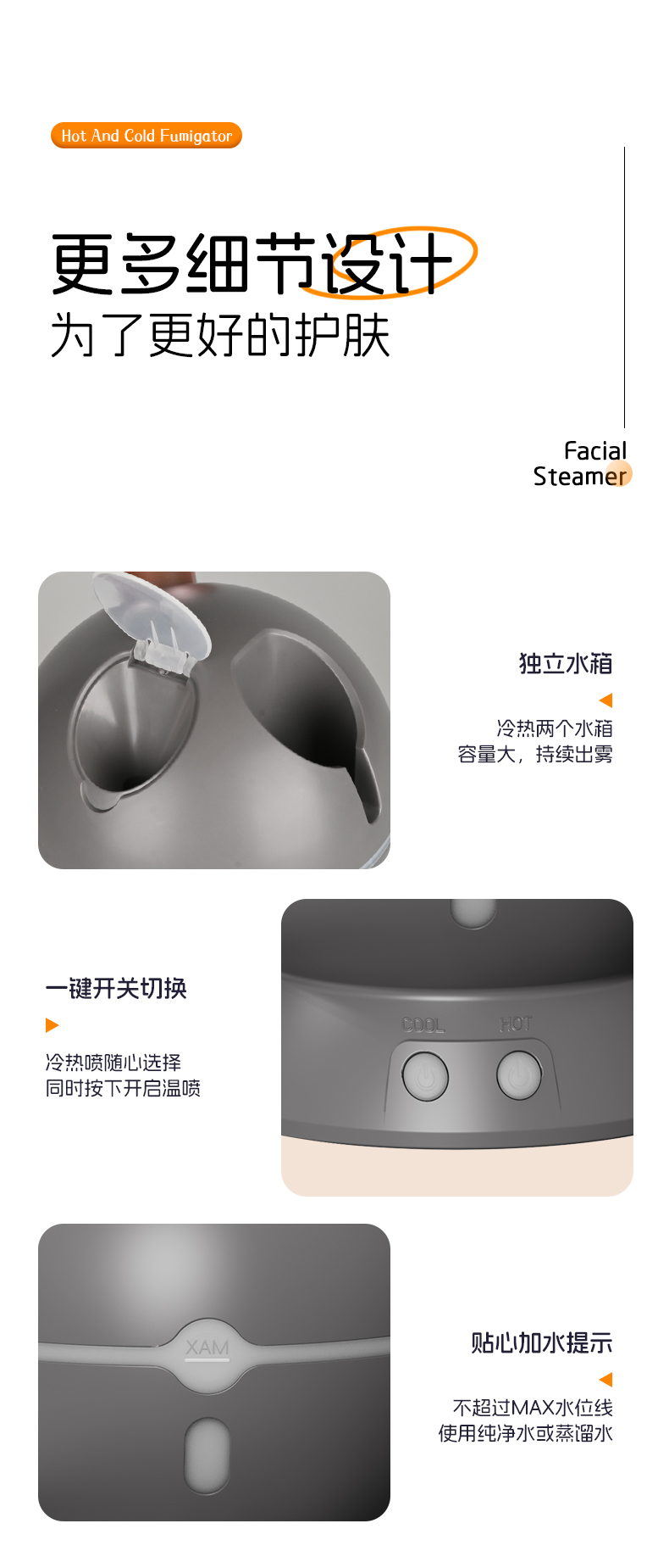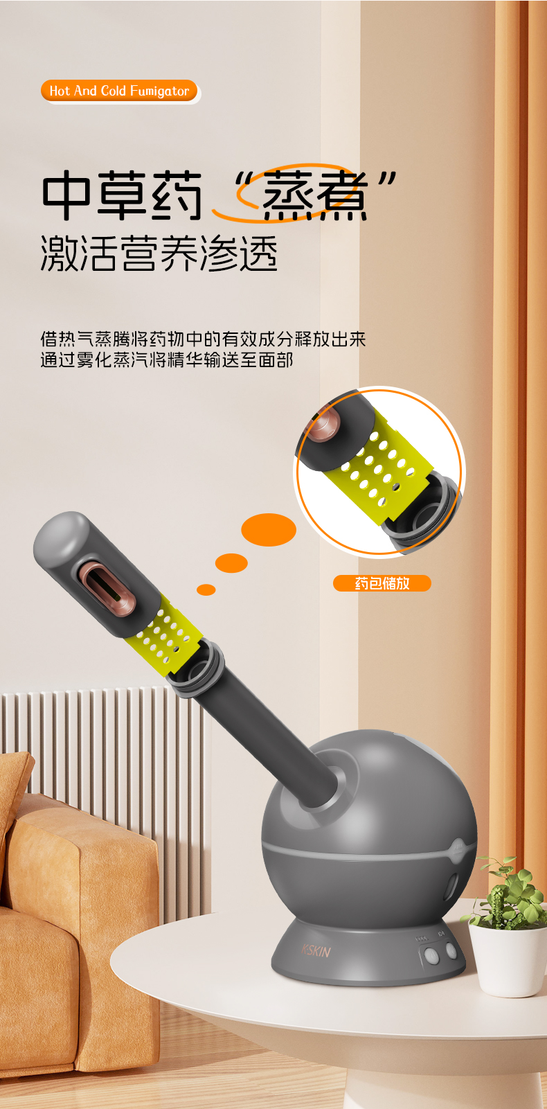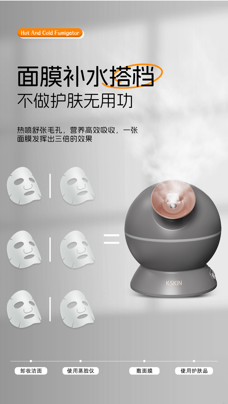 金稻KD23312中草药长短管蒸脸器纳米蒸汽喷雾补水家用冷热温三喷加湿